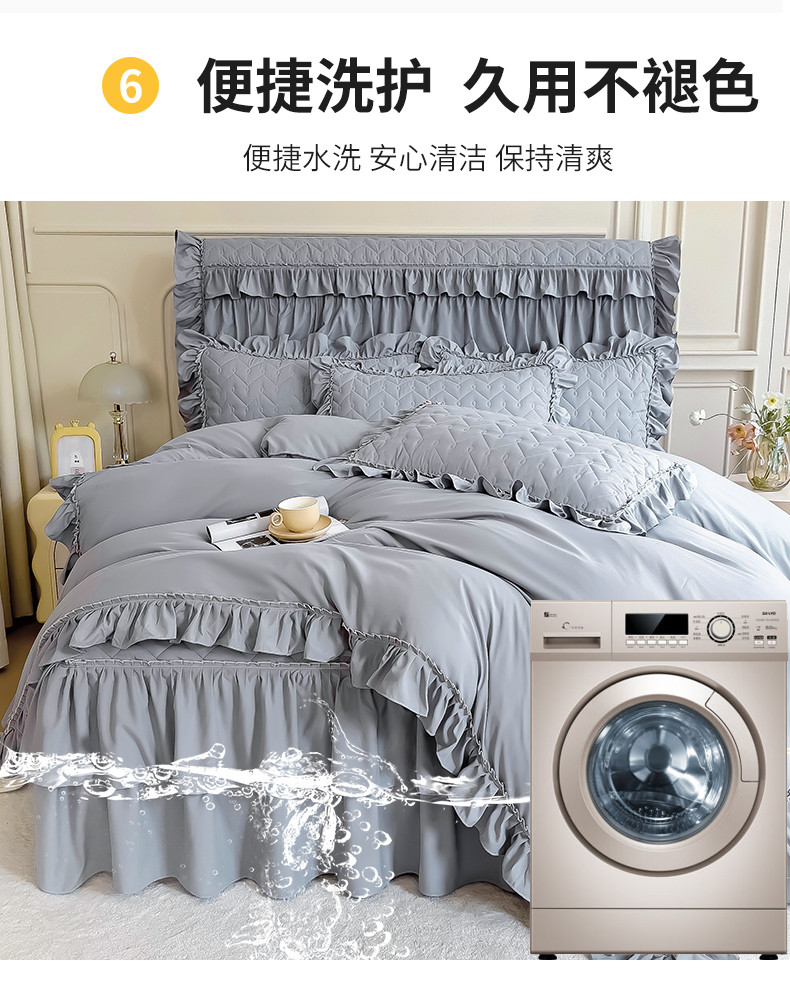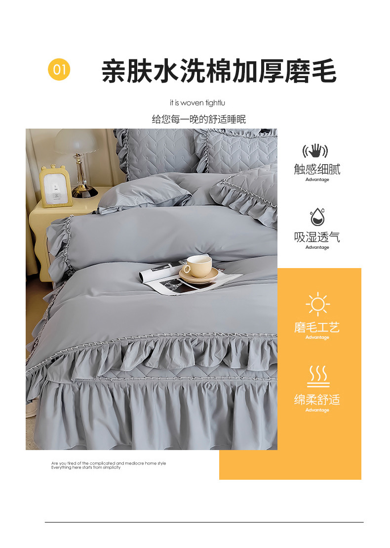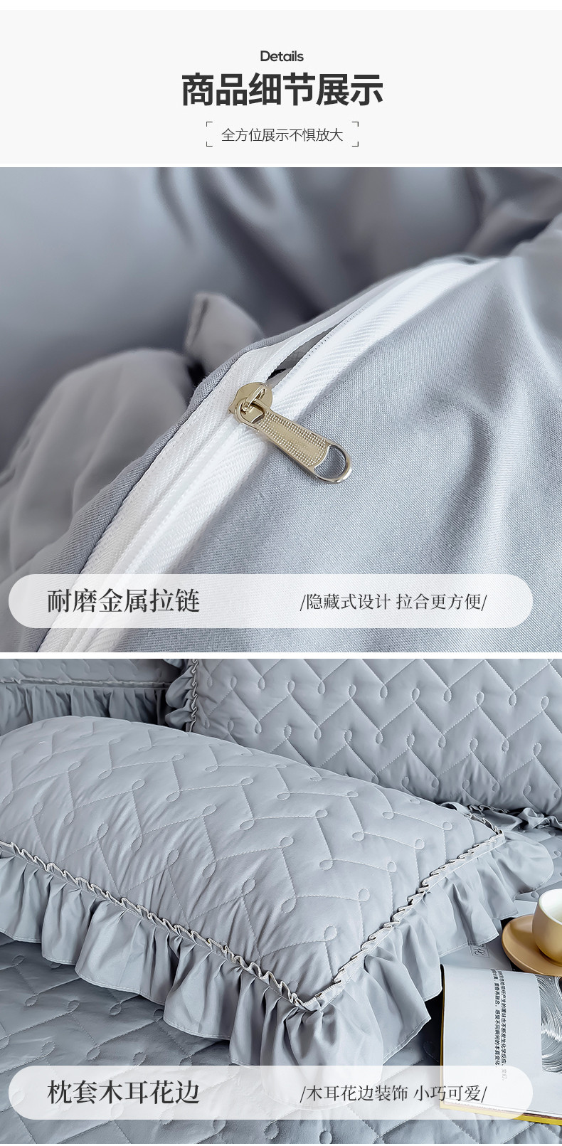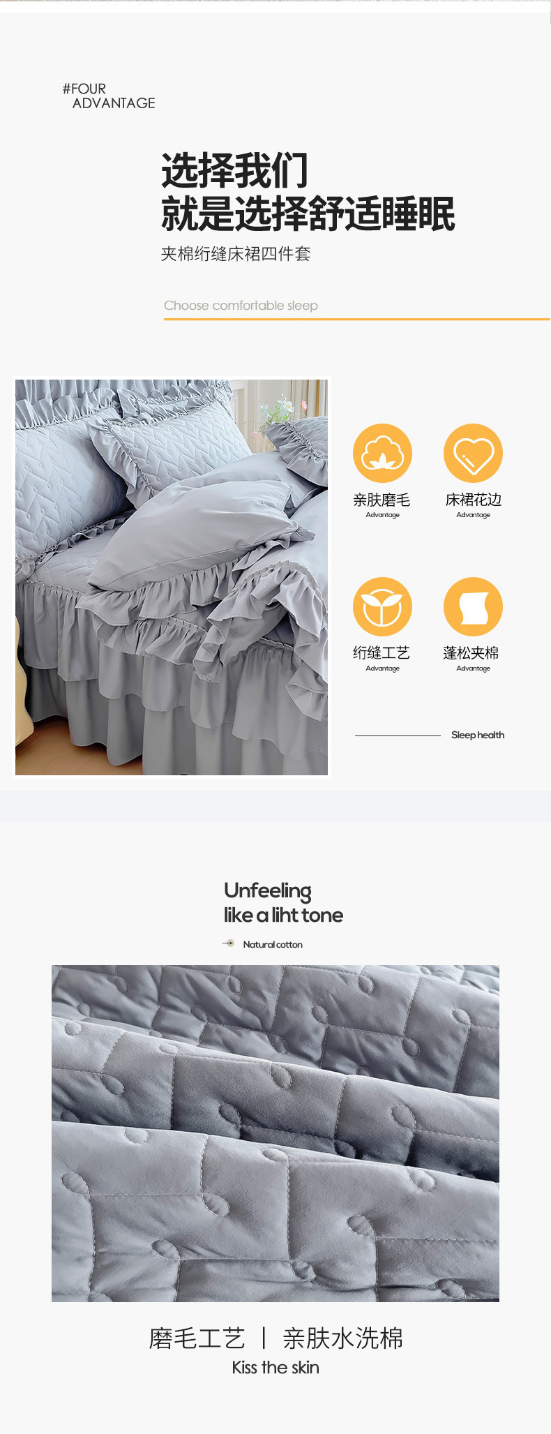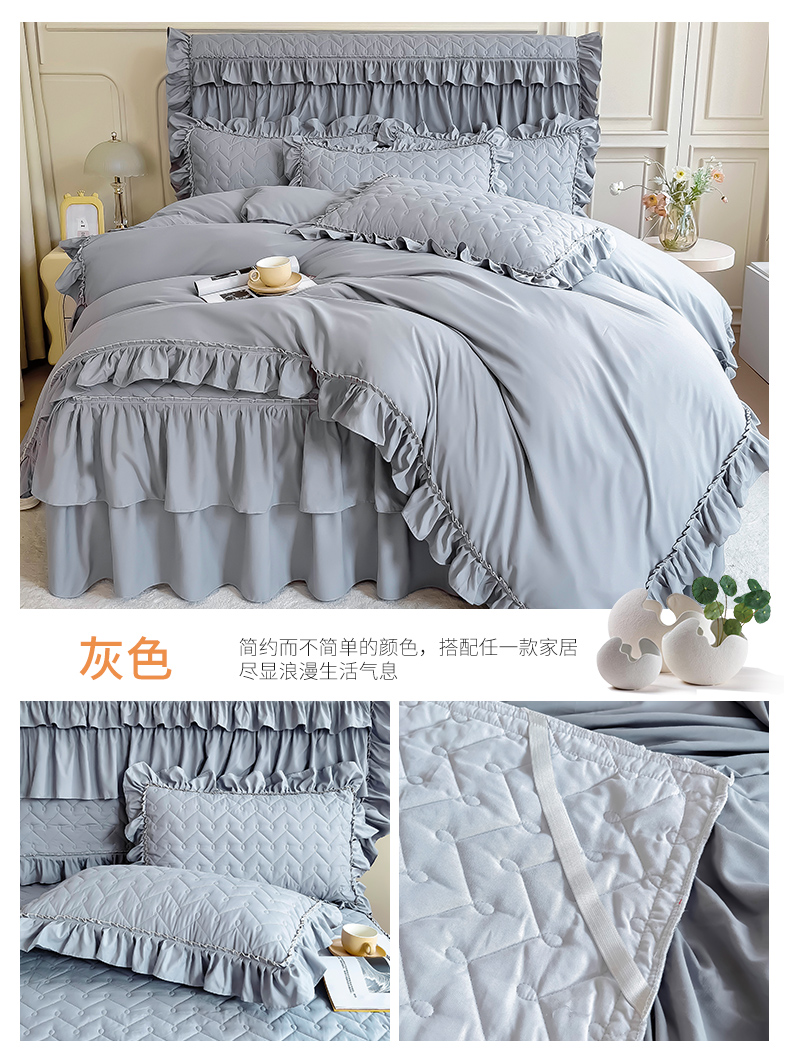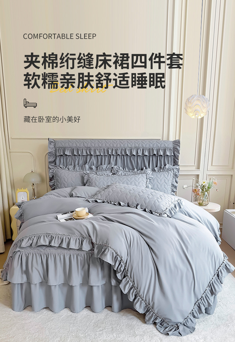 当前位置: 91家纺网 > 商品网购 > 床品套件 > 四件套 > 全棉普通四件套 > 十个点 2024新款水洗棉磨毛夹棉纤缝床裙套件星辰系列-四件套 灰色