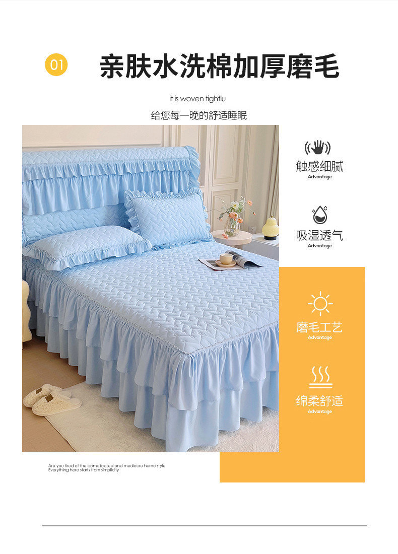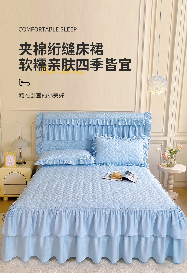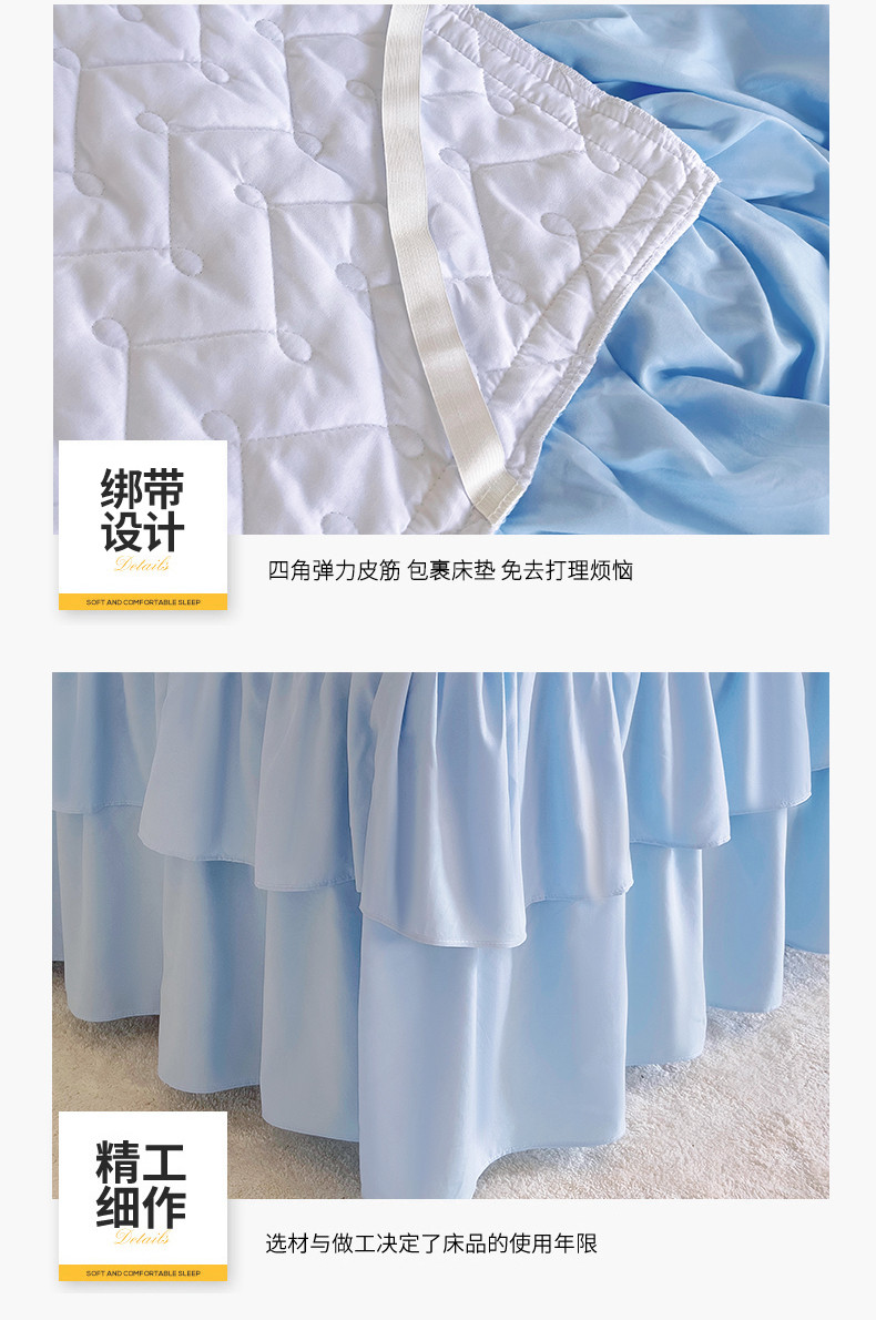 • 91家纺网 家纺一手货源 找家纺 十个点 2024新款水洗棉磨毛星辰单品套件系列单床裙 湖蓝