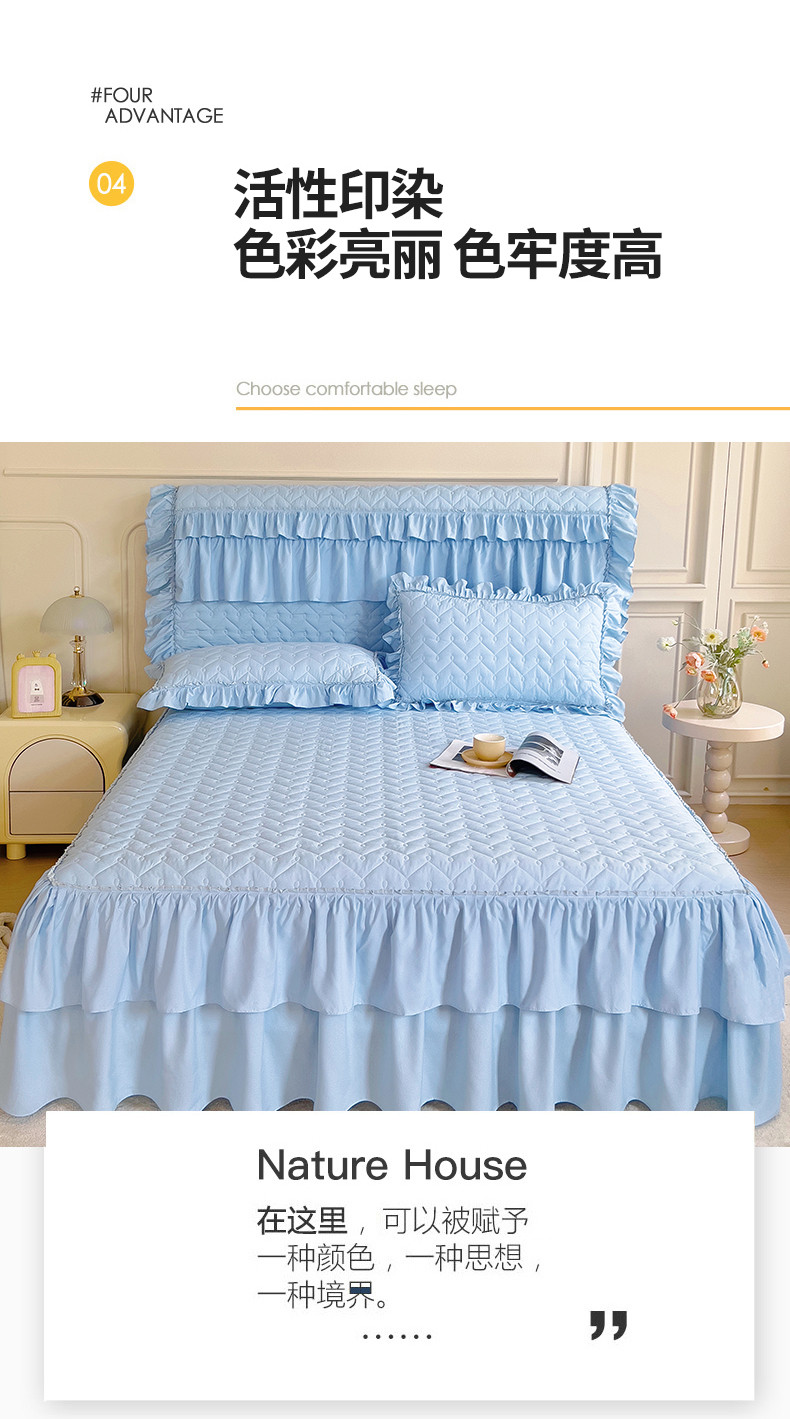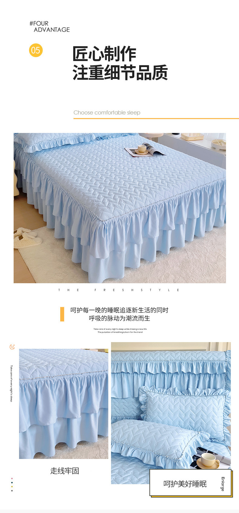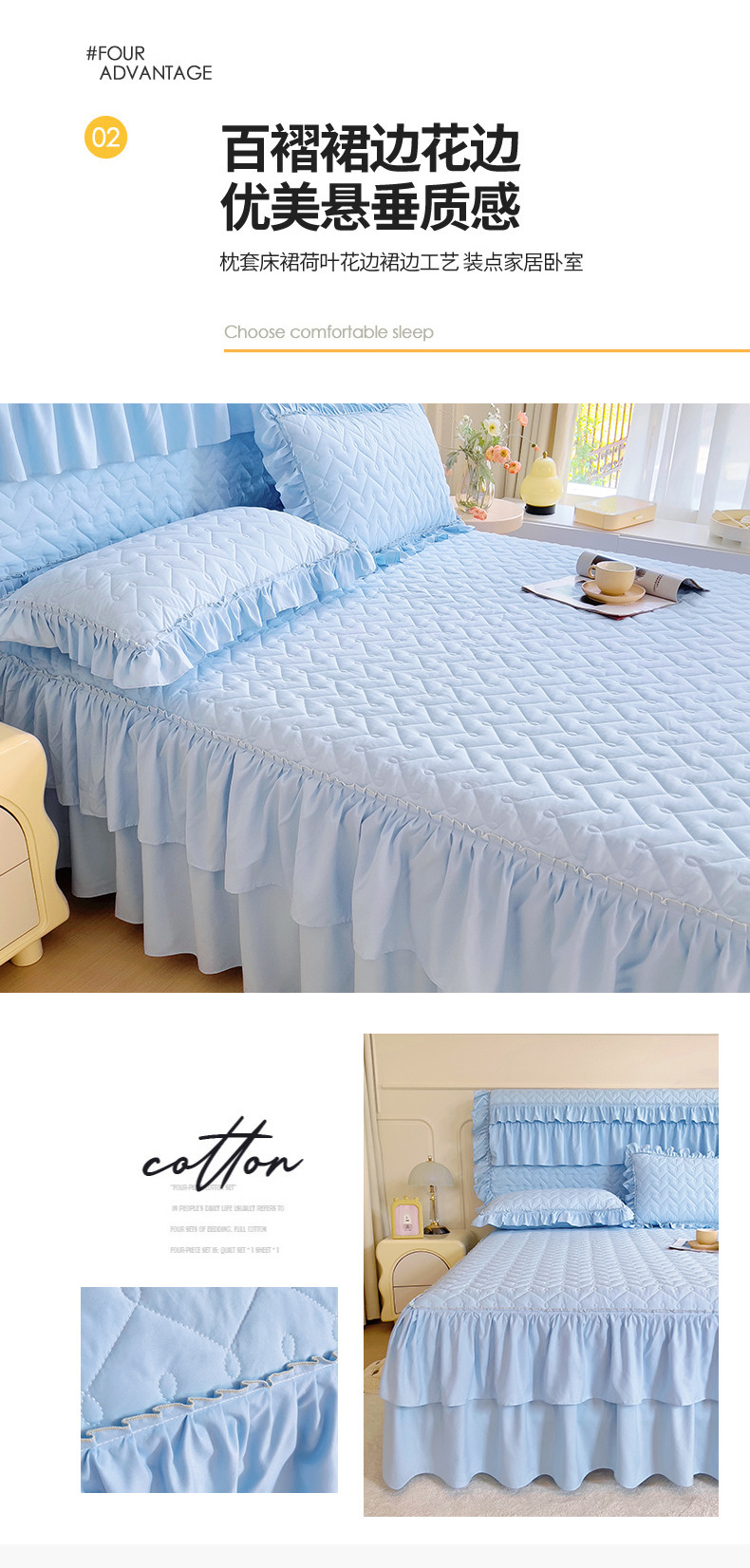 • 91家纺网 家纺一手货源 找家纺 十个点 2024新款水洗棉磨毛星辰单品套件系列单床裙 湖蓝