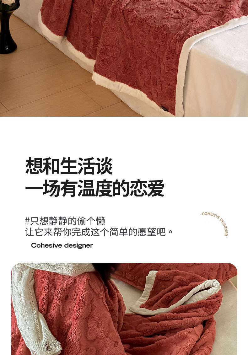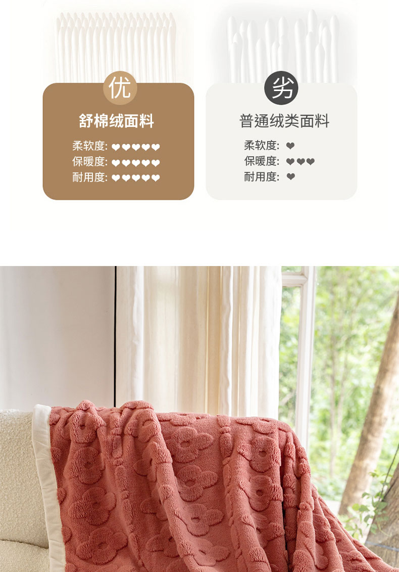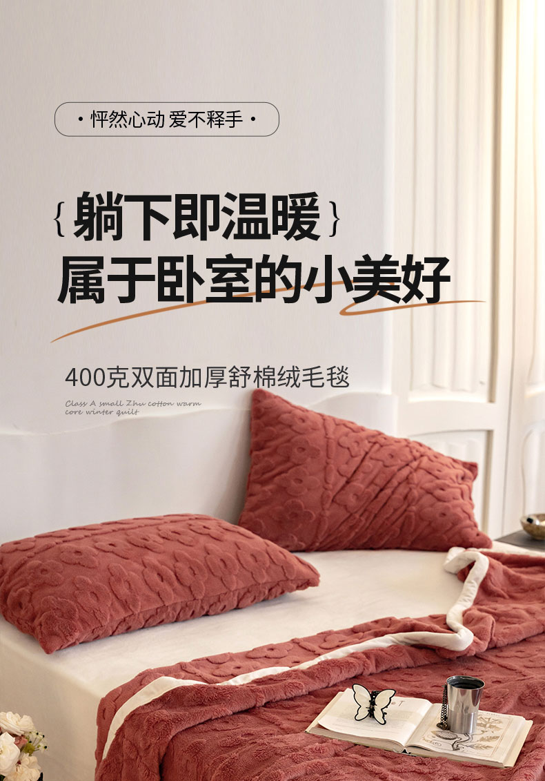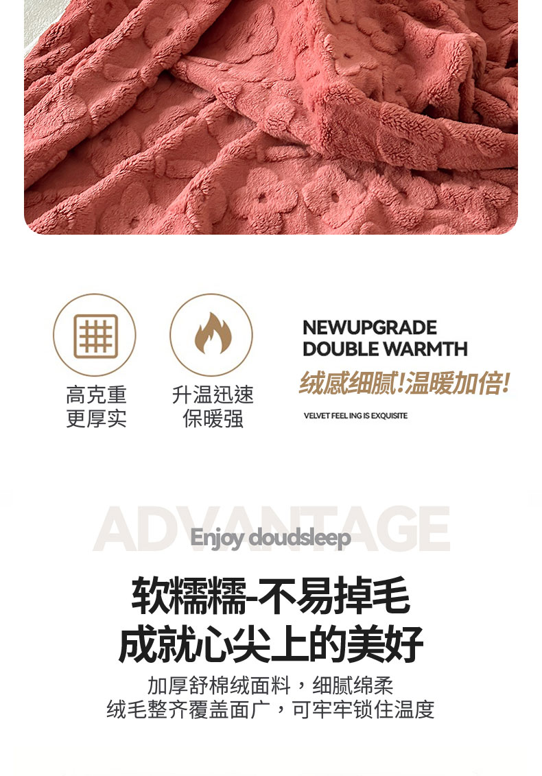 商品名称:2023 FORTWO家纺原创设计(FOR TWO家纺) 400克双面加厚舒棉绒毛毯 蜜果-砖红