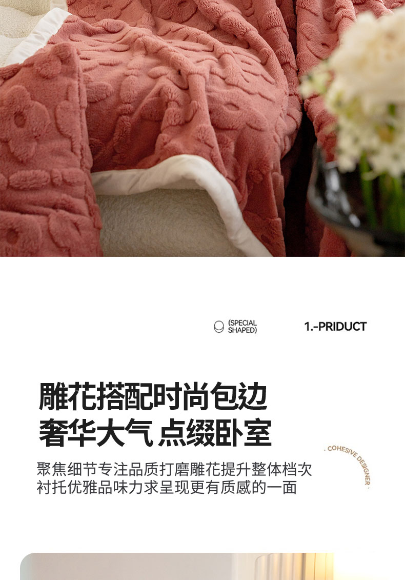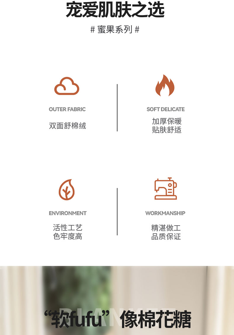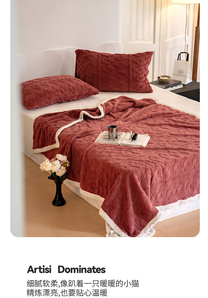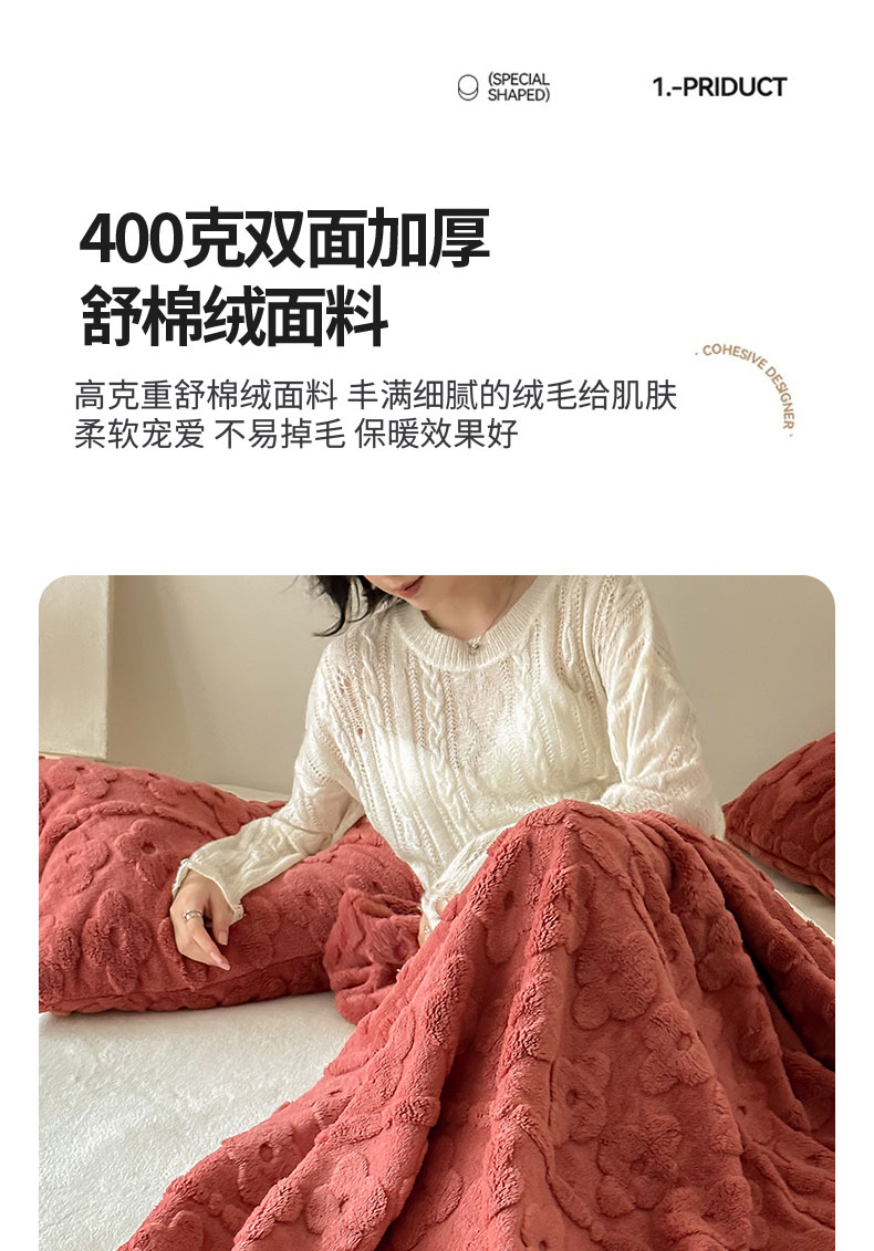 商品名称:2023 FORTWO家纺原创设计(FOR TWO家纺) 400克双面加厚舒棉绒毛毯 蜜果-砖红