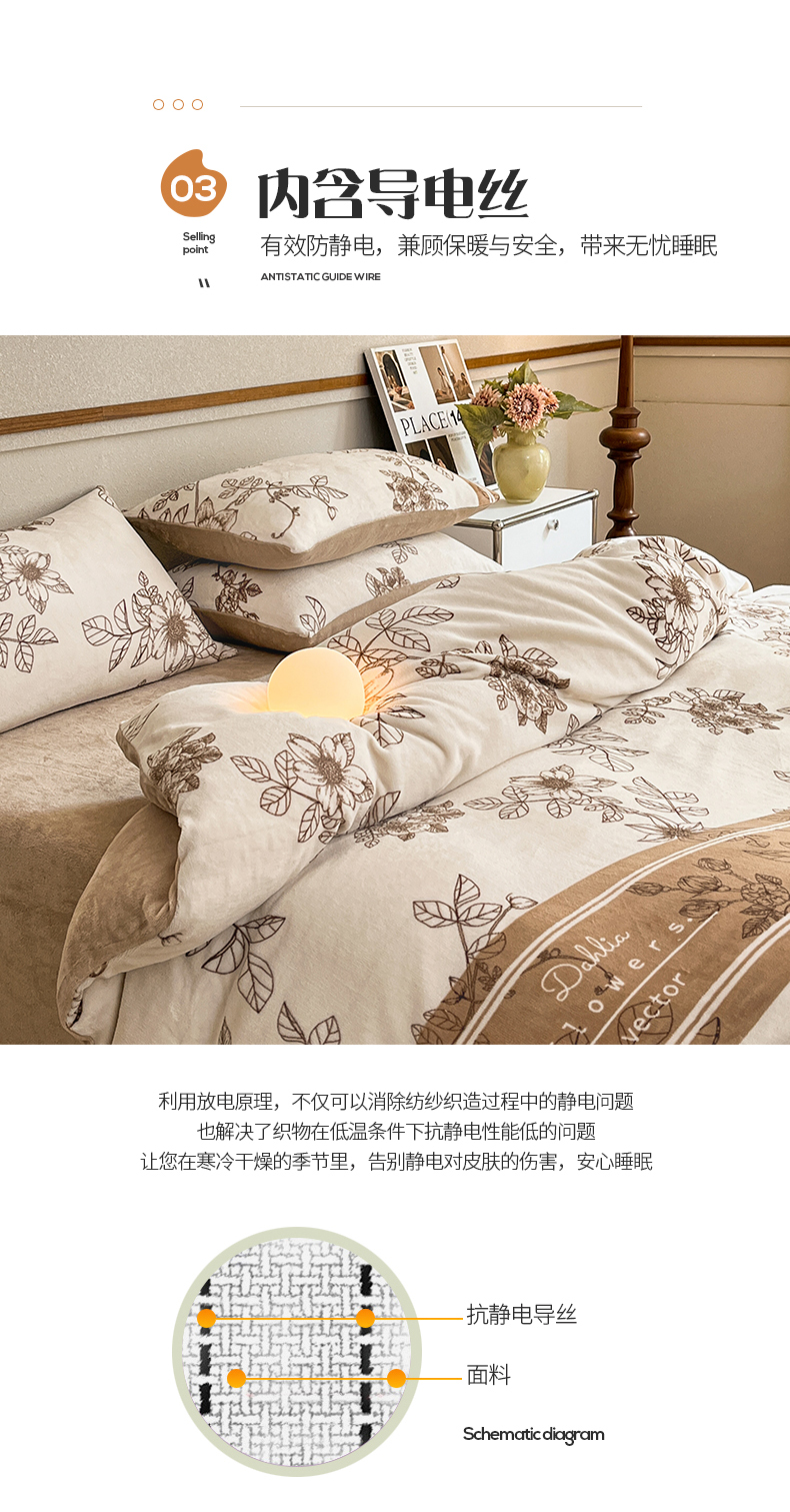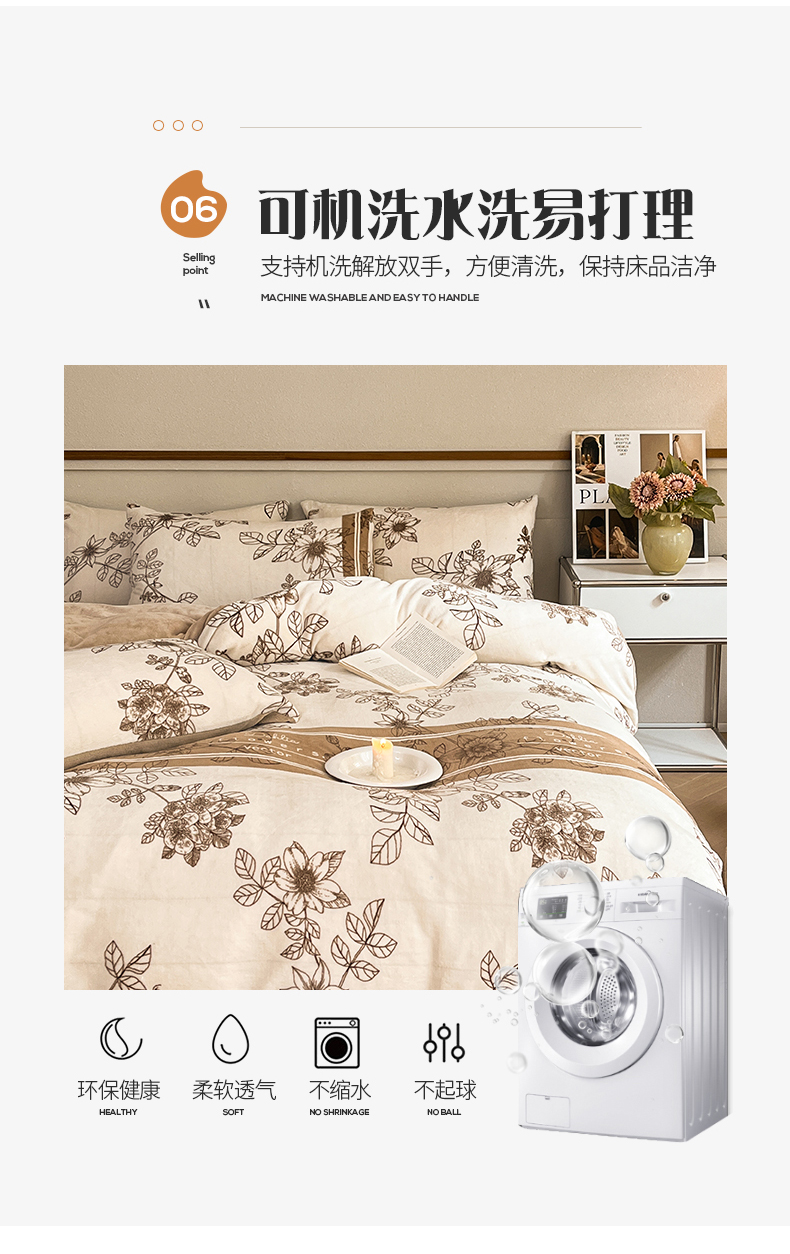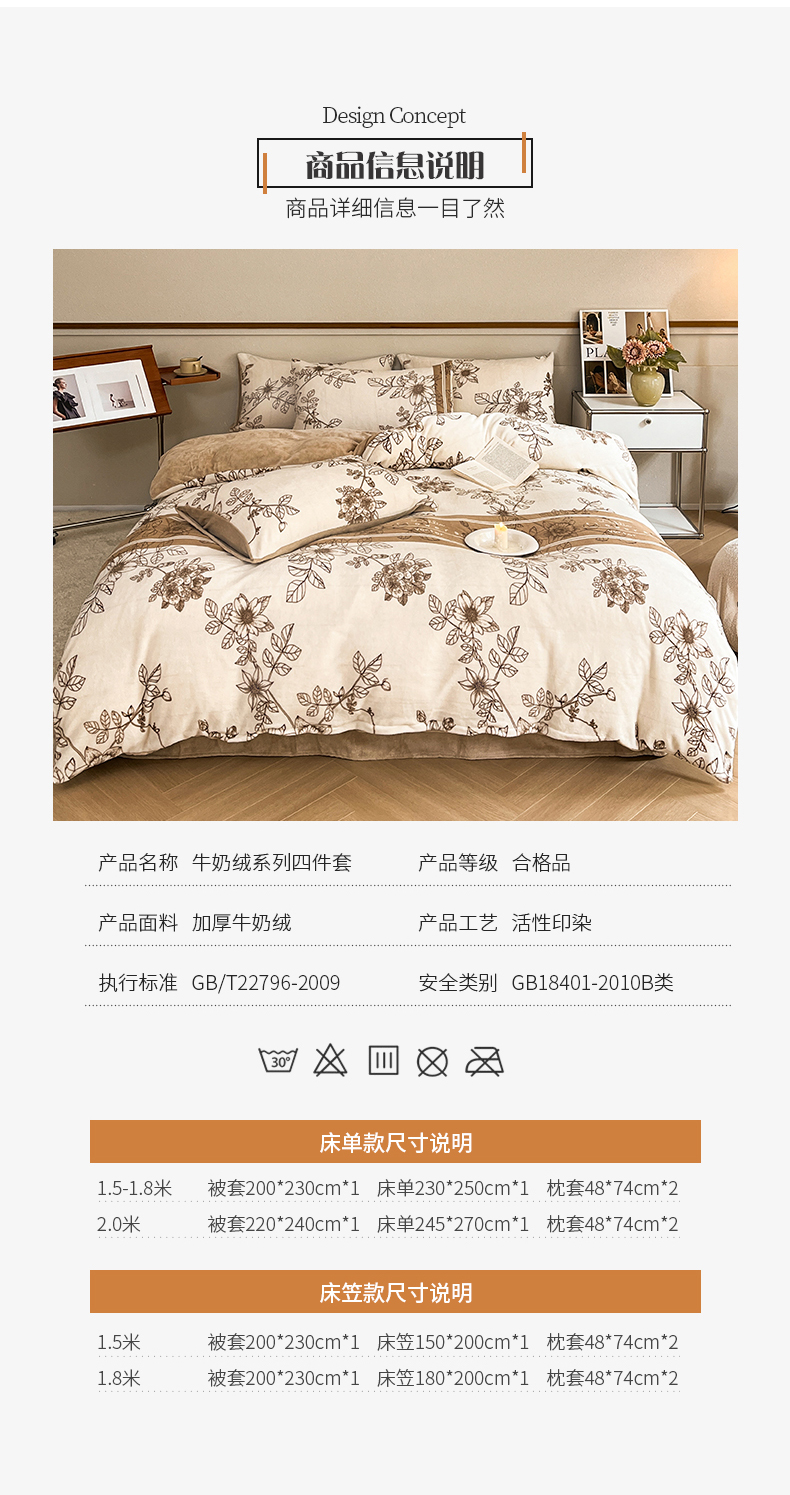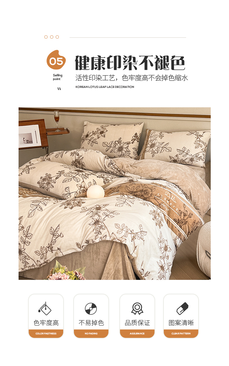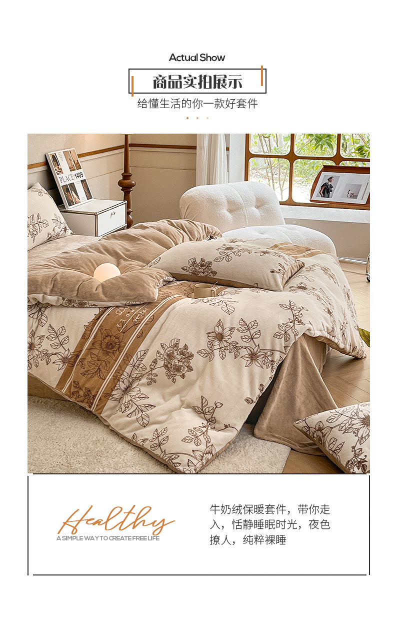 商品名称:桃子家居 2023新款ins法式复古赫本碎花山茶花卉加厚牛奶绒系列四件套 绒-浮笙