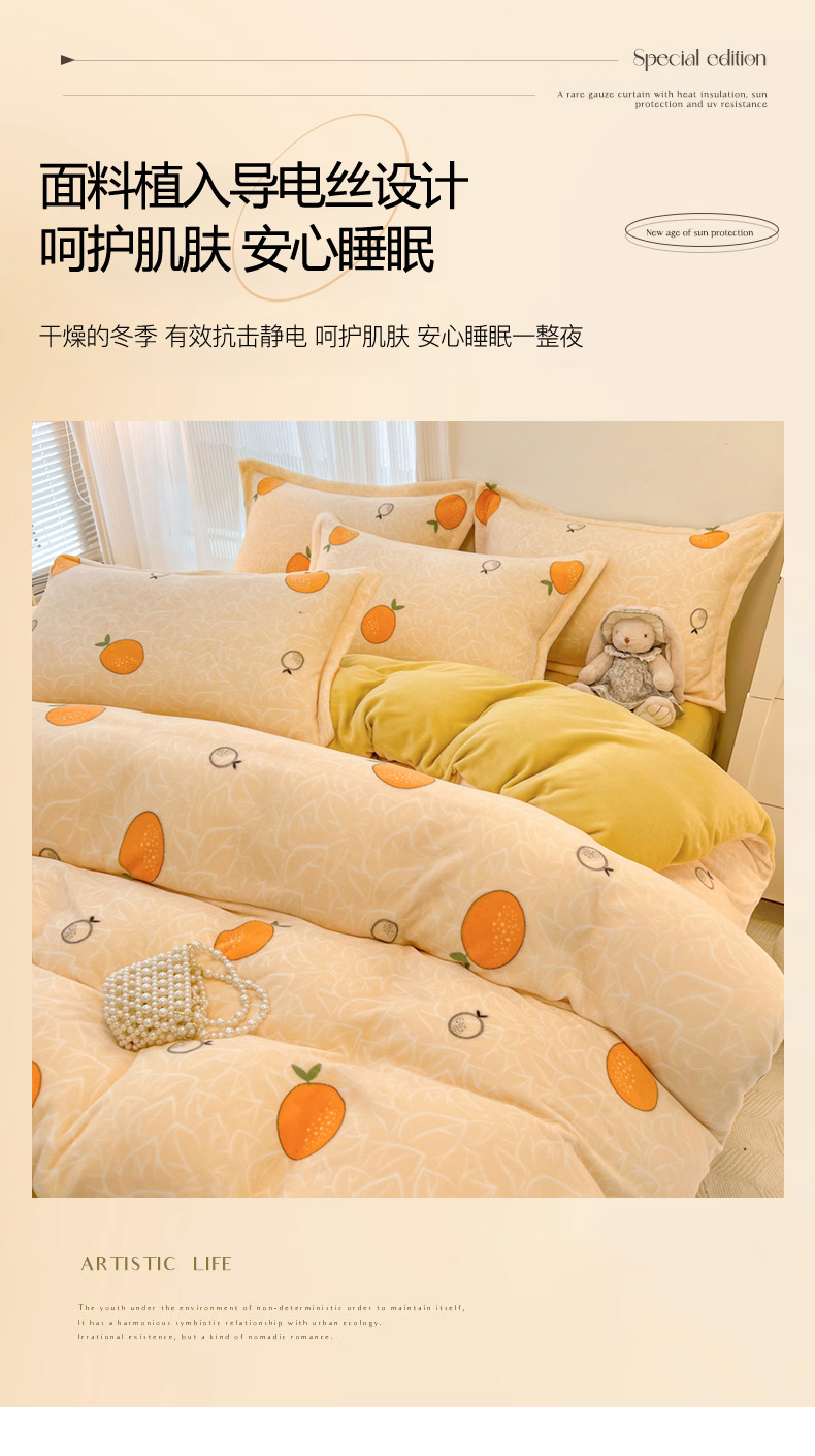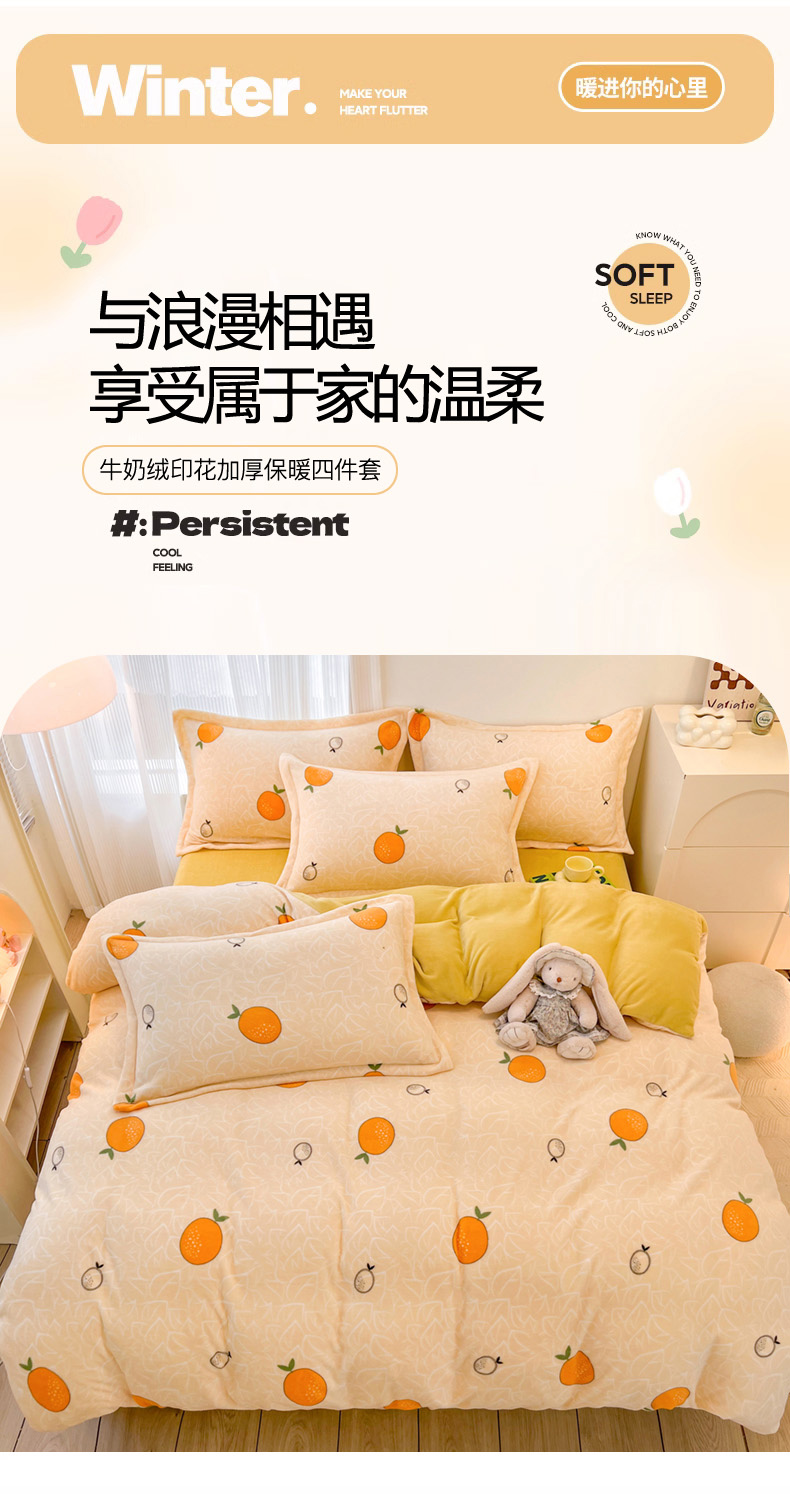 • 91家纺网 家纺一手货源 找家纺 寐居家纺 2023新款小清新印花牛奶绒单被套 果粒橘子
