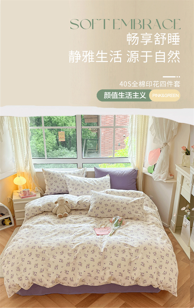 当前位置: 91家纺网 > 商品网购 > 床品套件 > 四件套 > 全棉普通四件套 > 麦伦家居 2023新款全棉斜纹40支少女心系列 香草