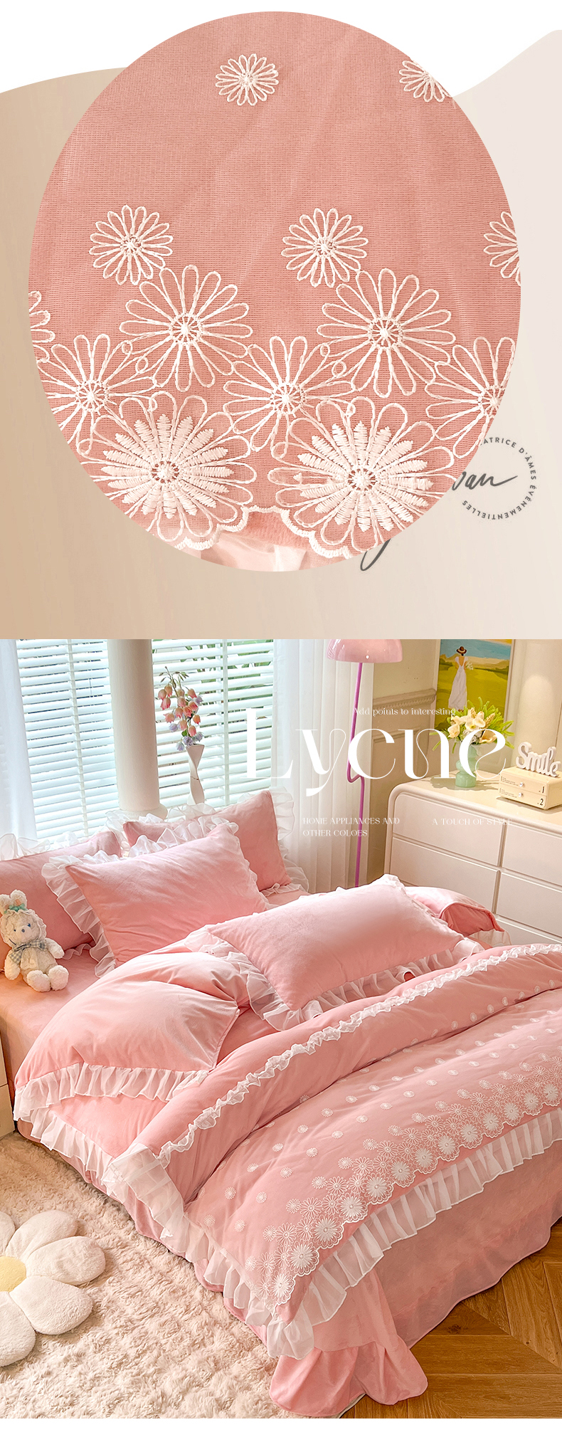 (总)唐人居 2026新款水洗棉花边床盖四件套-花影系列,花影-浅紫,花影-豆沙,花影-玫红,花影-暖橘,花影-苹果绿,花影-浅粉,花影-浅灰