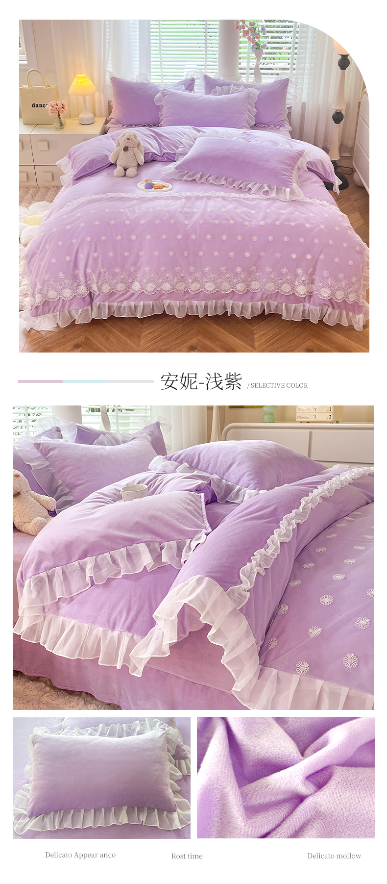 (总)唐人居 2025新款高克重牛奶绒立体绣花床盖四件套-芬芳,芬芳-浅紫,芬芳-草绿,芬芳-豆沙,芬芳-粉色,芬芳-暖橘,芬芳-浅蓝