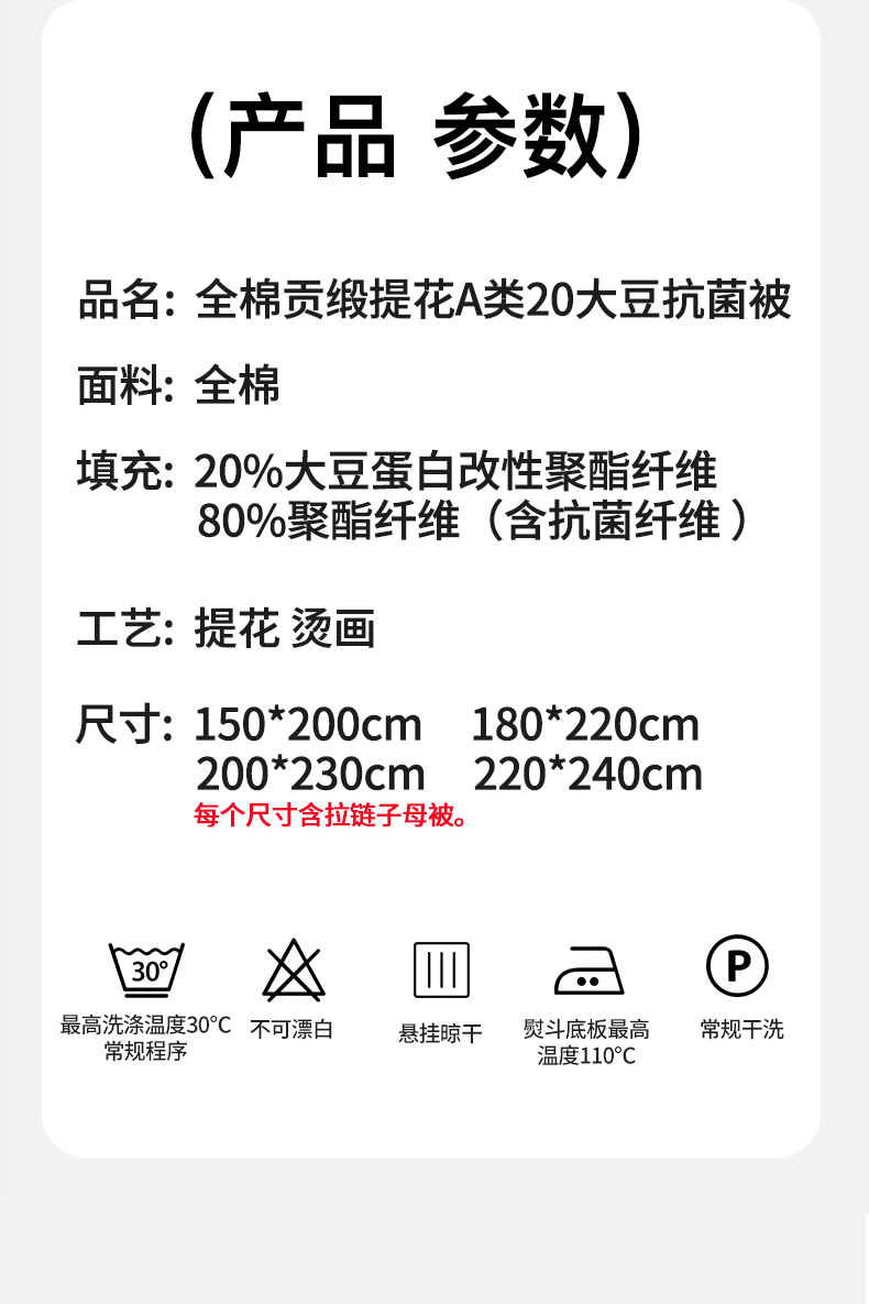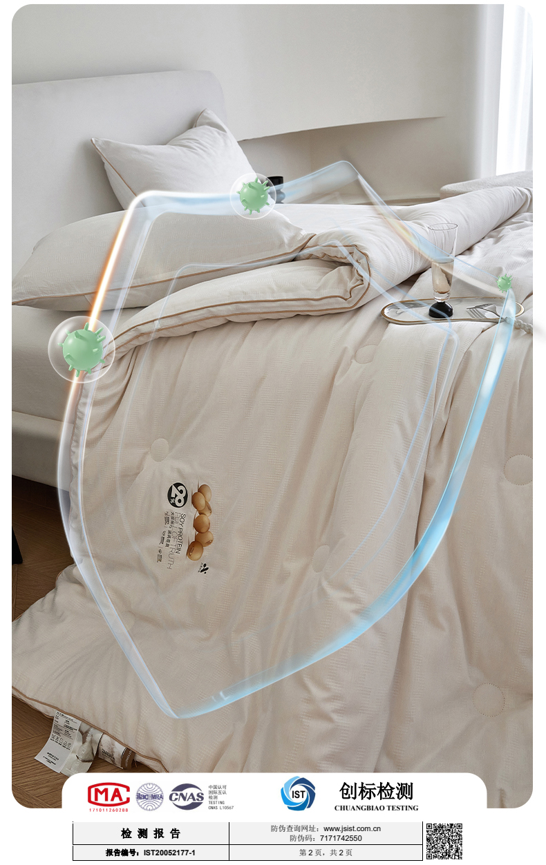 • 填充纤维种类: 大豆蛋白改性聚酯纤维