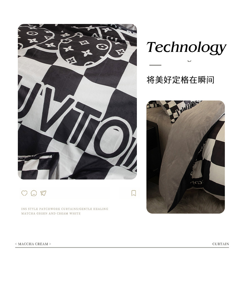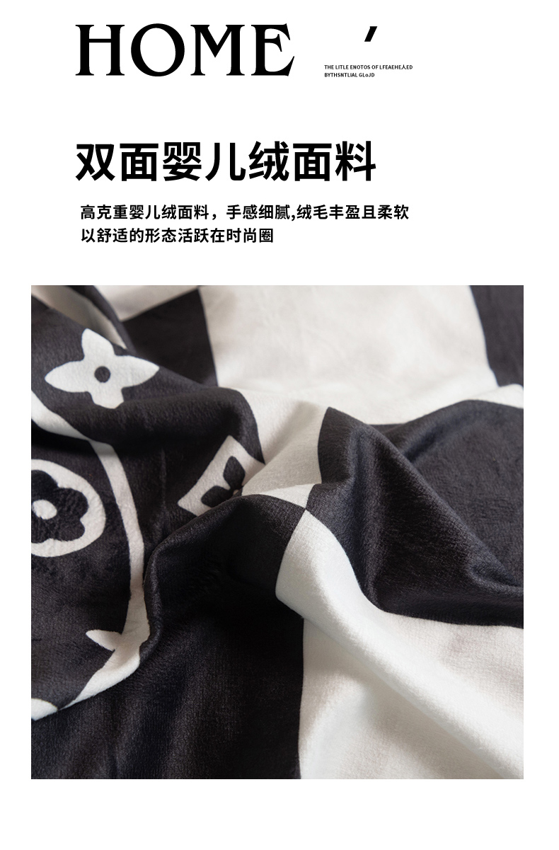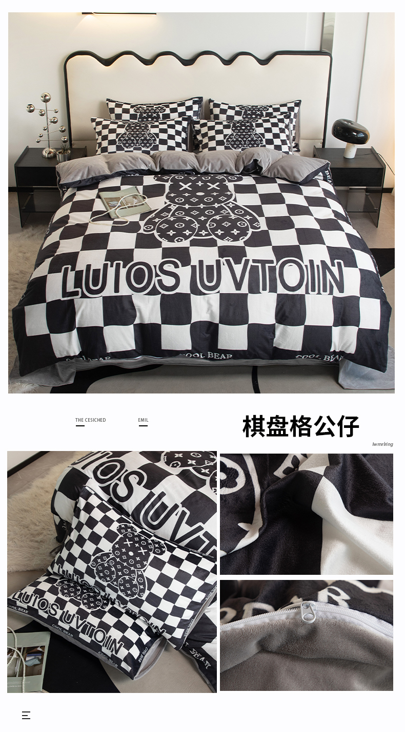 商品名称:摩卡 2024新款秋冬新品网红款婴儿绒毛四件套 棋盘格公仔
