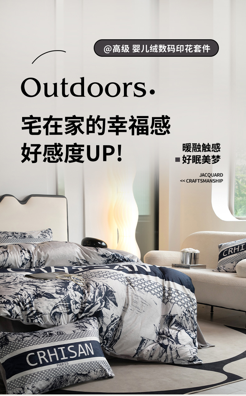 商品名称:摩卡 2024新款秋冬新品网红款婴儿绒毛四件套 至爱黑