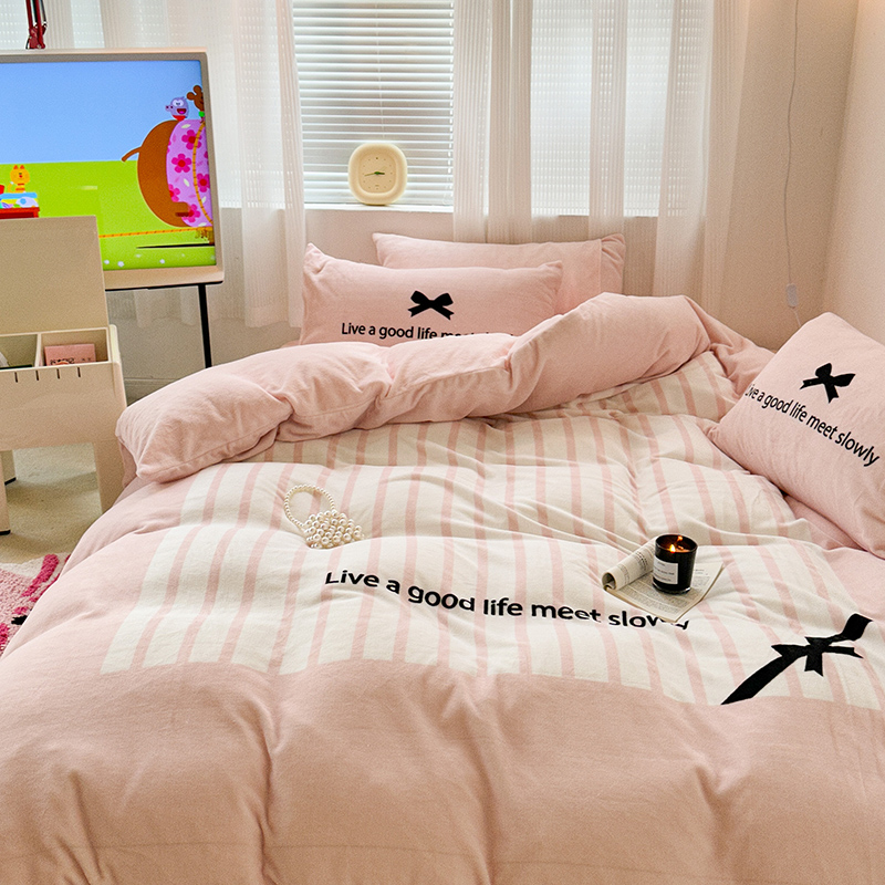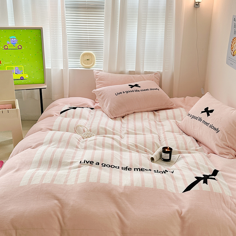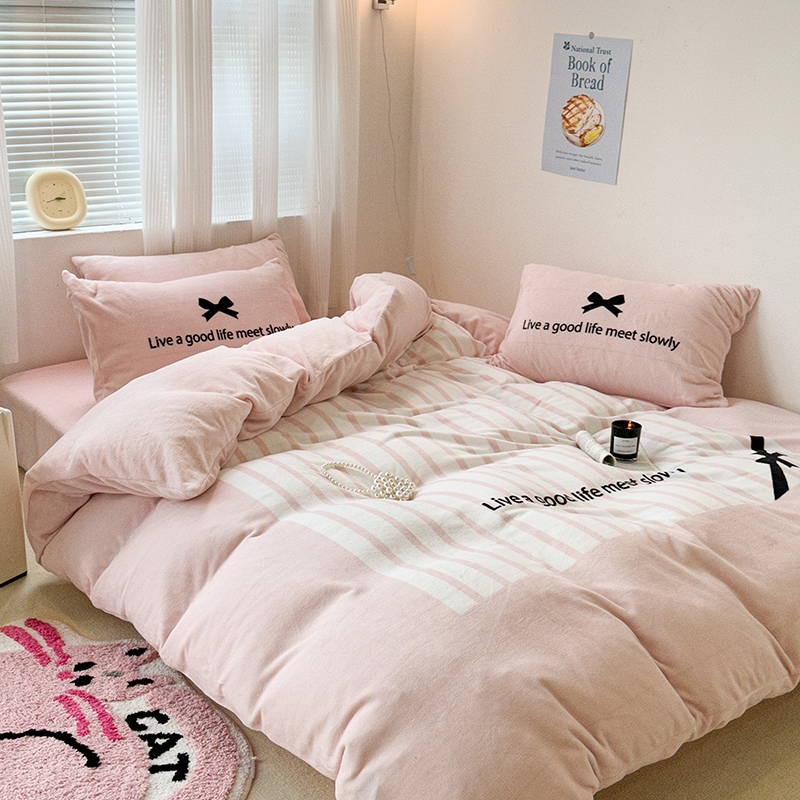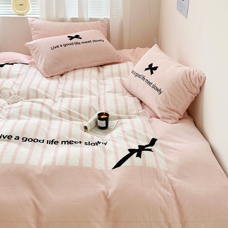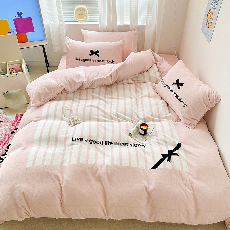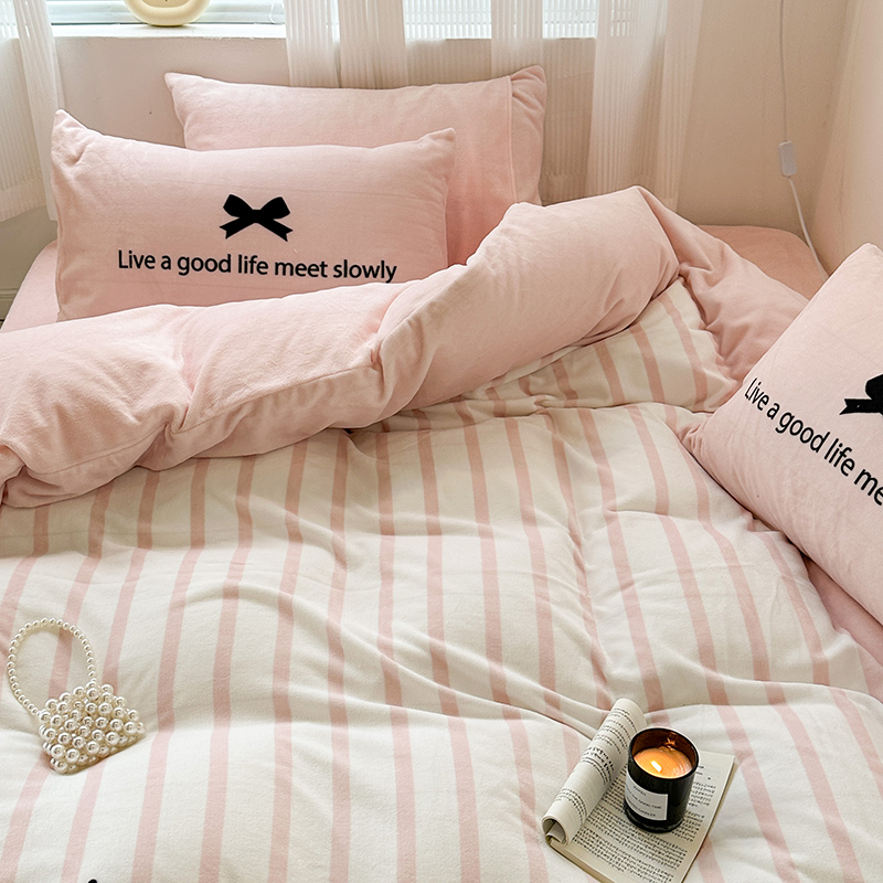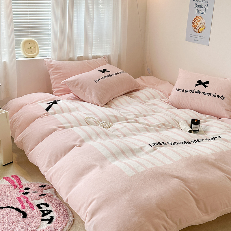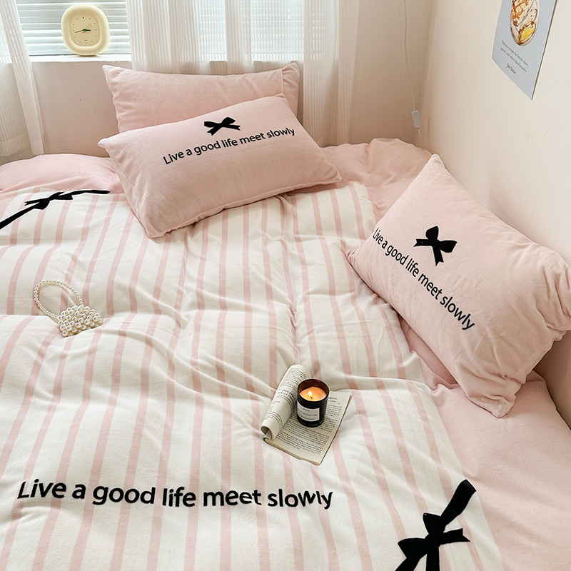 (总)昔可家纺 2024新款印花牛奶绒四件套系列-ins少女系列,芭蕾蛋糕,芭蕾美学,粉格蝴蝶结,黑粉芭蕾蝴蝶结,蓝格蝴蝶结,樱桃奶油蛋糕