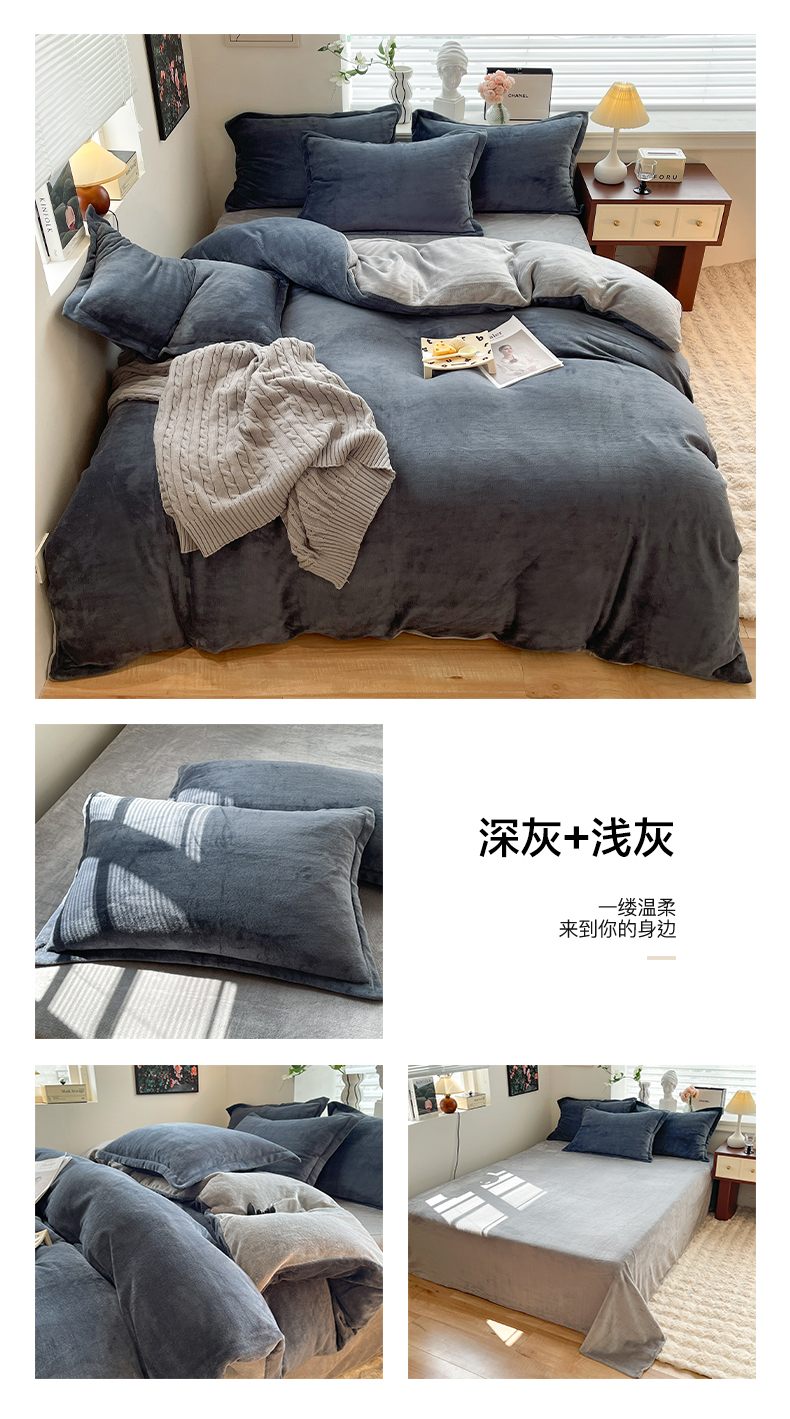 当前位置: 91家纺网 > 商品网购 > 床品套件 > 四件套 > 牛奶绒四件套 > 逸尚阁 2024新款高克重纯色牛奶绒四件套 深灰+浅灰