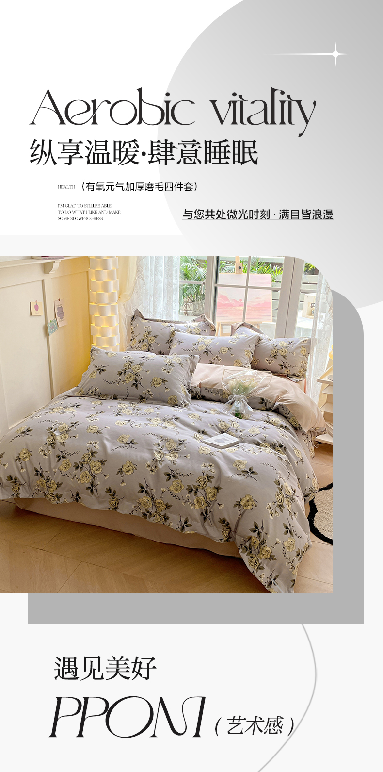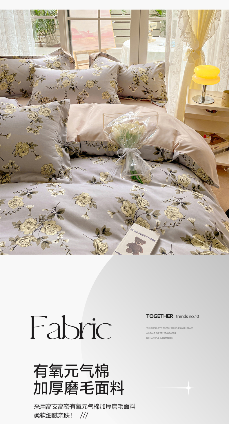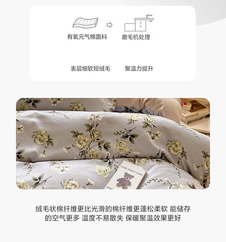 商品名称:古吉梦 2023新款A类有氧元气棉加厚磨毛四件套 木槿-蓝