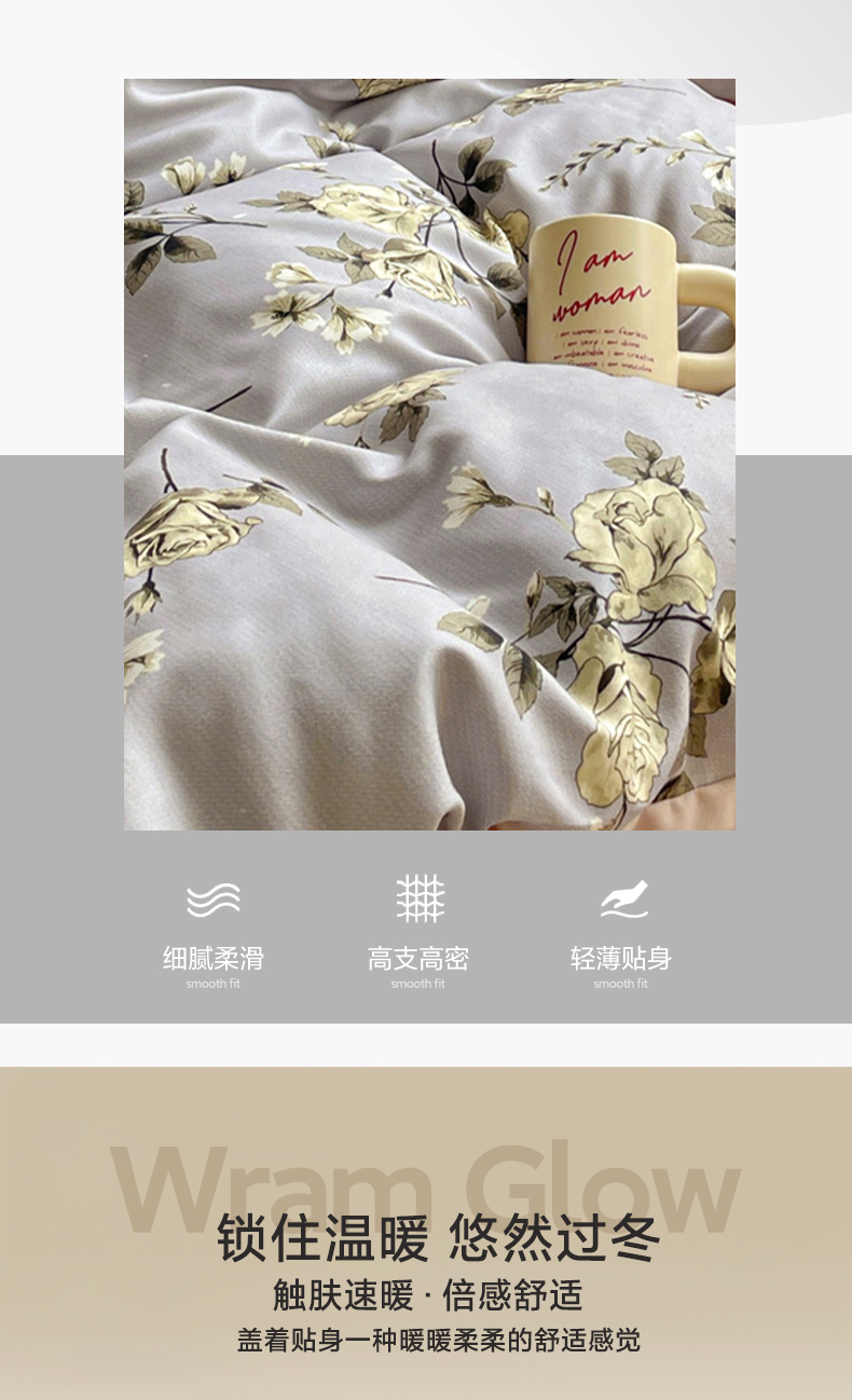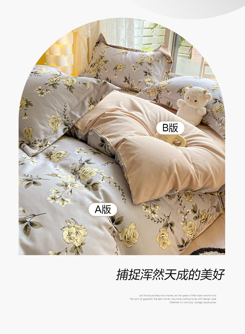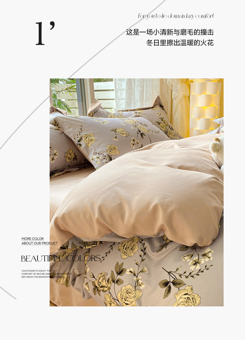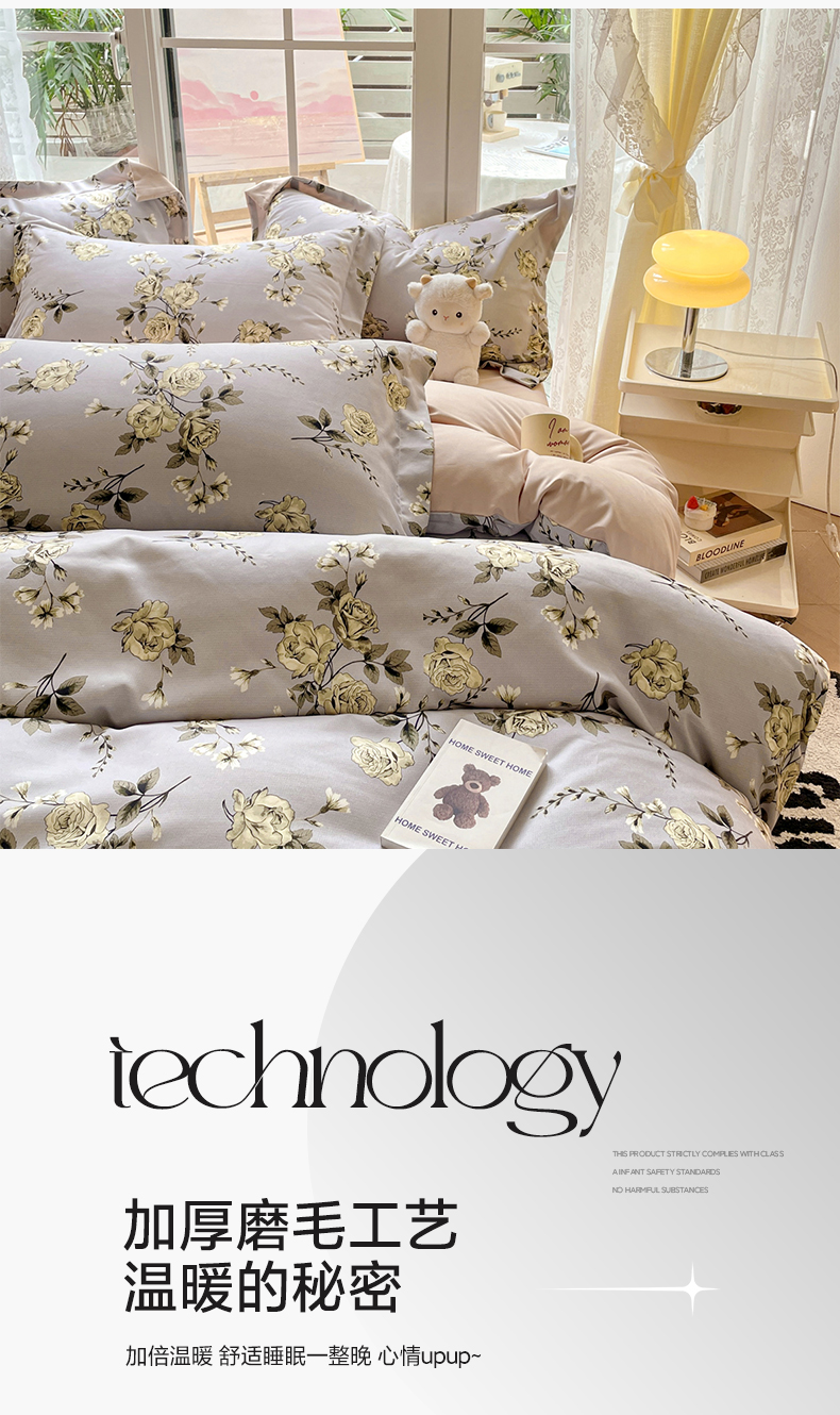 商品名称:古吉梦 2023新款A类有氧元气棉加厚磨毛四件套 木槿-蓝