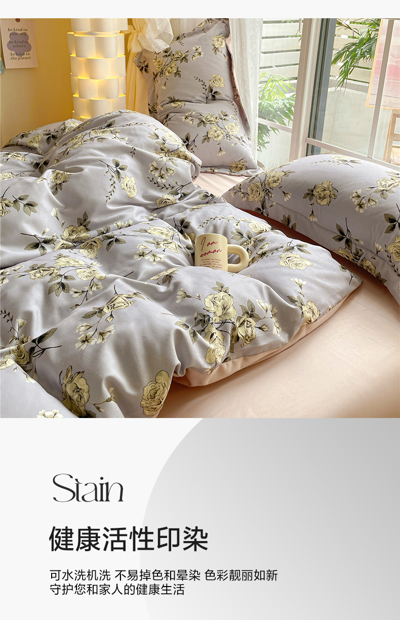 (总)2024新款水洗棉小清新印花学生三件套(床笠床套款),爱心熊,粉郁盛开,花间兔,花语,恐龙乐园,仙草,紫郁盛开