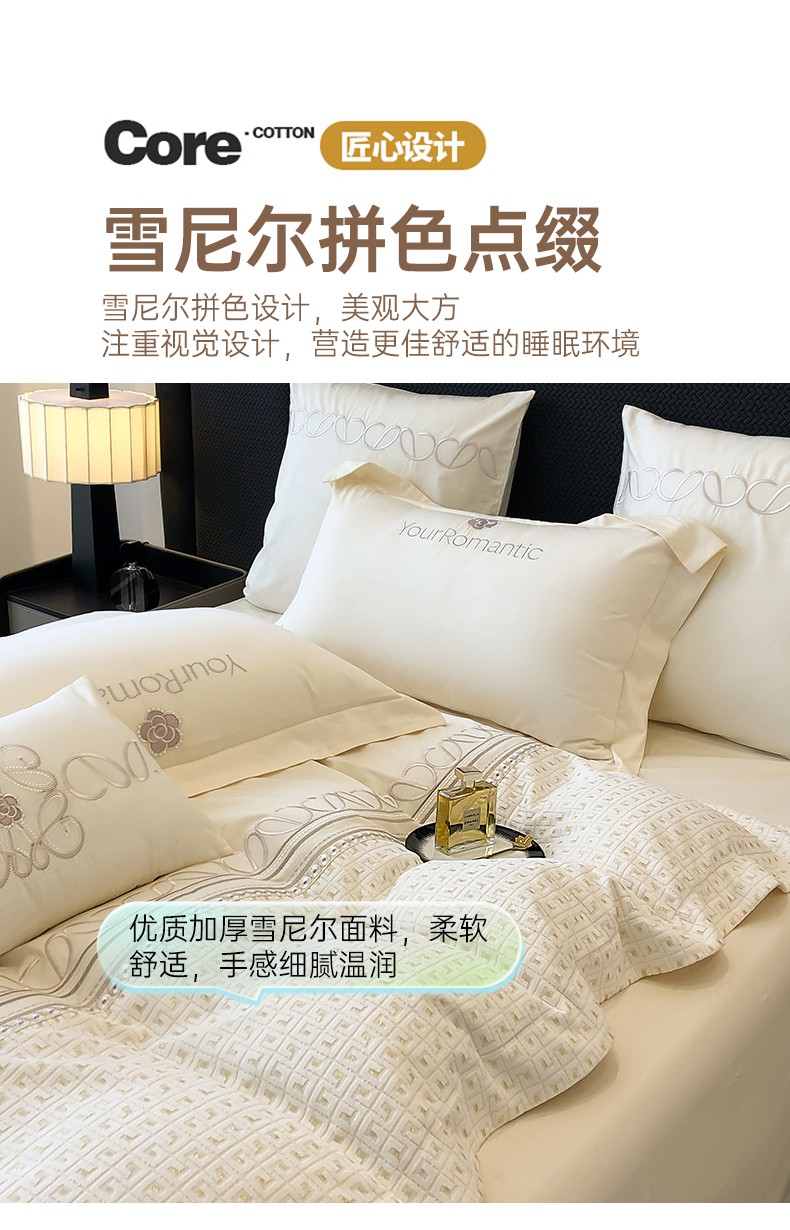 (总)家居1号2025新款40s133*76全棉纯棉千鸟格刺绣大拼角长绒棉四件套-维也纳,维也纳-粉豆沙,维也纳-绅士灰,维也纳-水兰,维也纳-太空灰,维也纳-香槟金,维也纳-象牙白