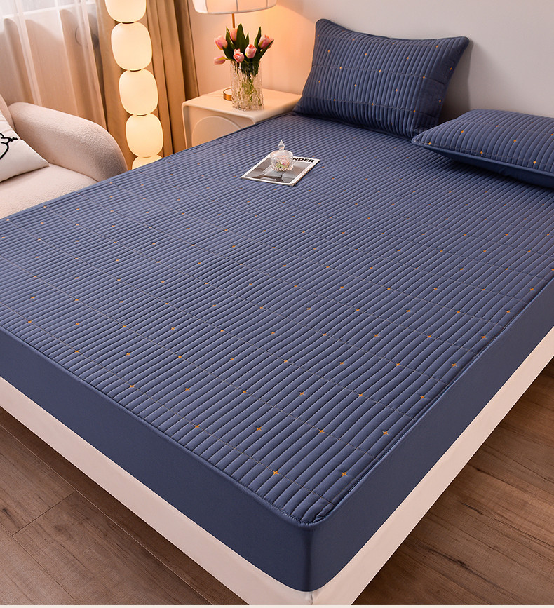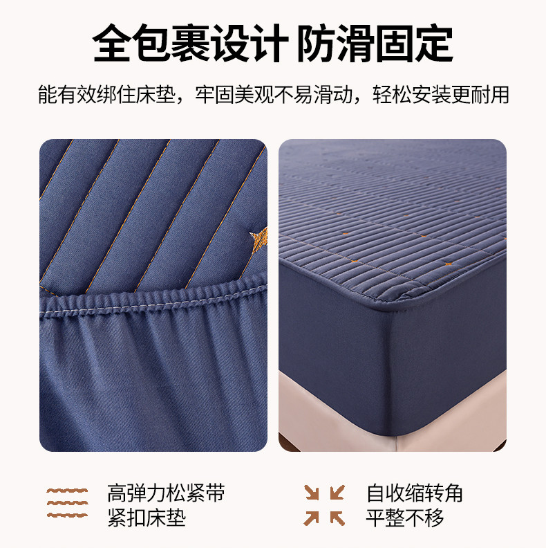 总X猫先生2024新款A类水洗抗菌夹棉床笠小清新刺绣纯色床垫保护罩直播