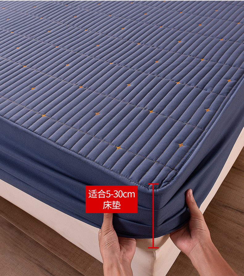 商品名称:总X猫先生2024新款A类水洗抗菌夹棉床笠小清新刺绣纯色床垫保护罩直播