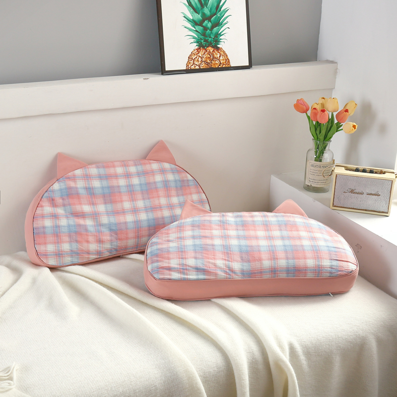 当前位置: 91家纺网 > 商品网购 > 枕头/枕芯/保健枕/颈椎枕 > 普通枕芯 > 明星枕业 2023新款水洗棉格子花草枕猫耳朵荞麦壳枕头 维希格粉