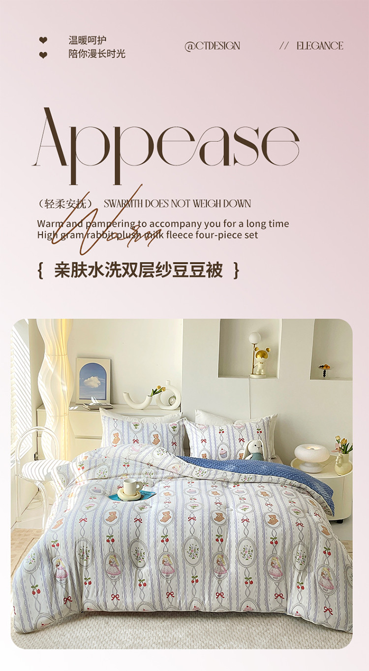 网客 2024新款亲肤水洗双层纱豆豆被 公主与小熊