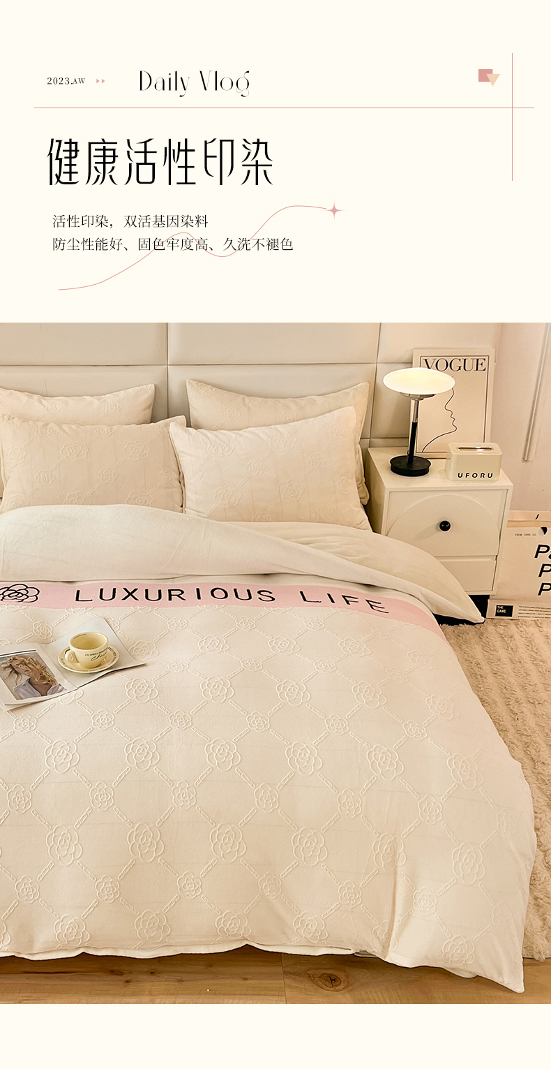 (总)绒兔兔 2023新款双层纱棉加水晶绒牛奶绒四件套,绒-唯美,绒-婉然,绒-春日蜜糖,绒-油画意境,绒-秘密花园,绒-花满庭,绒-花漫庭,绒-花蜜悠然