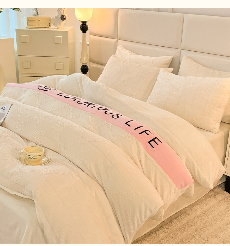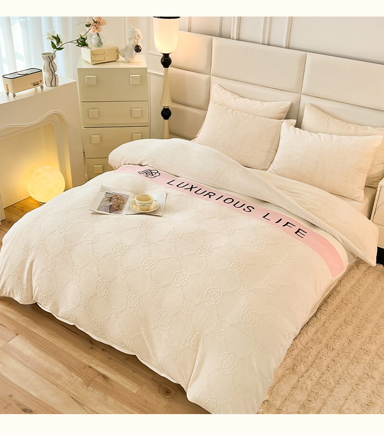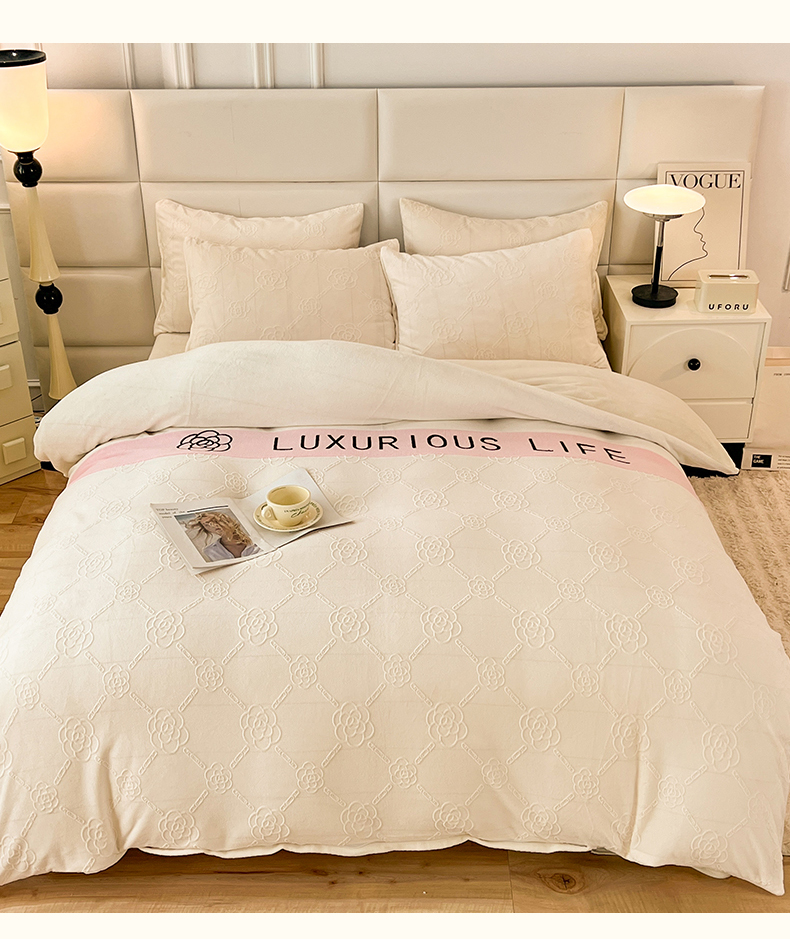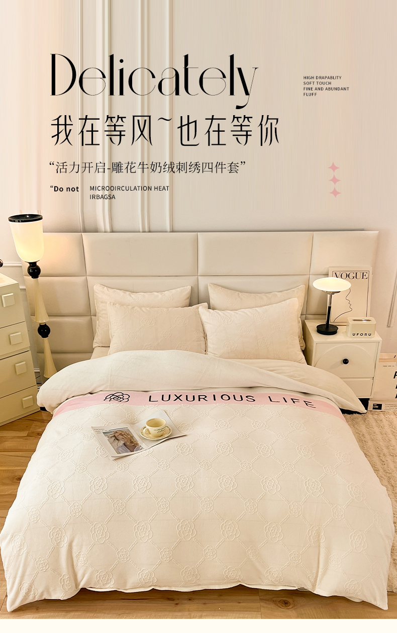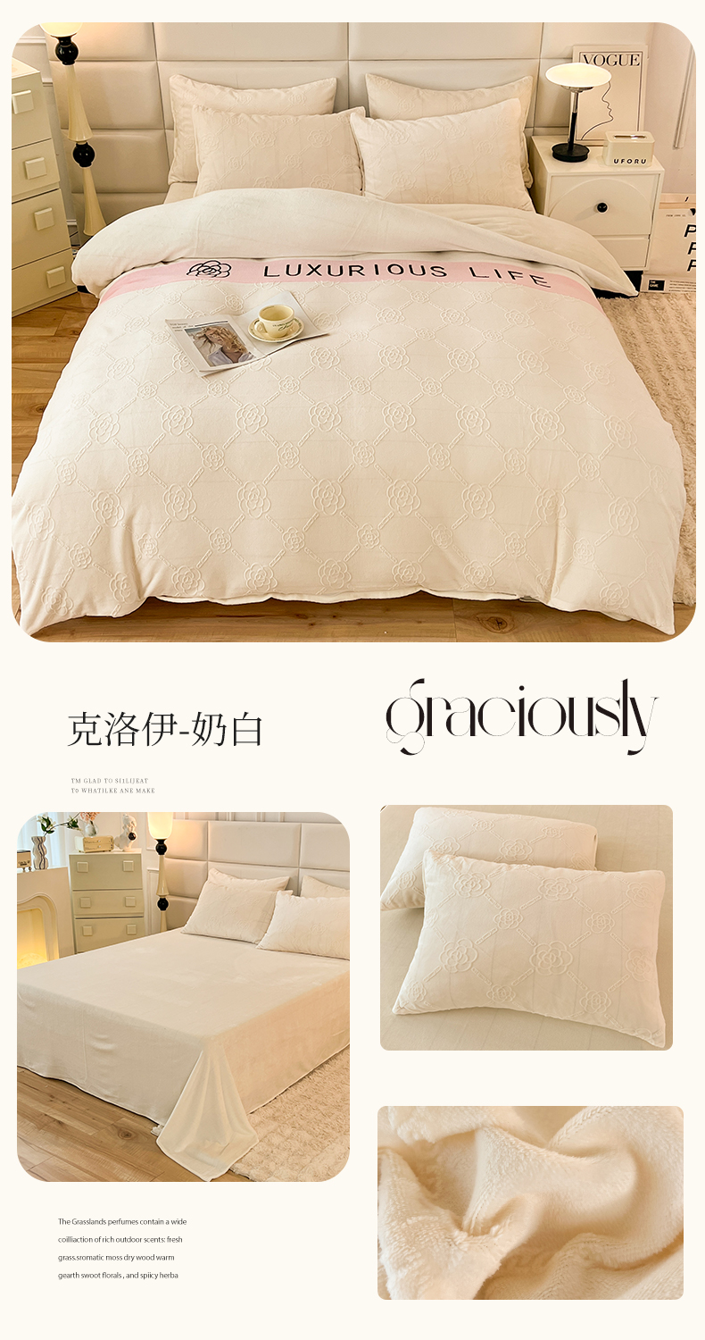 绒兔兔 2023新款雕花烂花牛奶绒刺绣四件套 克洛伊系列 克洛伊-奶白