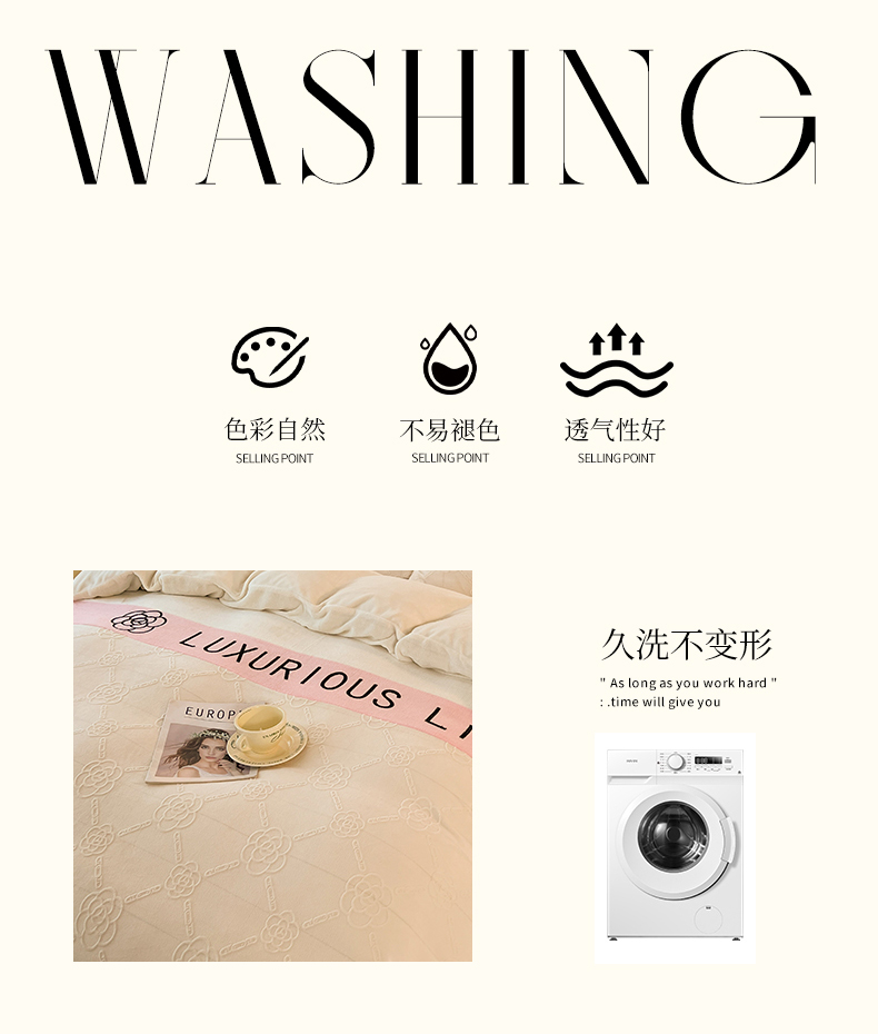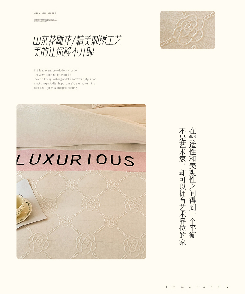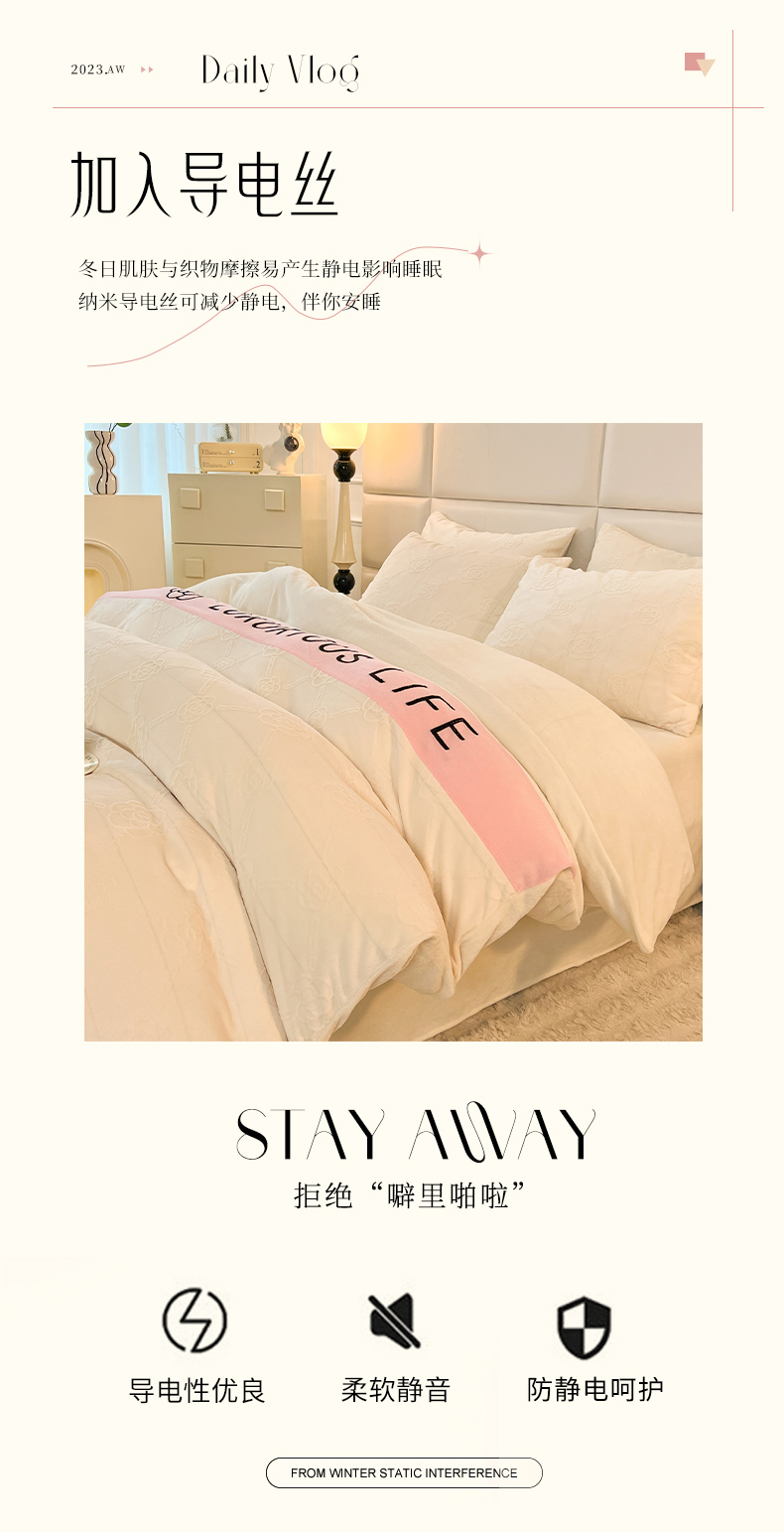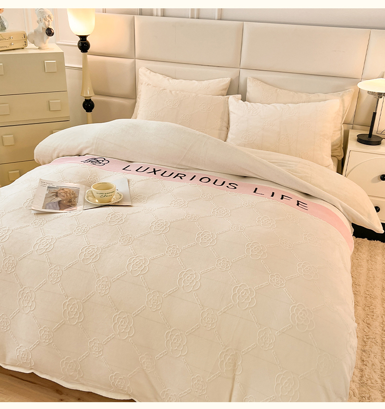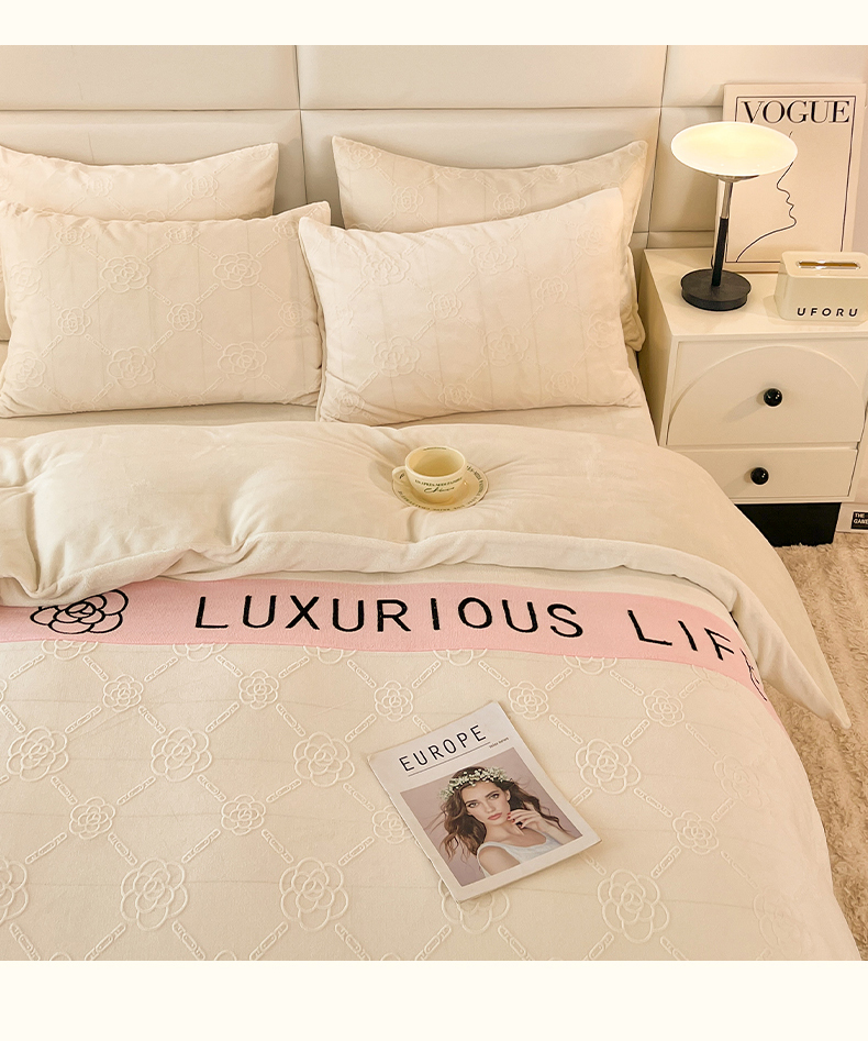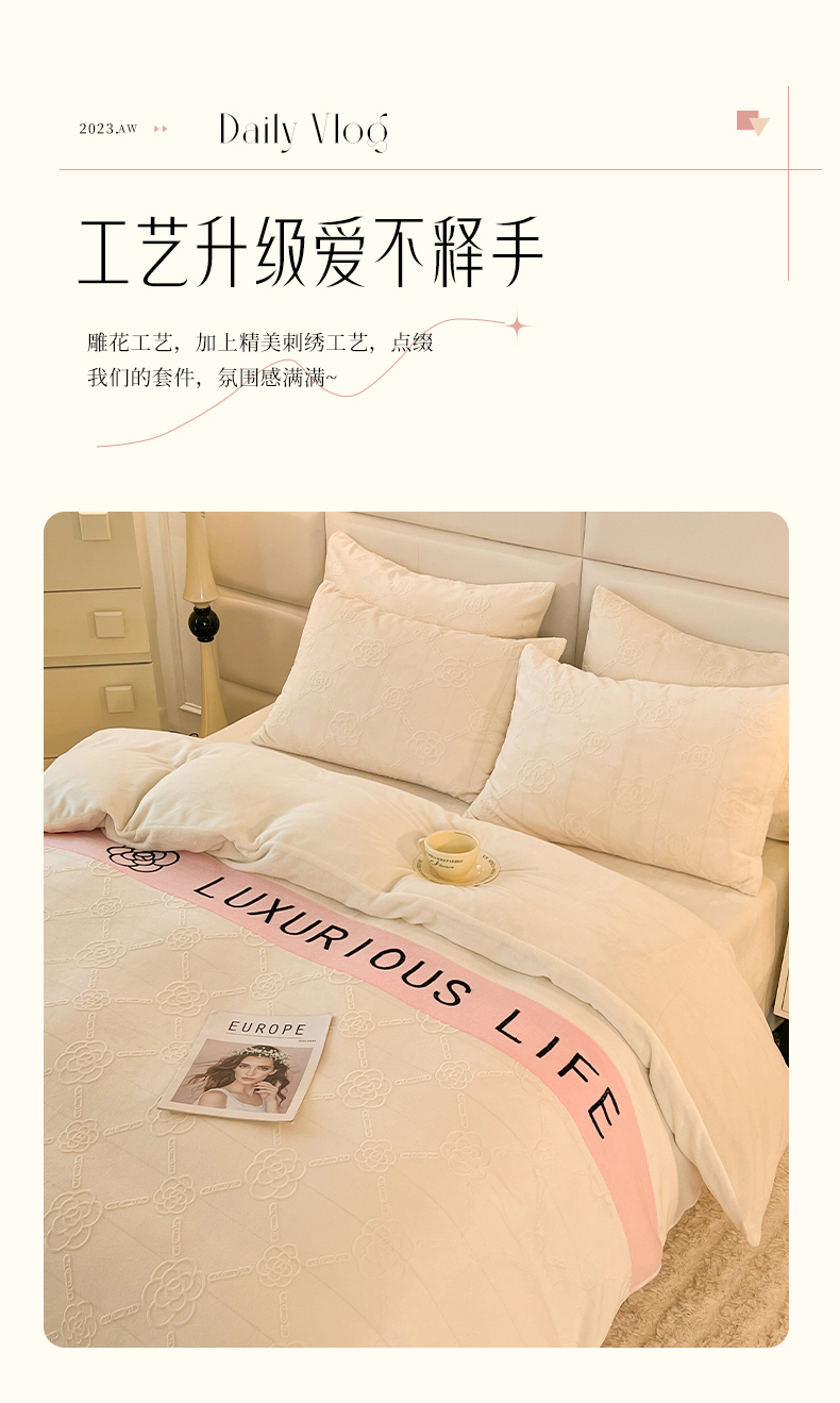 绒兔兔 2023新款雕花烂花牛奶绒刺绣四件套 克洛伊系列 克洛伊-奶白