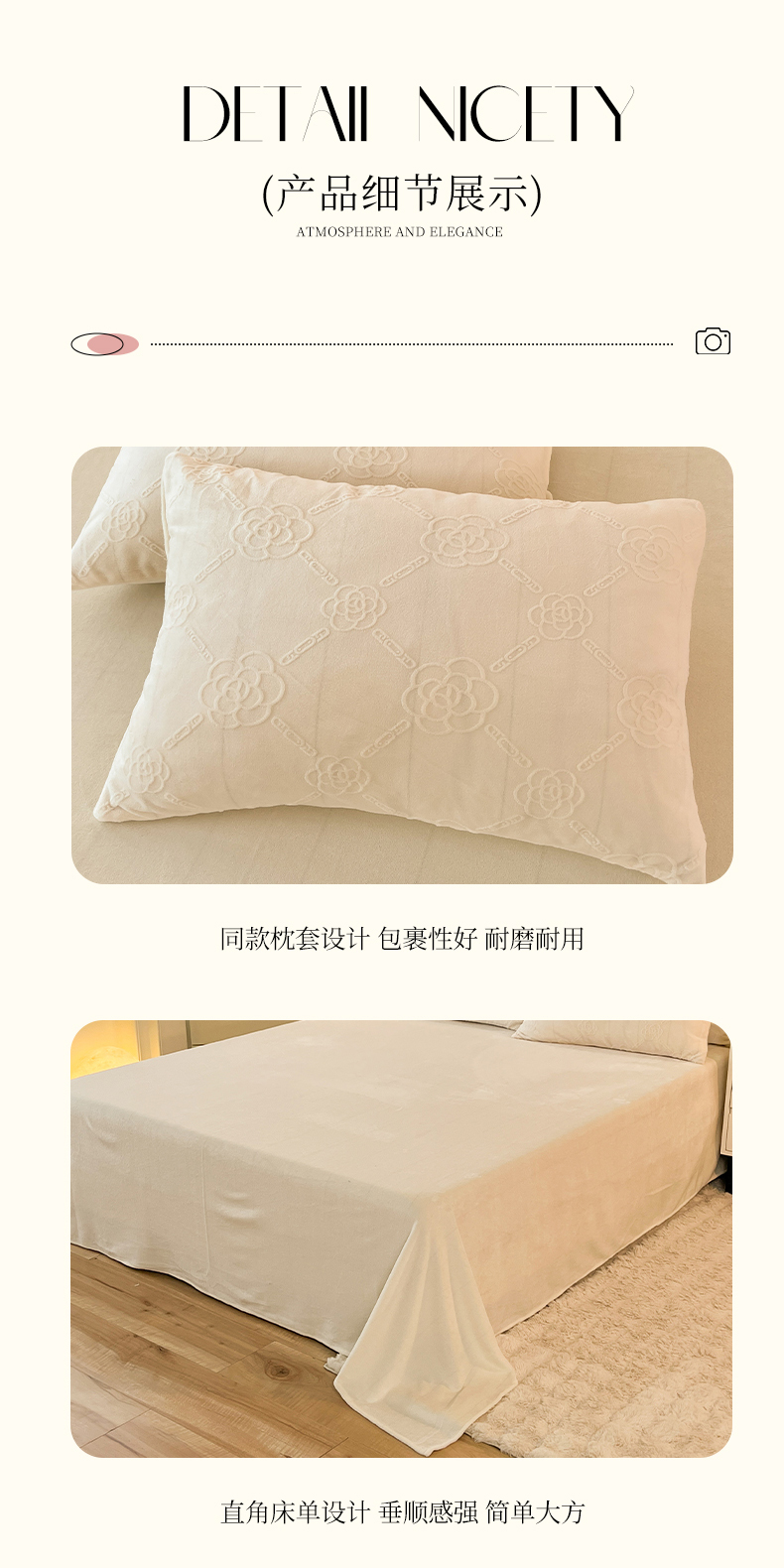 商品名称:绒兔兔 2023新款雕花烂花牛奶绒刺绣四件套 克洛伊系列 克洛伊-奶白