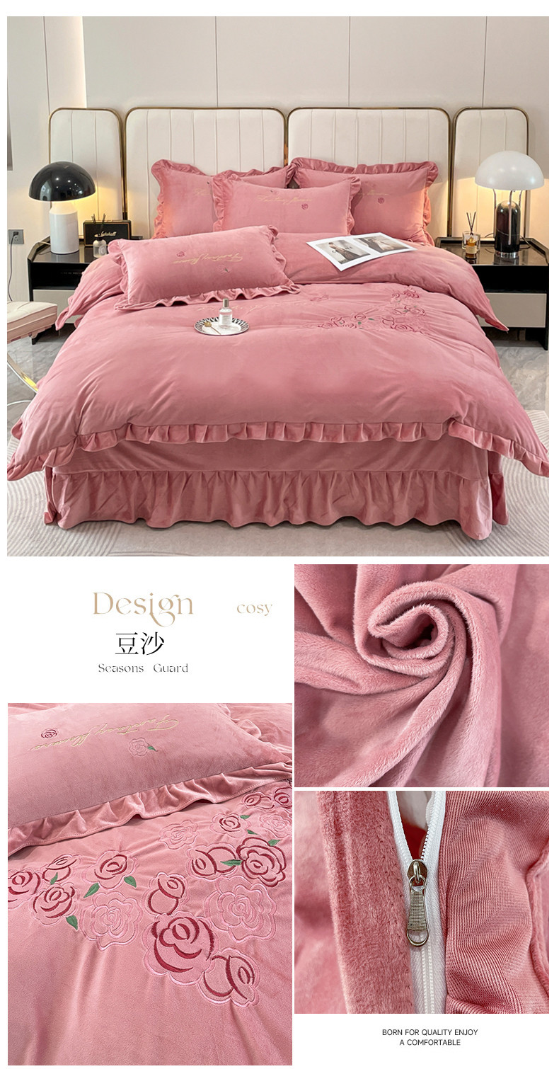 金米诺 2024新款婴儿绒韩版床单绣花四件套 豆沙