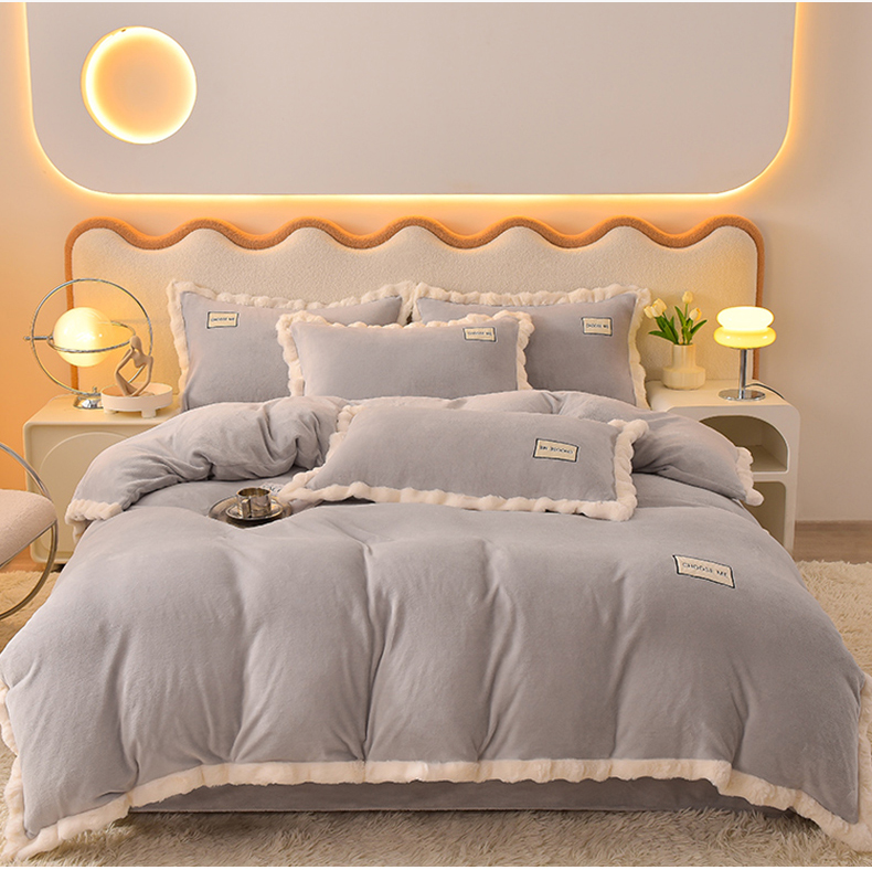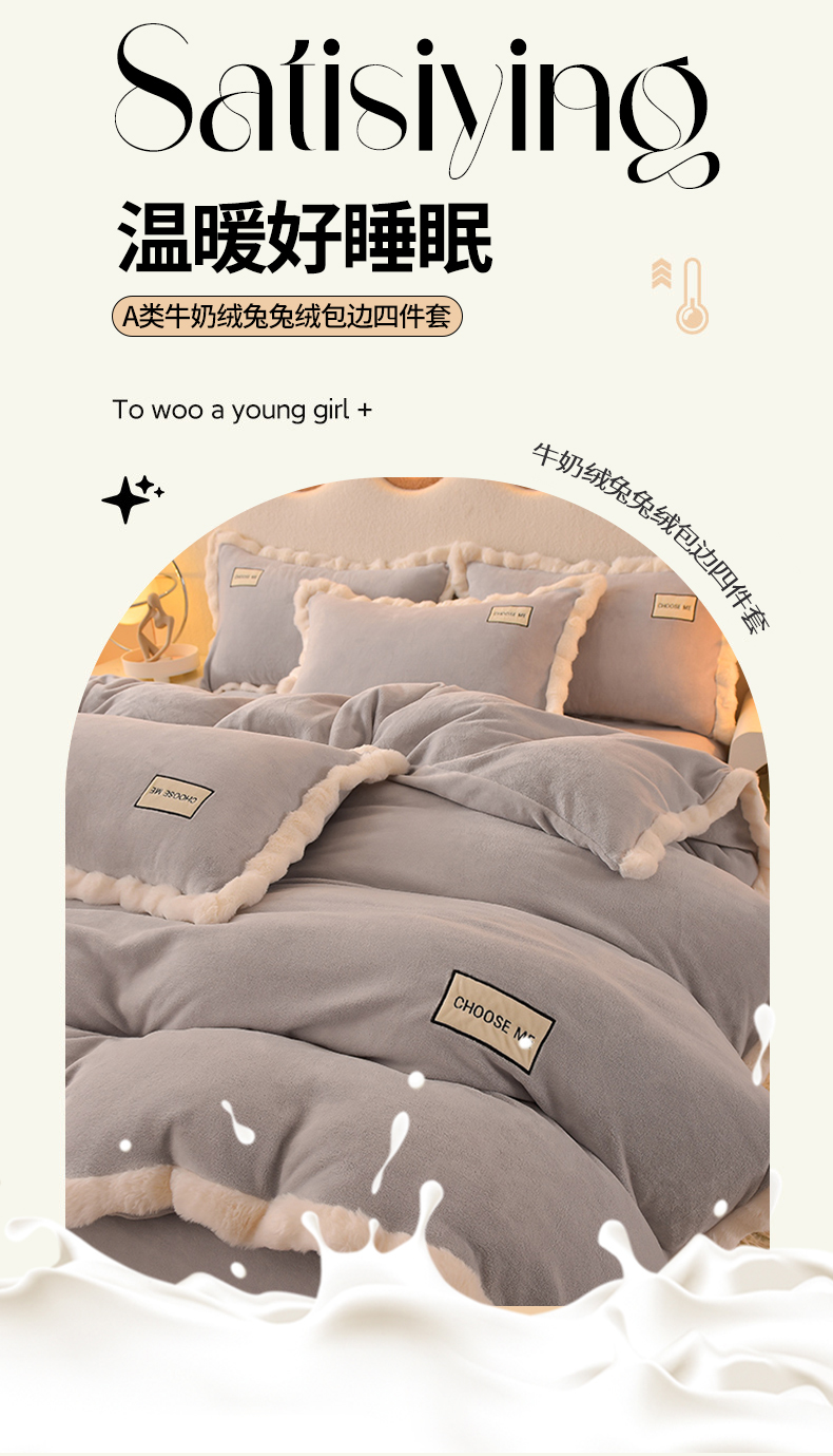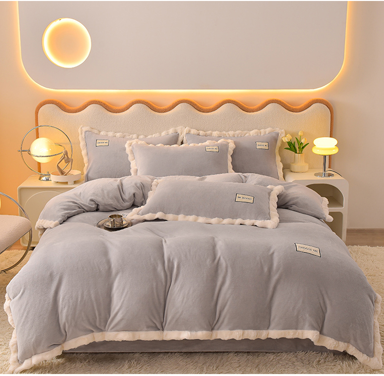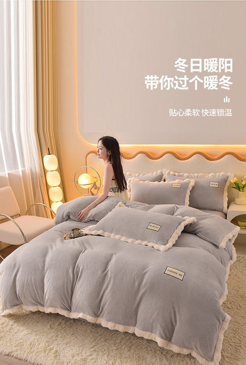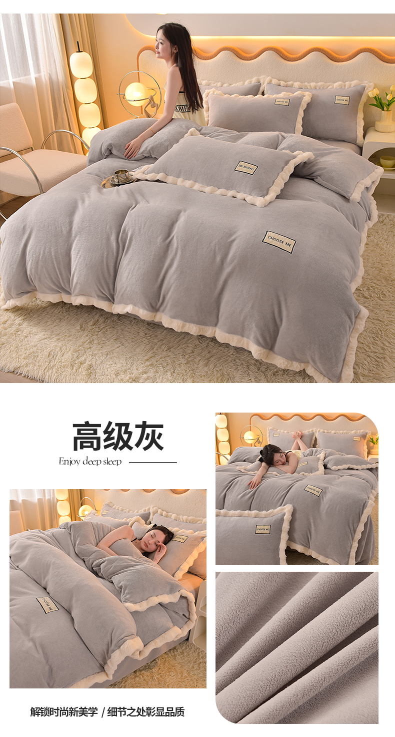 米奈家居 2025新款A类高克重牛奶绒四件套-卡洛琳 高级灰