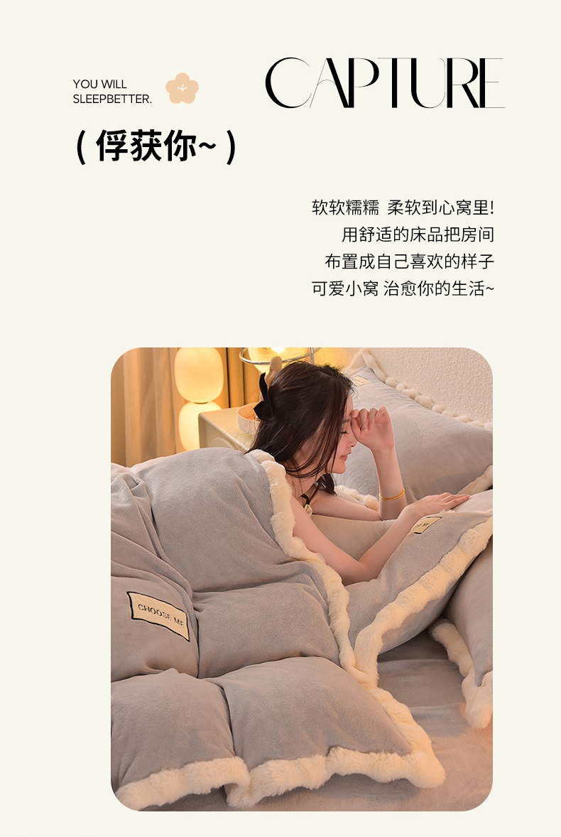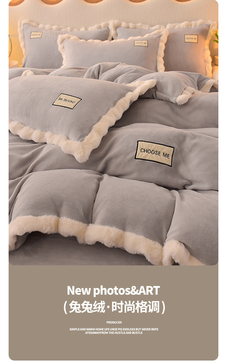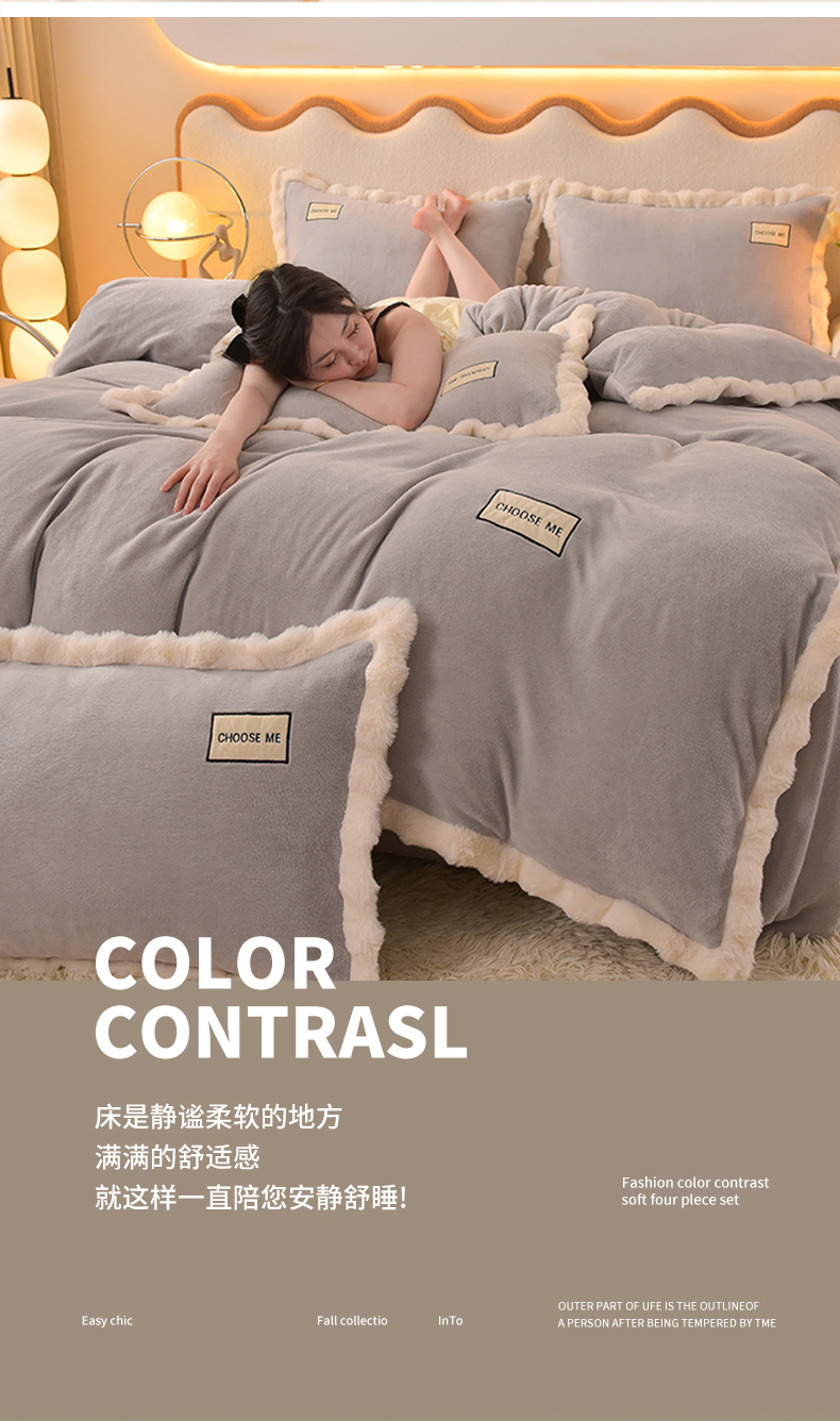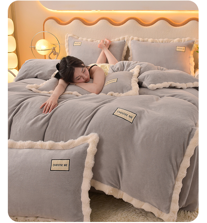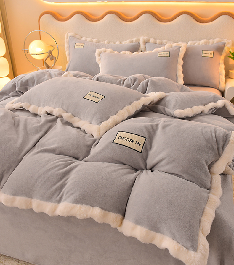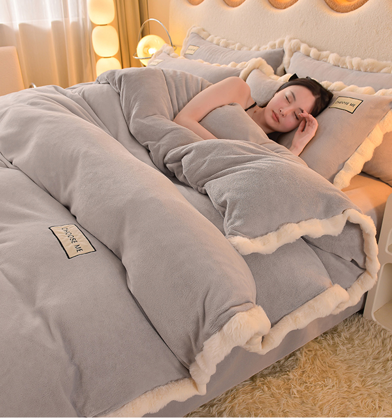 米奈家居 2025新款A类高克重牛奶绒四件套-卡洛琳 高级灰