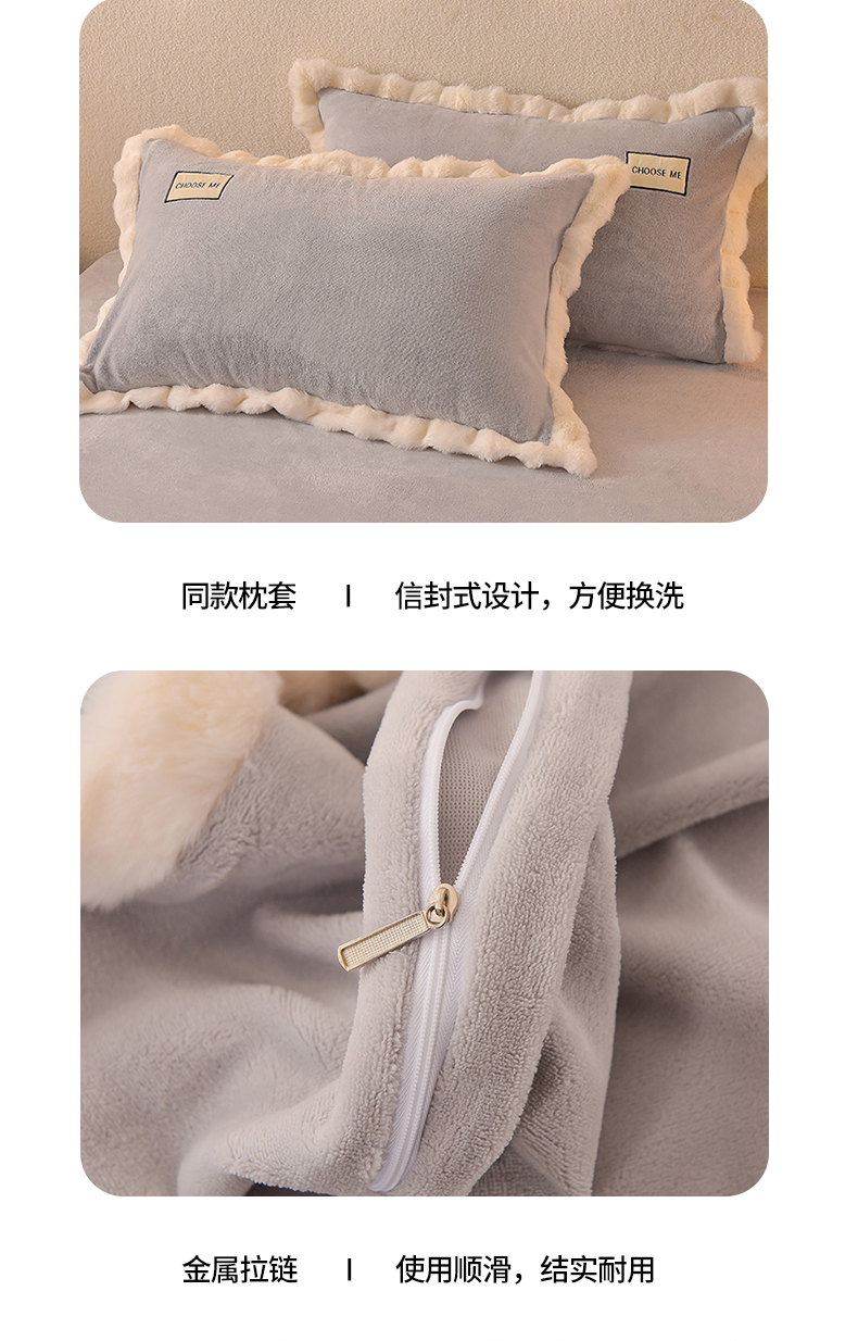 商品名称:米奈家居 2025新款A类高克重牛奶绒四件套-卡洛琳 高级灰