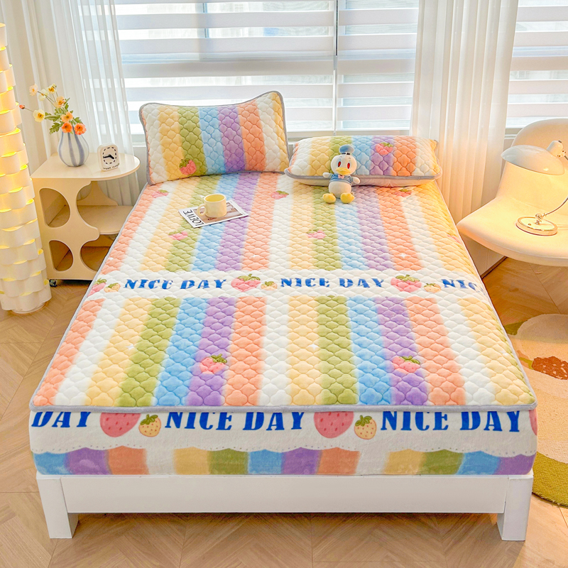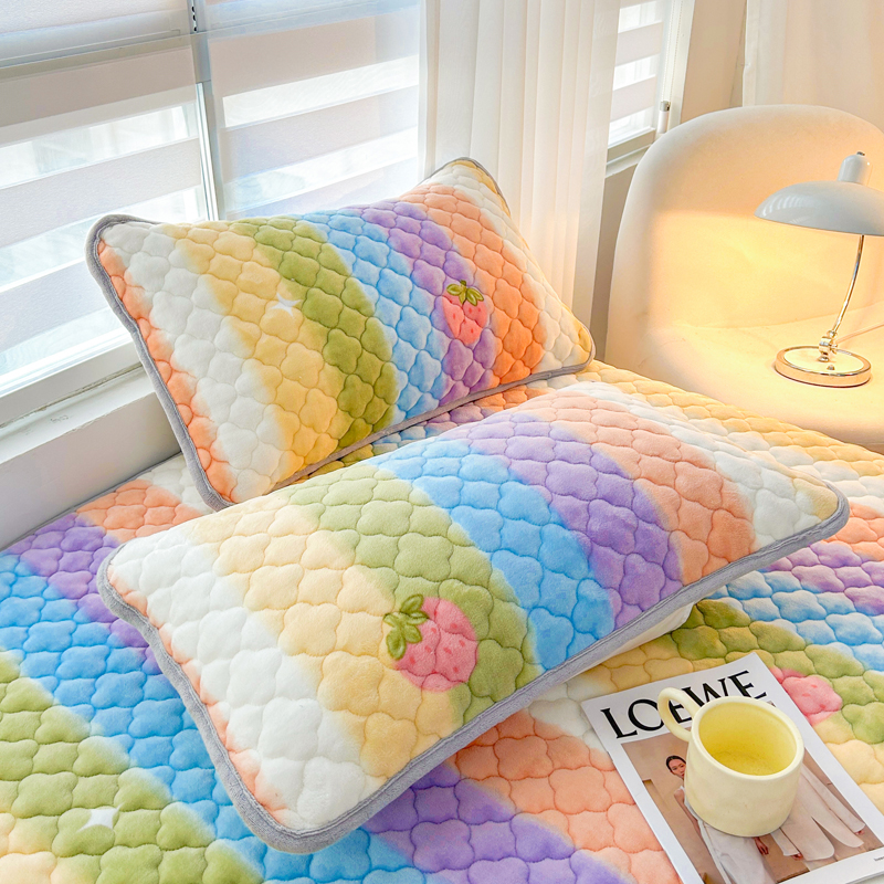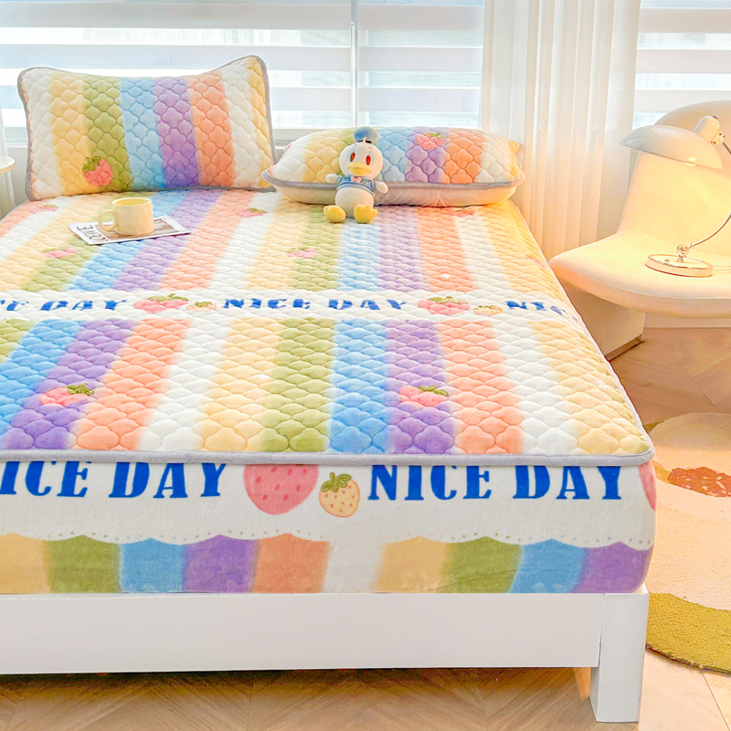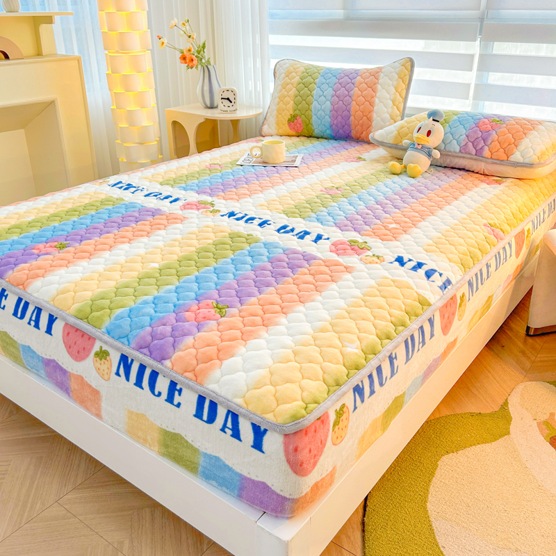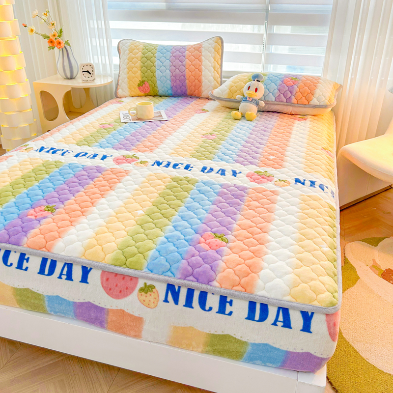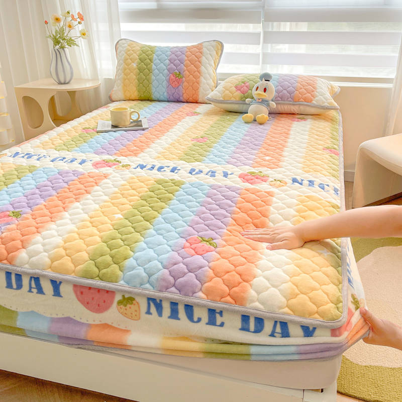 梵朴 2023新款牛奶绒夹棉床笠 蜜桃彩虹
