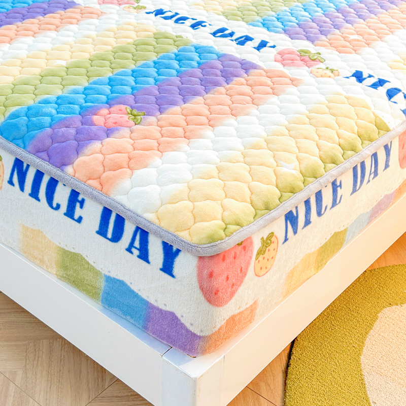 商品名称:梵朴 2023新款牛奶绒夹棉床笠 蜜桃彩虹
