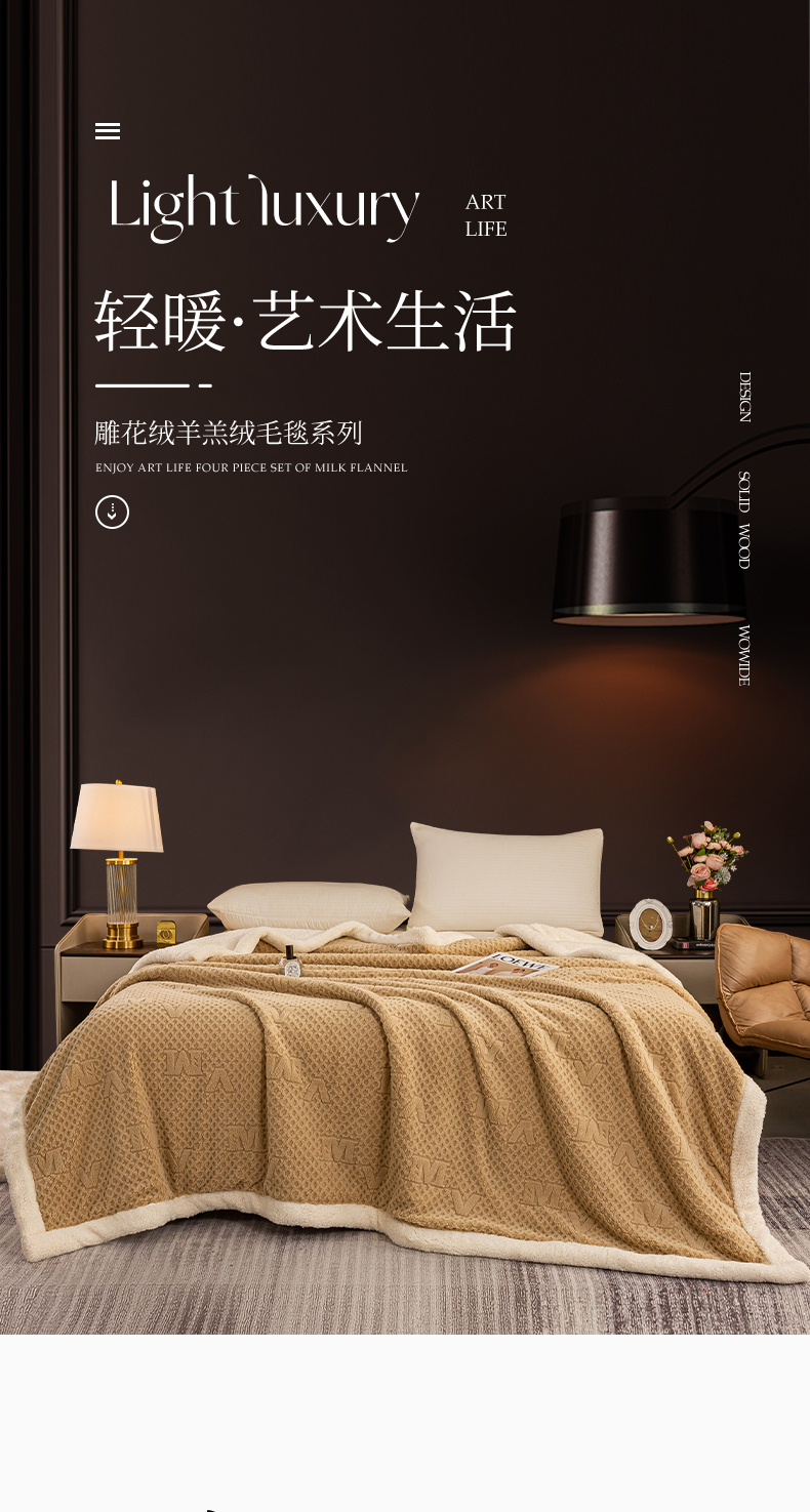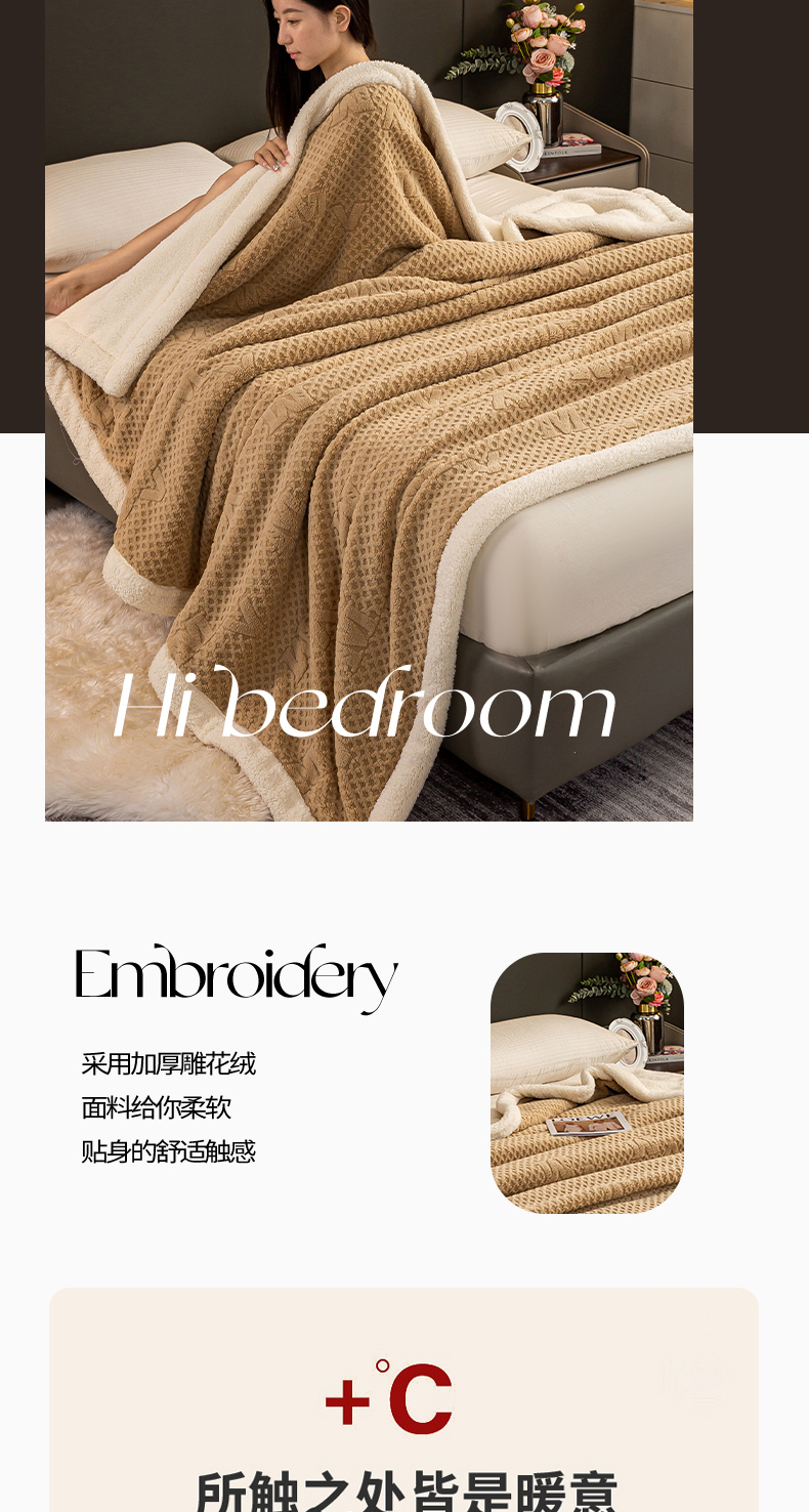 商品名称:慕木家纺 2025新款爆款加厚AB版提花雕花绒羊羔绒毛毯 素锦卡