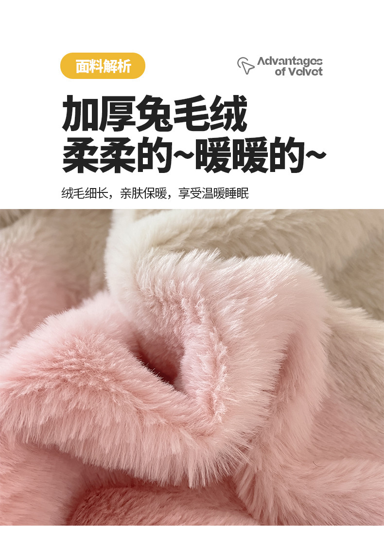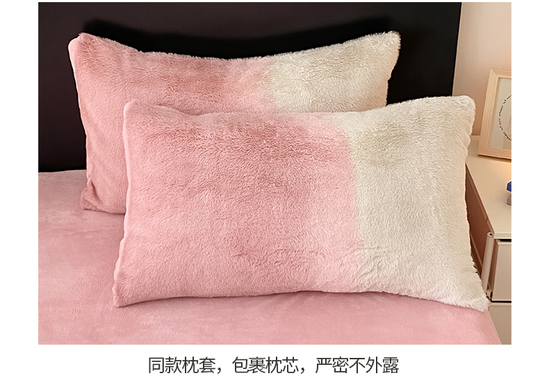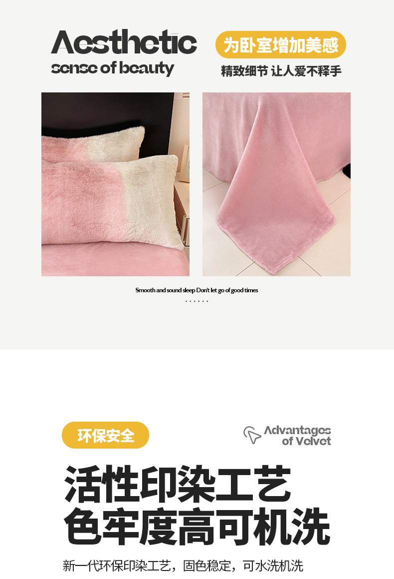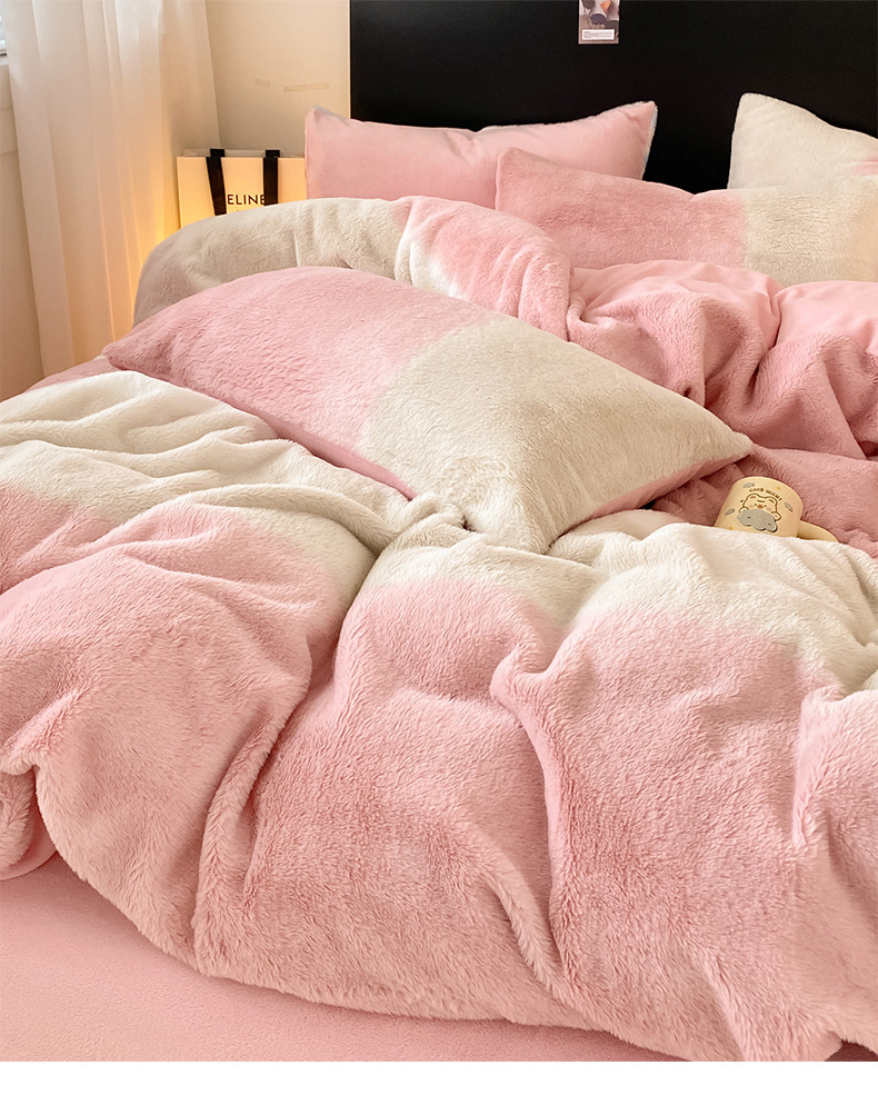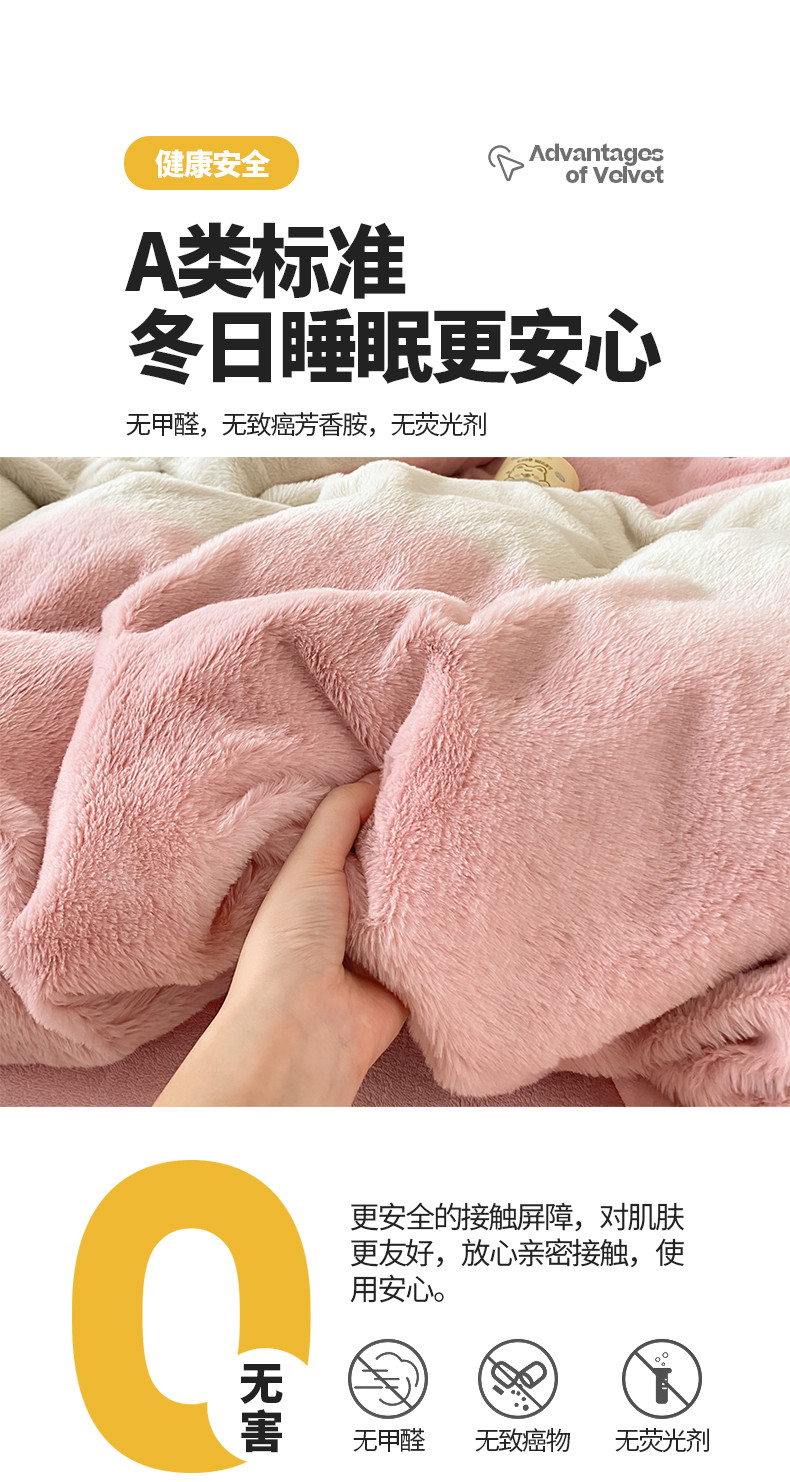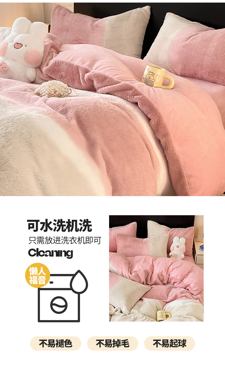 A类ins高克重320克简约渐变印花兔毛绒暖绒加厚牛奶绒系列四件套 绒兔毛-云彩粉