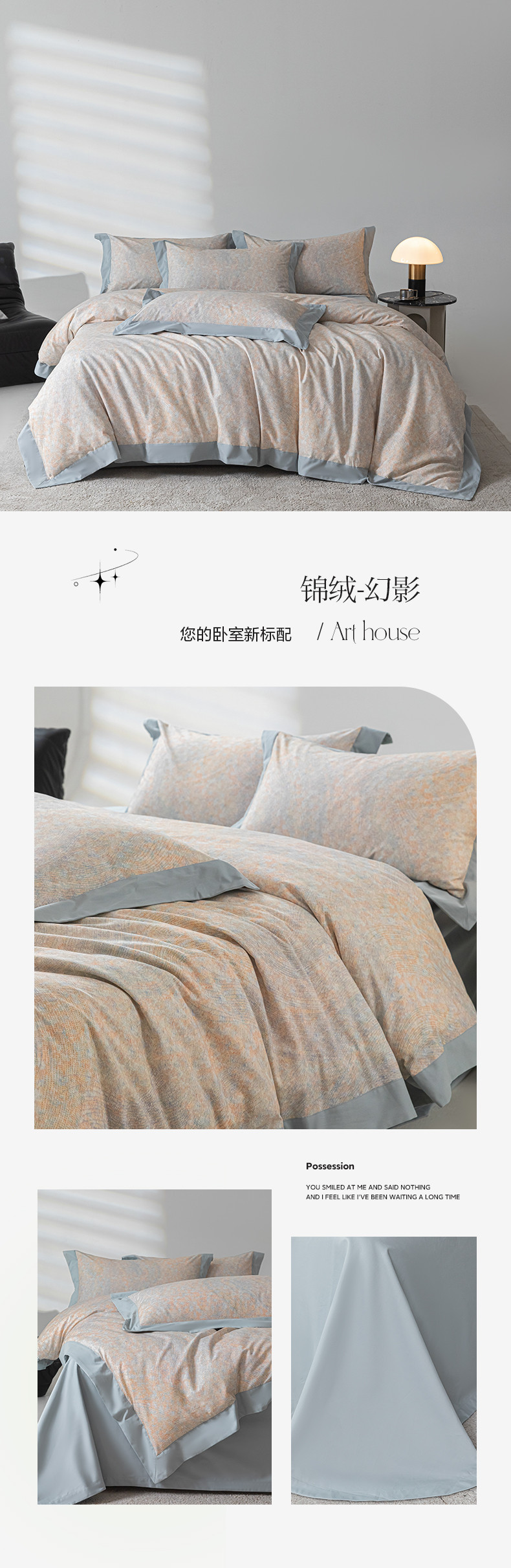 栩裕纺织 2023新款50支长绒棉贡缎磨毛数码印花四件套-锦绒 锦绒-幻影