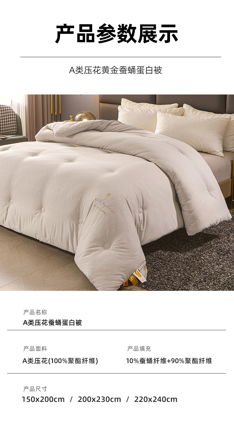 当前位置: 91家纺网 > 商品网购 > 被子 > 冬被 > 2023秋冬新款A类压花蚕蛹蛋白被 被子被芯 灰色