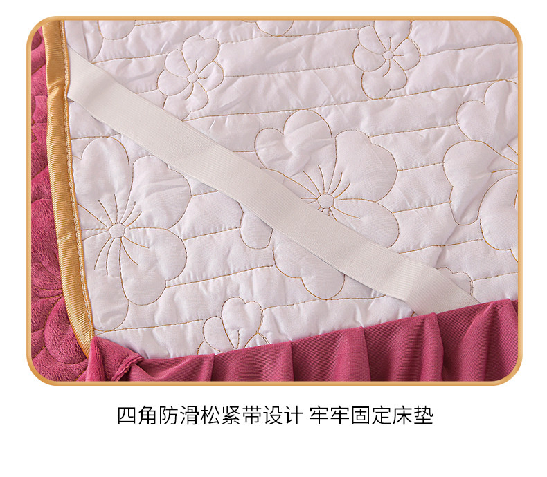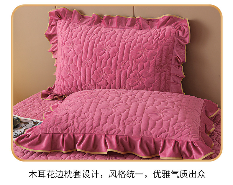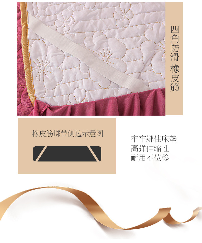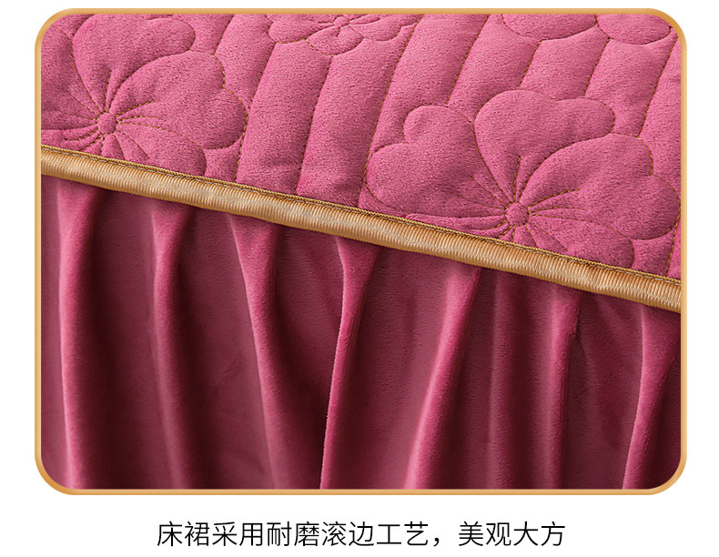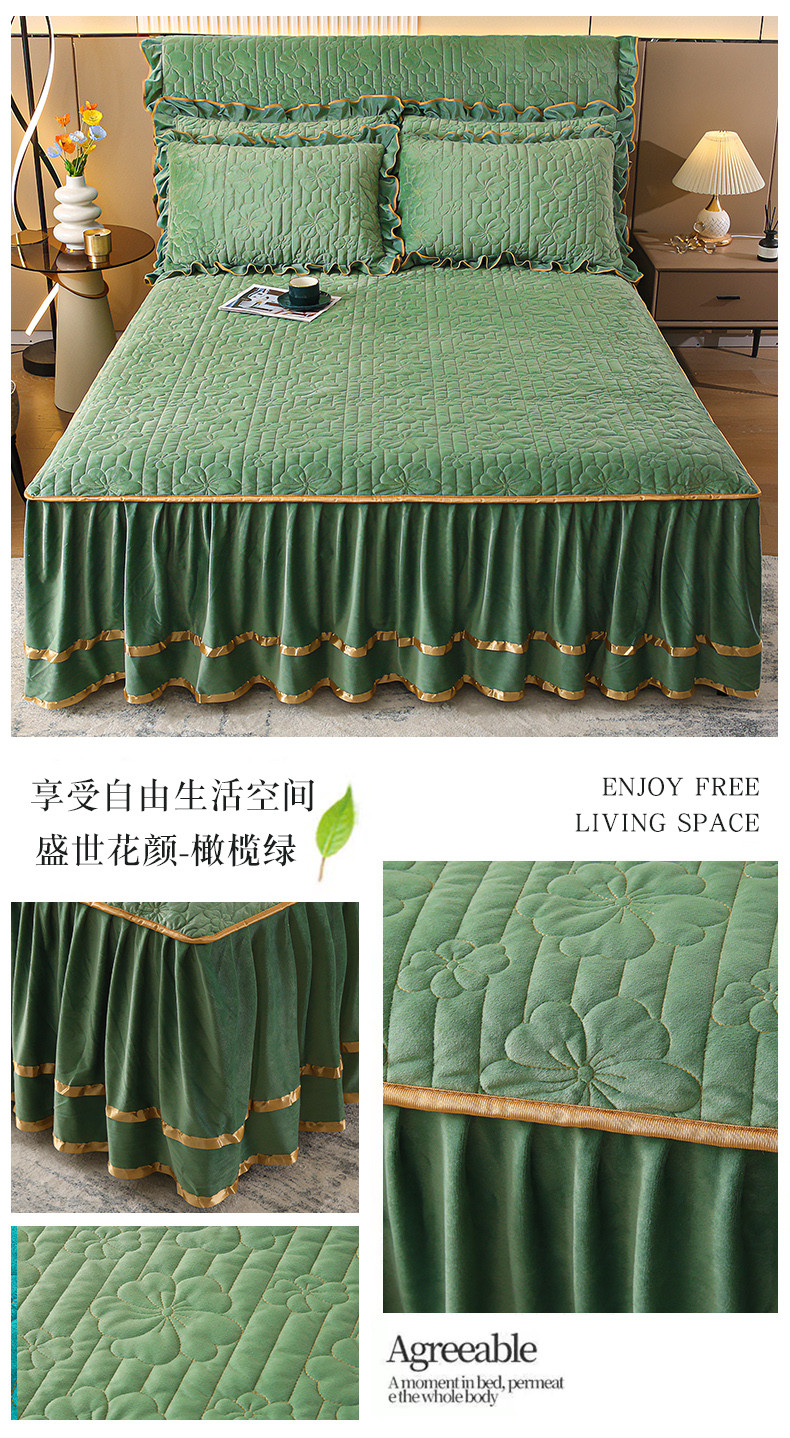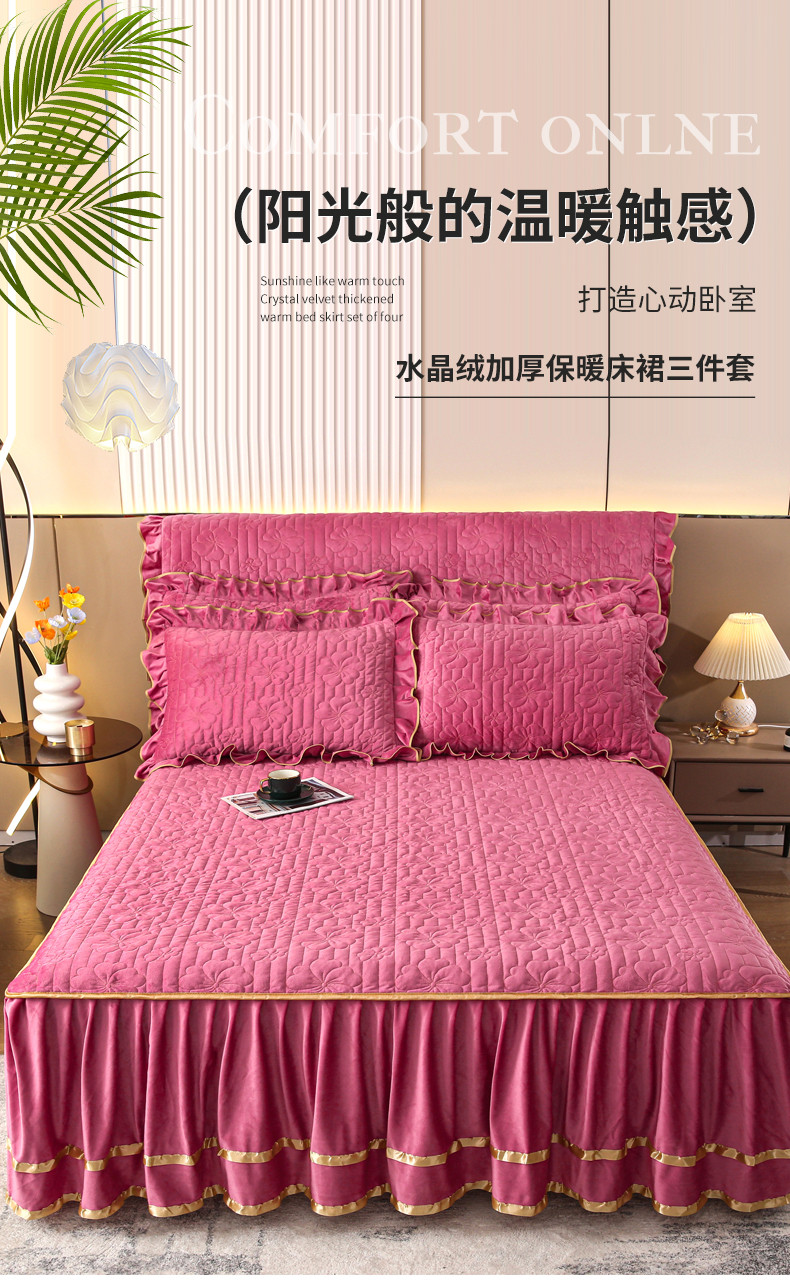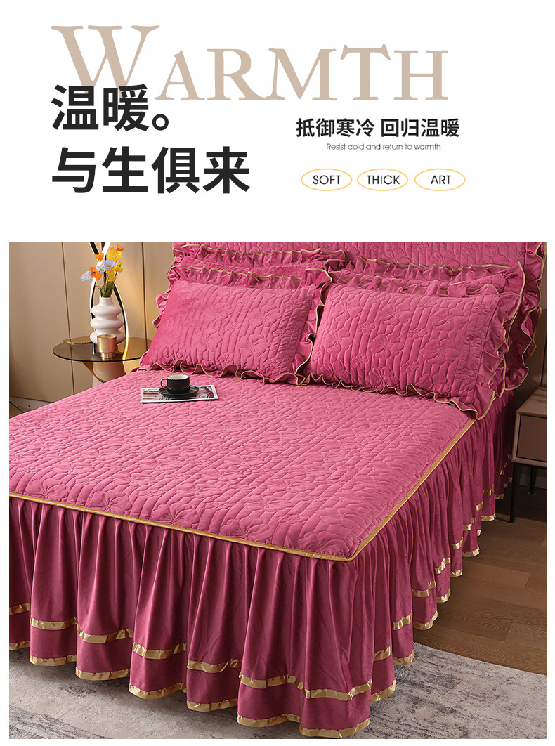 (总)屹成家纺2025新款水晶绒夹棉绗缝蕾丝床裙三件套(塞纳河畔)床裙单件起售价不低于105元,大红,豆沙,翡翠绿,粉玉,橄榄绿,蔚蓝,银灰