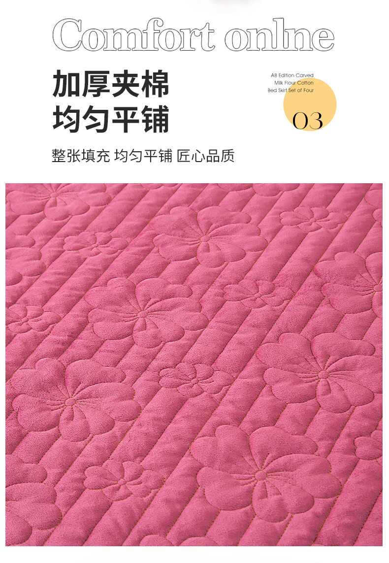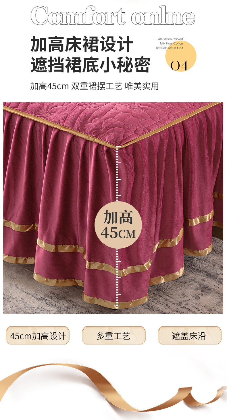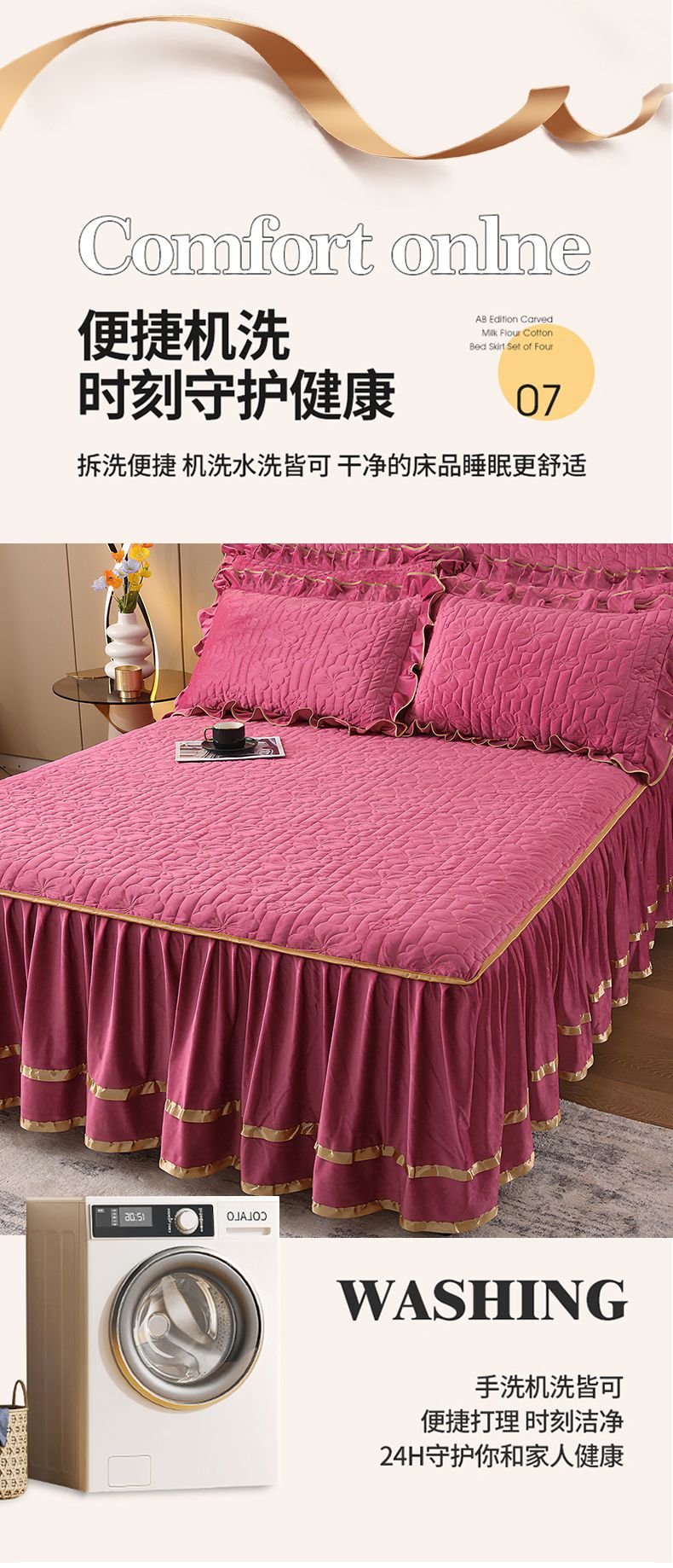 (总)屹成家纺2025新款水晶绒夹棉绗缝床裙四件套(塞纳河畔)四件套起售价不低于230元,大红,豆沙,翡翠绿,粉玉,橄榄绿,蔚蓝,银灰
