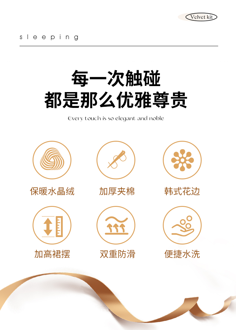 商品名称:新款水晶绒加厚保暖单床裙-盛世花颜 盛世花颜-豆沙