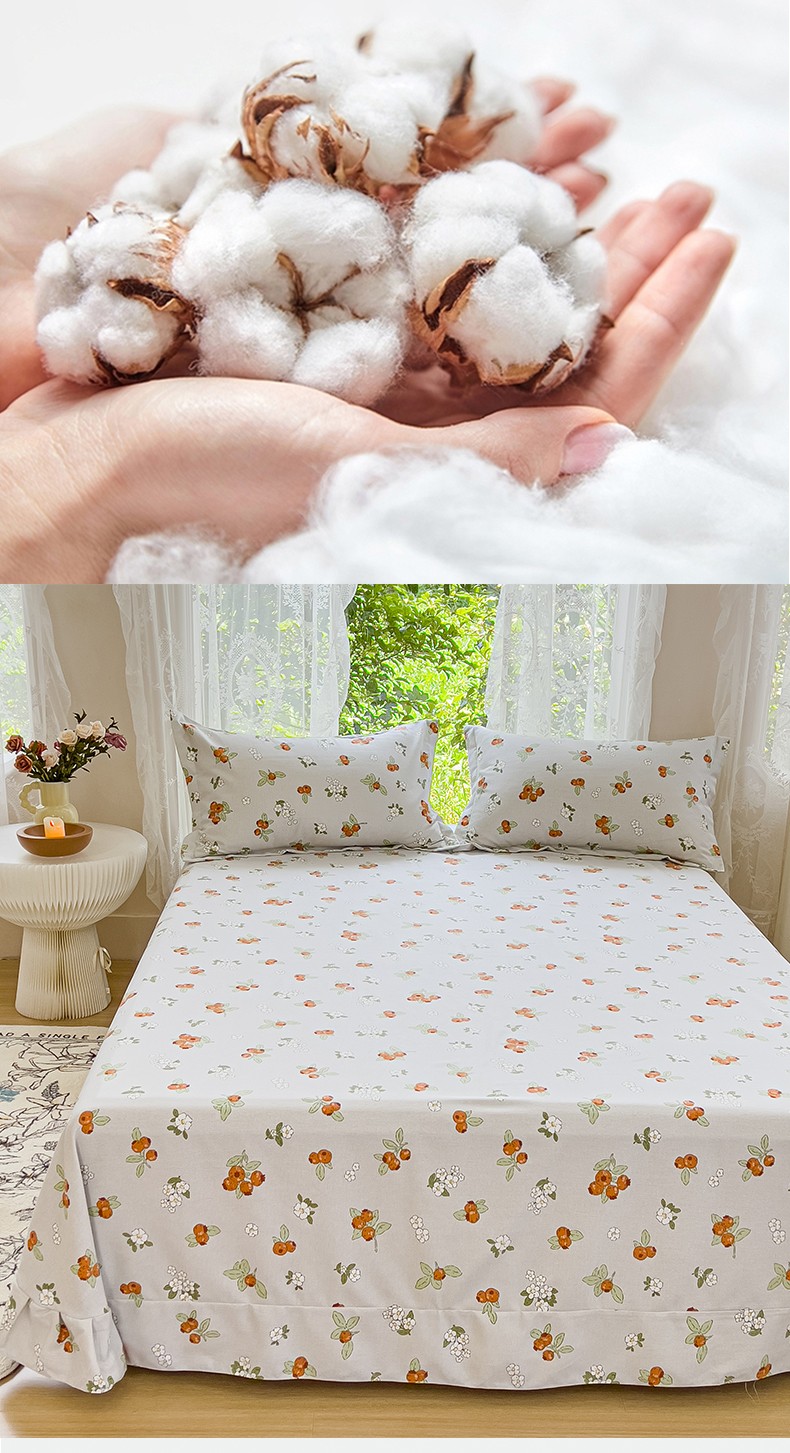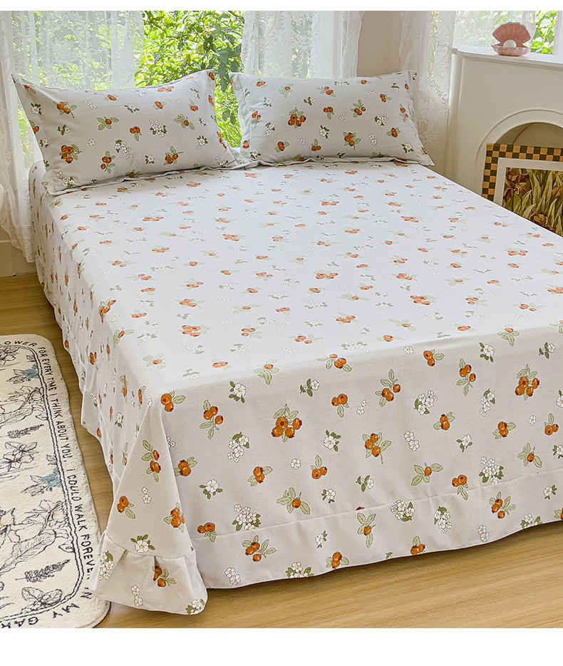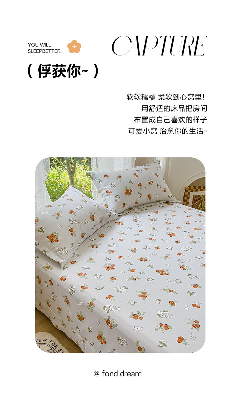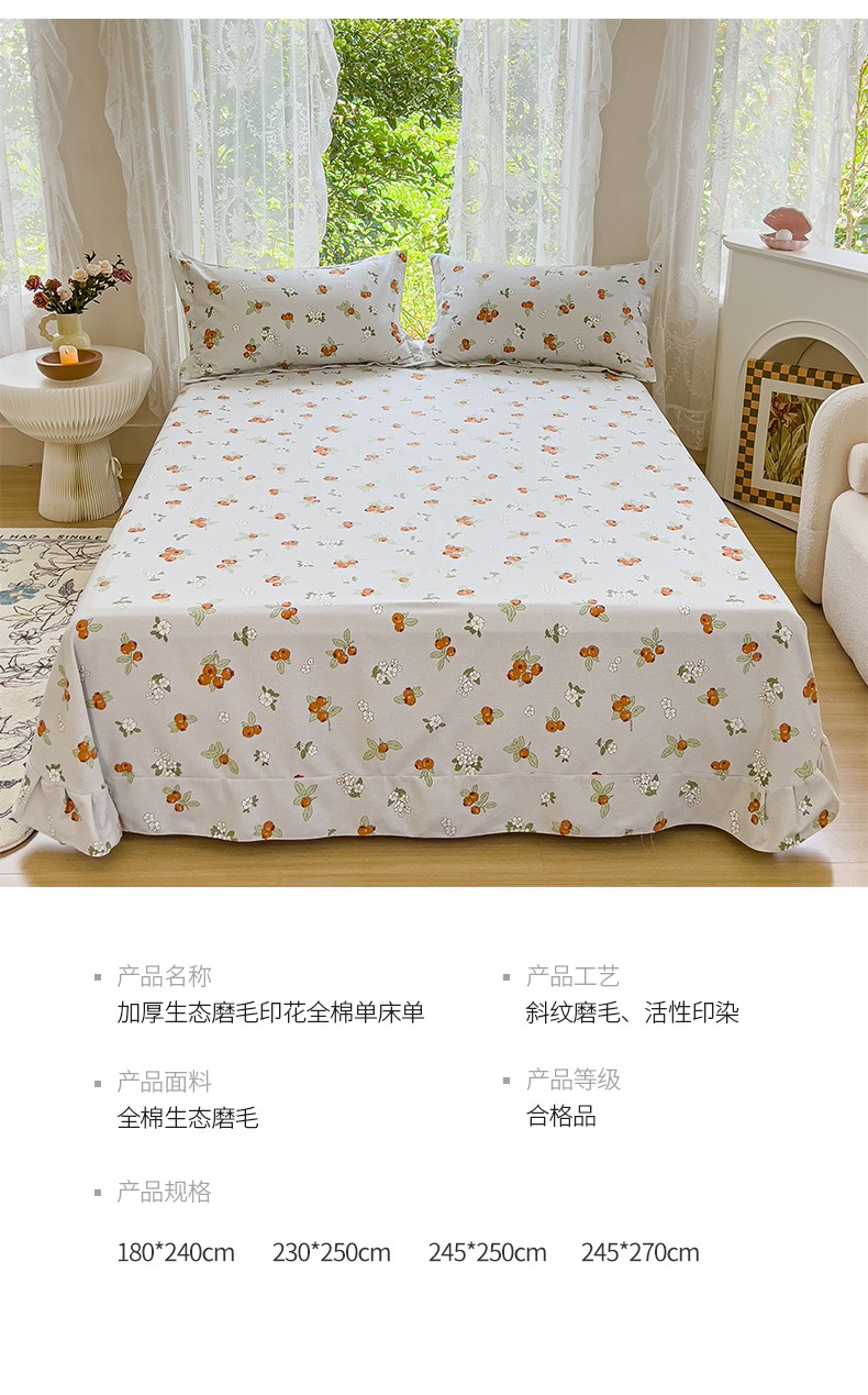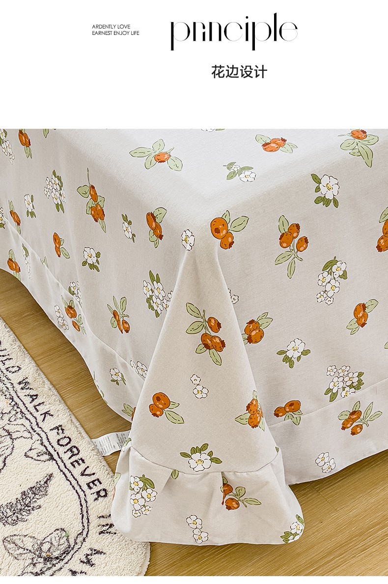 伊而梦 2023新款小清新全棉磨毛印花四件套系列单品床单 悠果