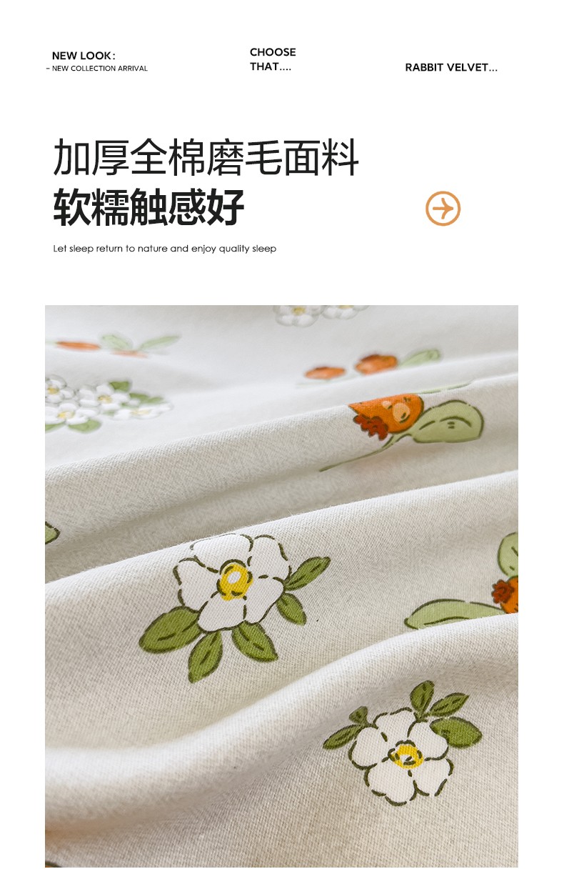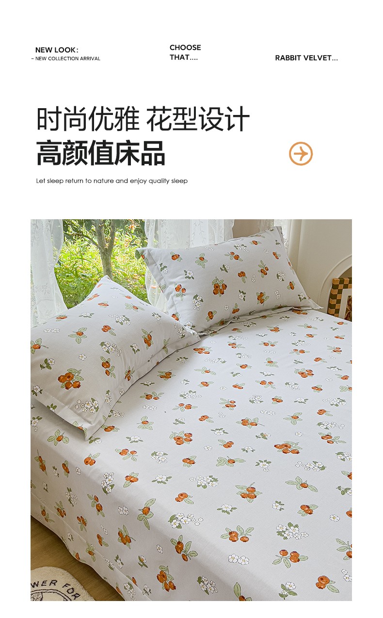 • 91家纺网 家纺一手货源 找家纺 伊而梦 2023新款小清新全棉磨毛印花四件套系列单品床单 悠果