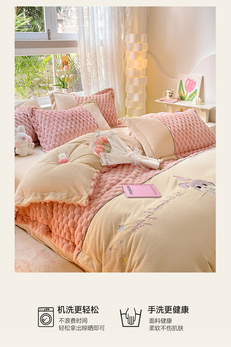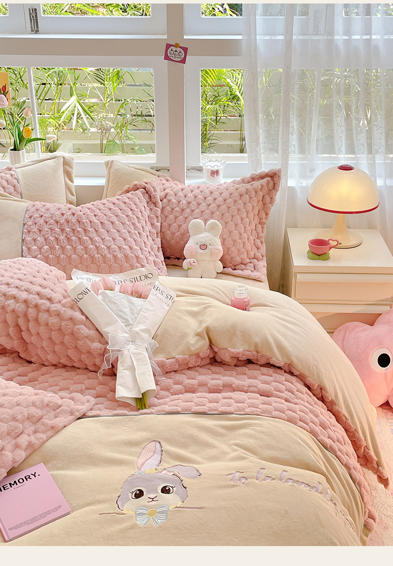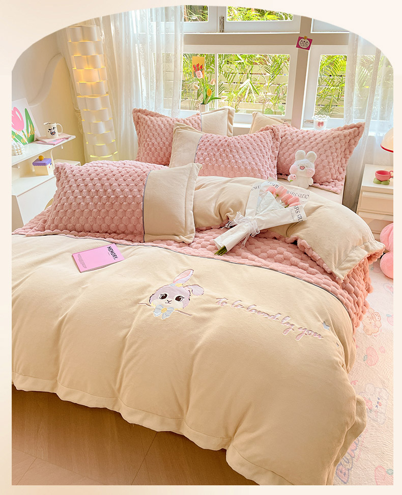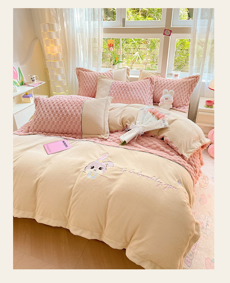 爱上家居 2023新款牛奶绒兔毛绒四件套 梦境兔 梦境兔-樱花粉
