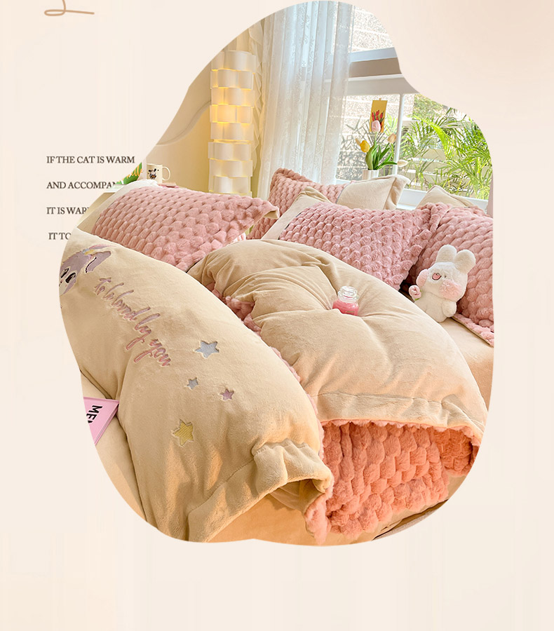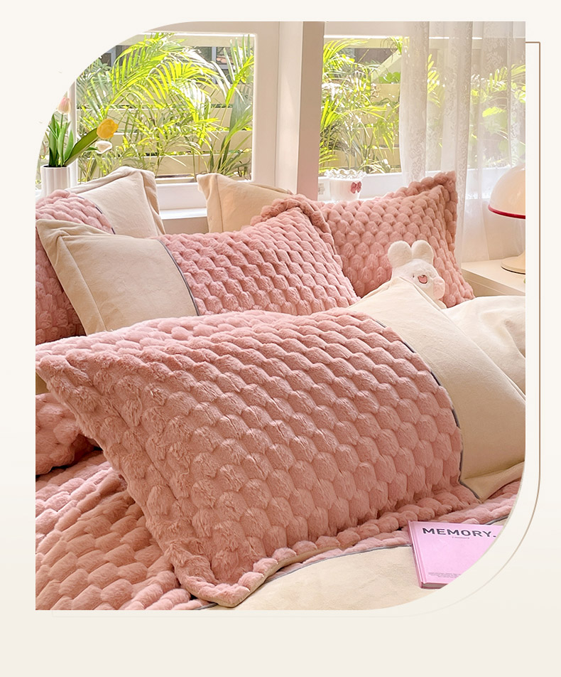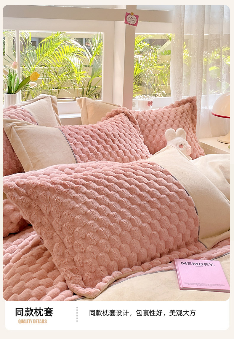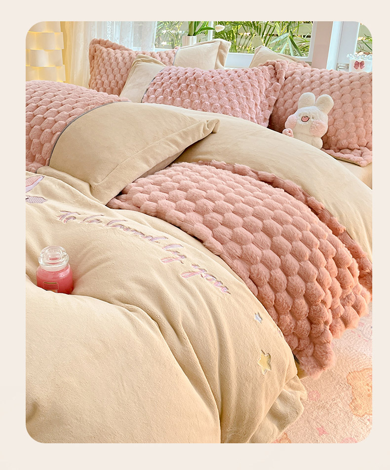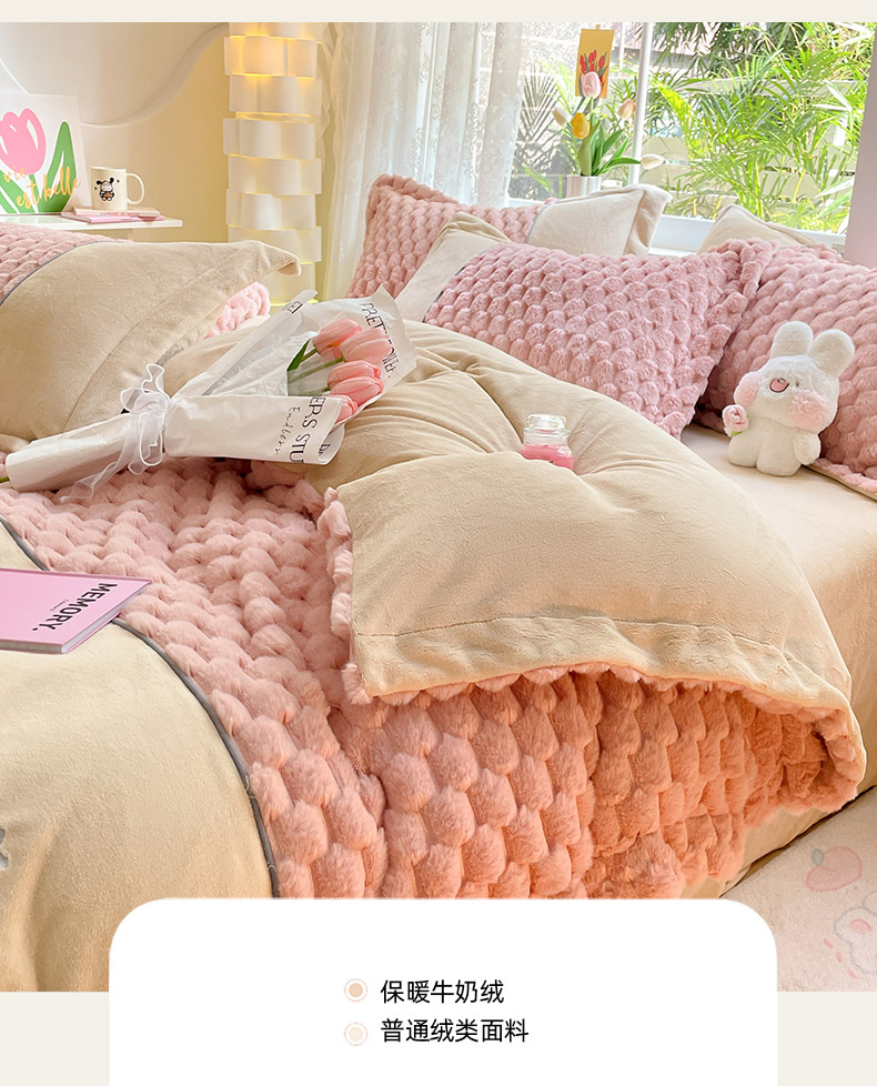 爱上家居 2023新款牛奶绒兔毛绒四件套 梦境兔 梦境兔-樱花粉