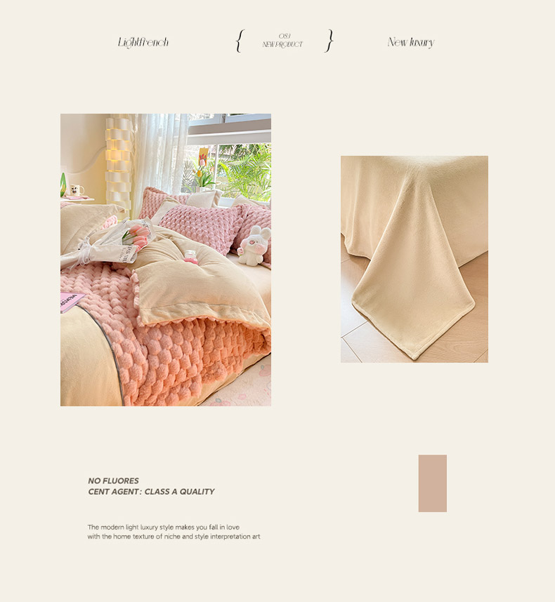(总)爱上家居 2024新款AB版兔兔绒牛奶绒四件套,粉色,灰色,绿色,驼色,紫色