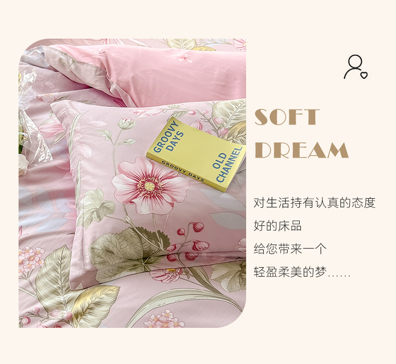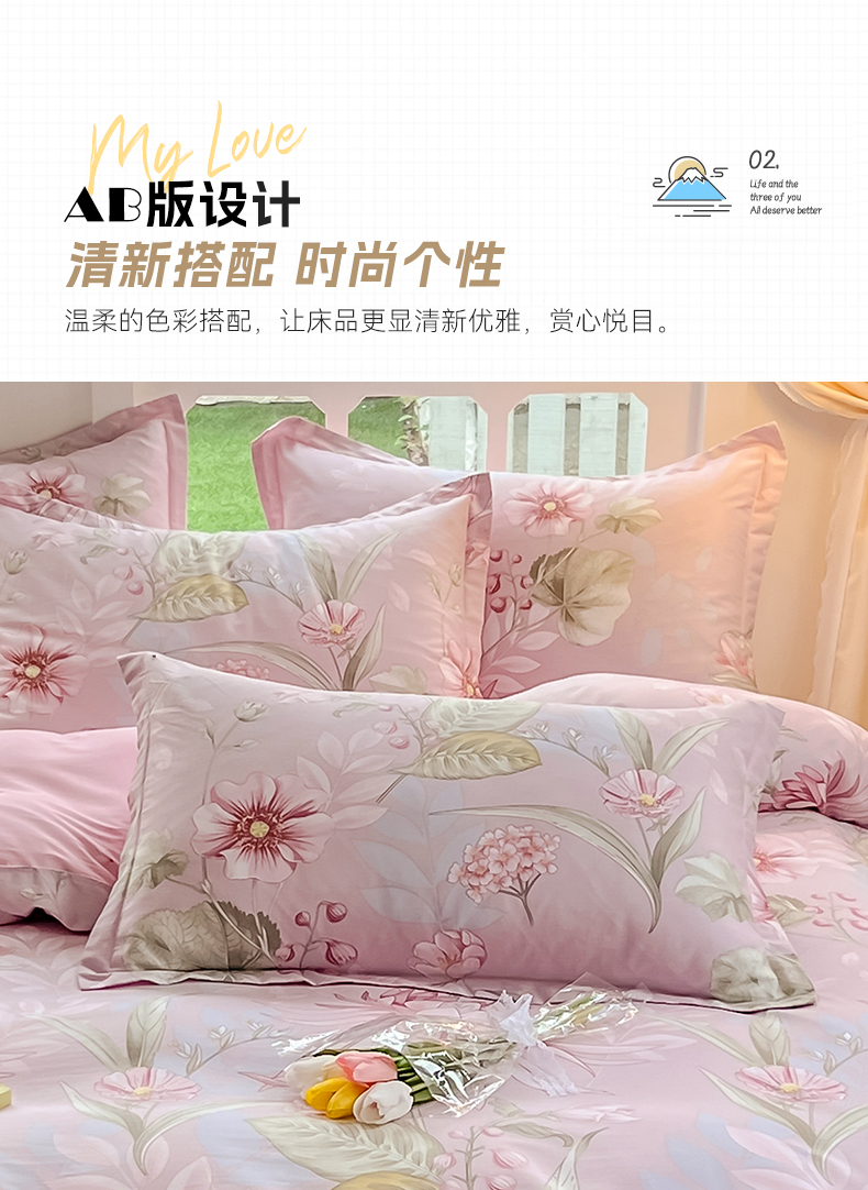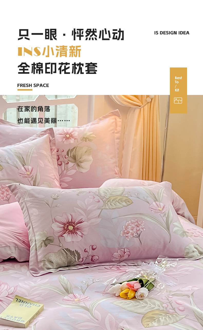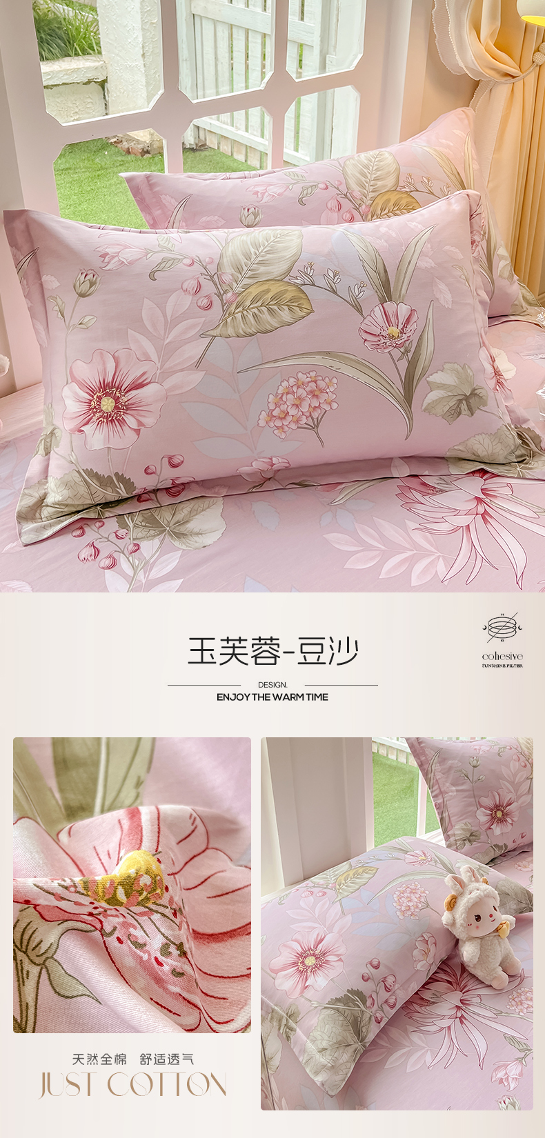 绵庭家纺 2023新款12868系列全棉小清新印花单枕套 玉芙蓉 豆沙