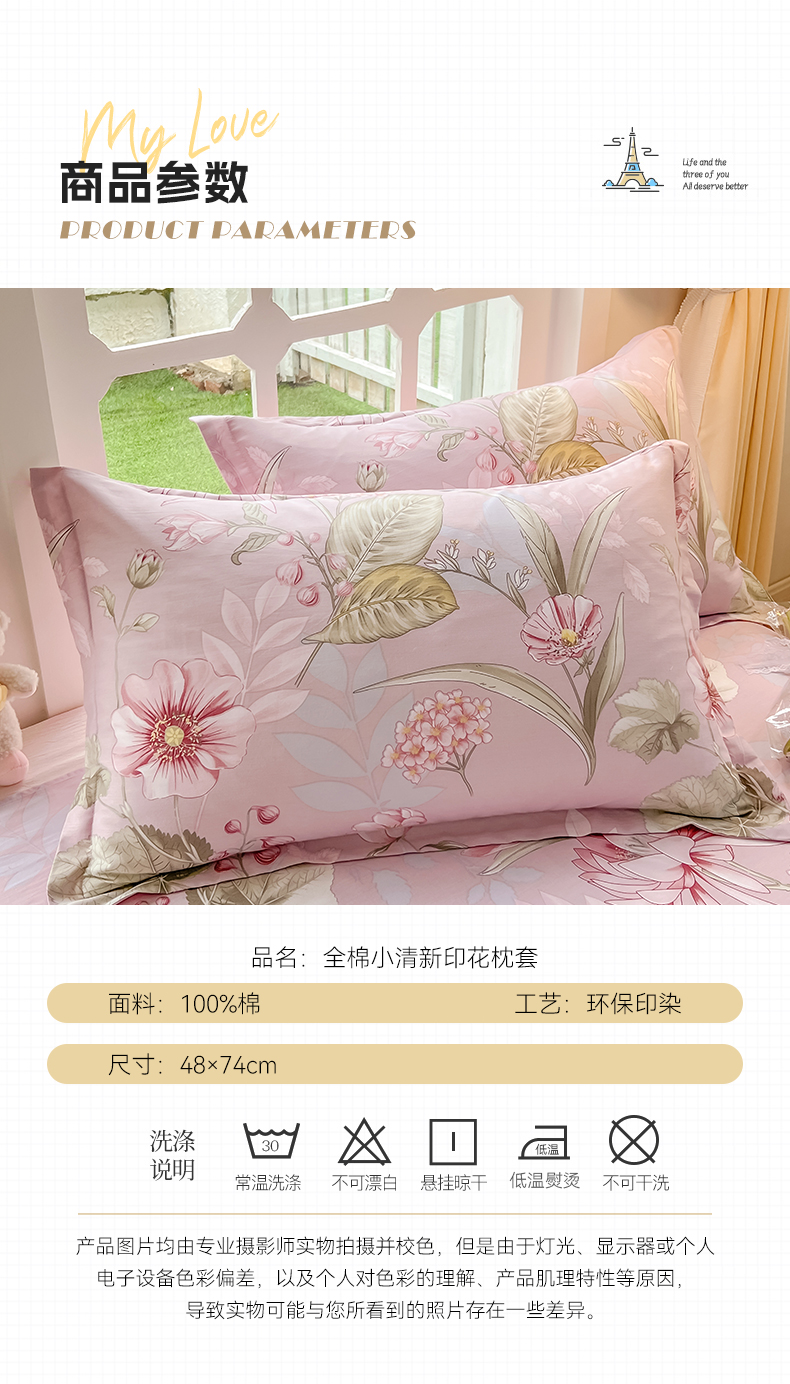 商品名称:绵庭家纺 2023新款12868系列全棉小清新印花单枕套 玉芙蓉 豆沙