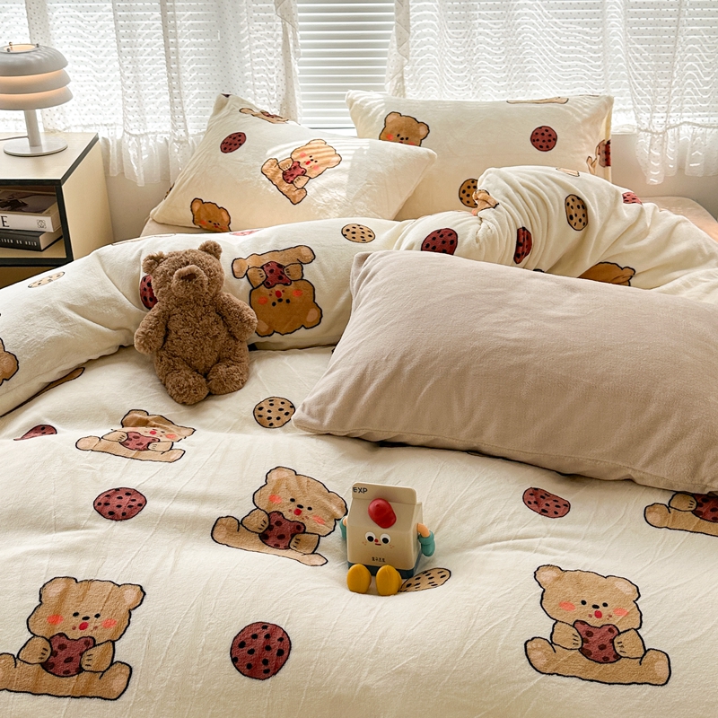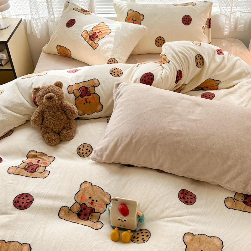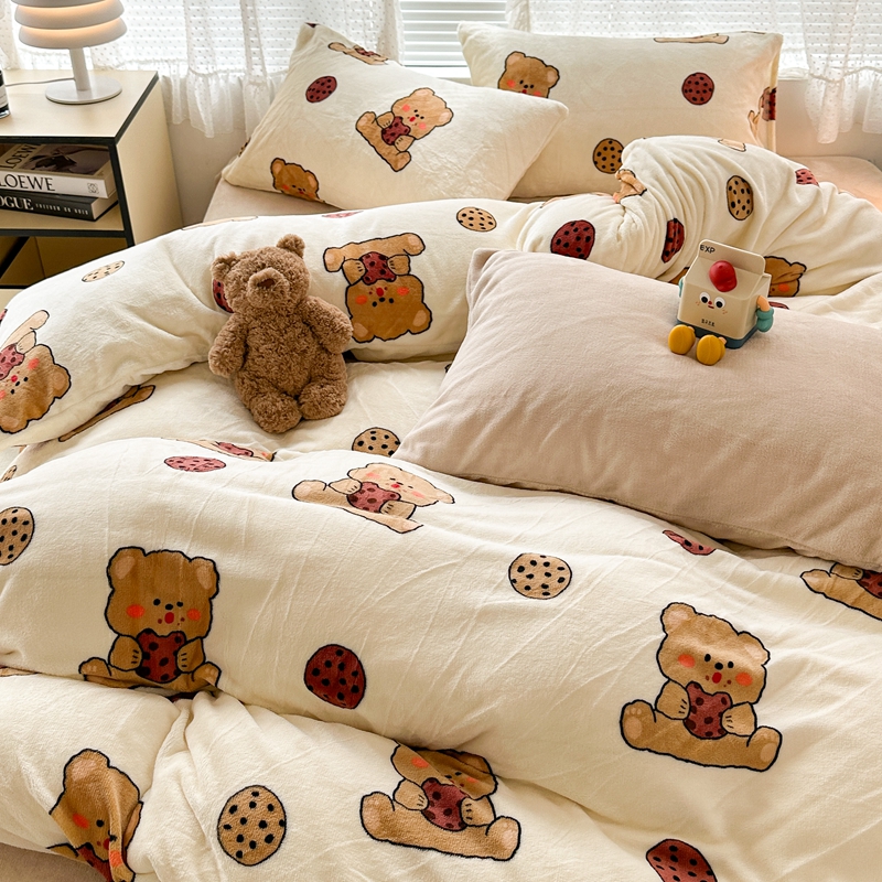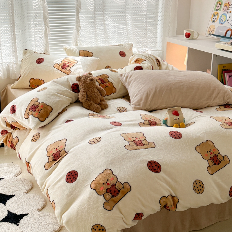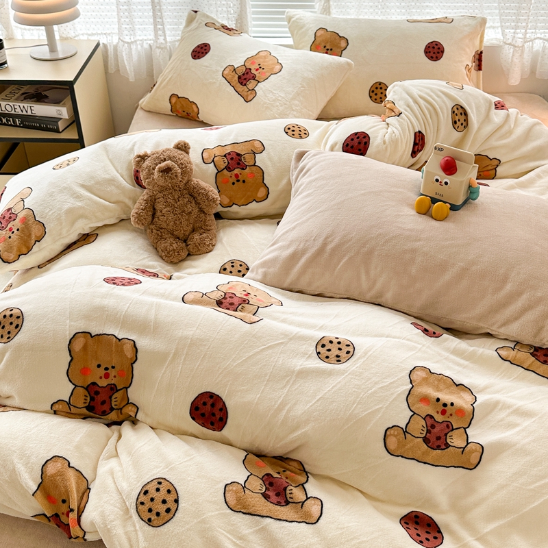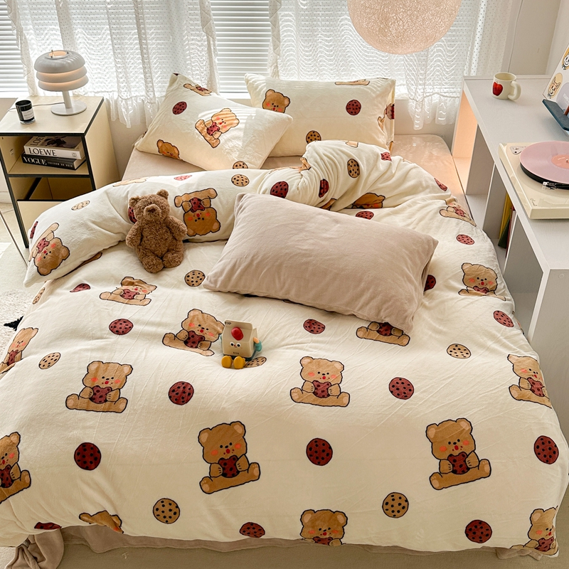 (总)昔可家纺 2024新款印花牛奶绒四件套系列-洛丽塔风,萝莉小兔,小熊烘焙屋,小熊玩偶屋