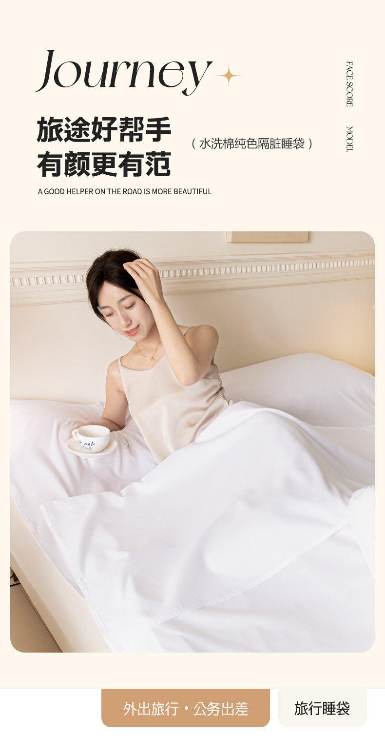 商品名称:yyds 旅行隔脏睡袋纯色A类水洗棉单人双人便携式床单被罩旅游酒店出差 睡袋-纯白