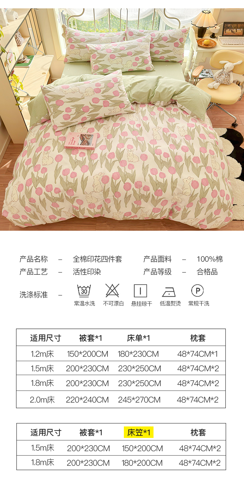 商品名称:(总)瑞莱 2024春季全棉纯棉13372印花四件套-花卉系列